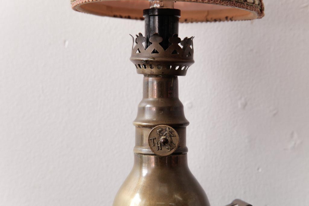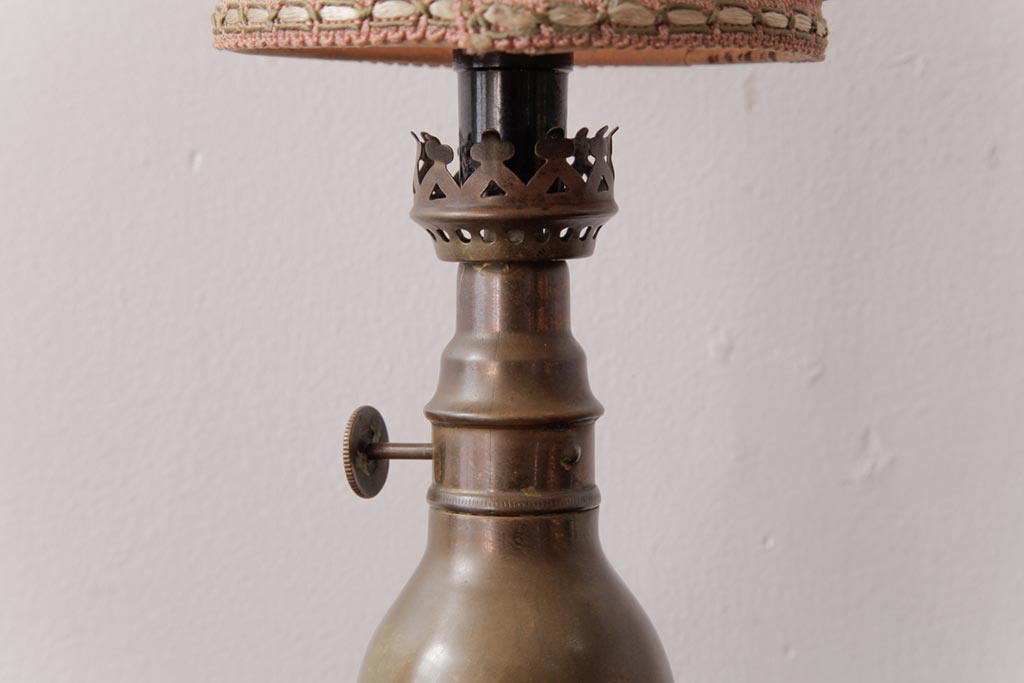 フランスアンティーク ピジョンランプ くすんだ真鍮が魅力的なスタンドライト(ナイトランプ、卓上照明)