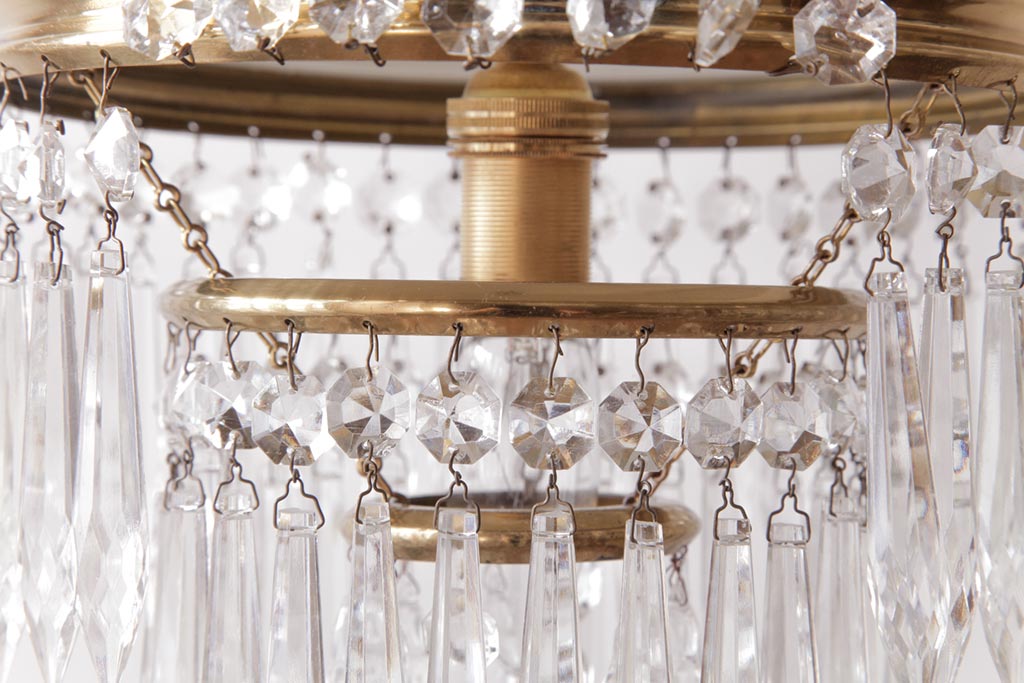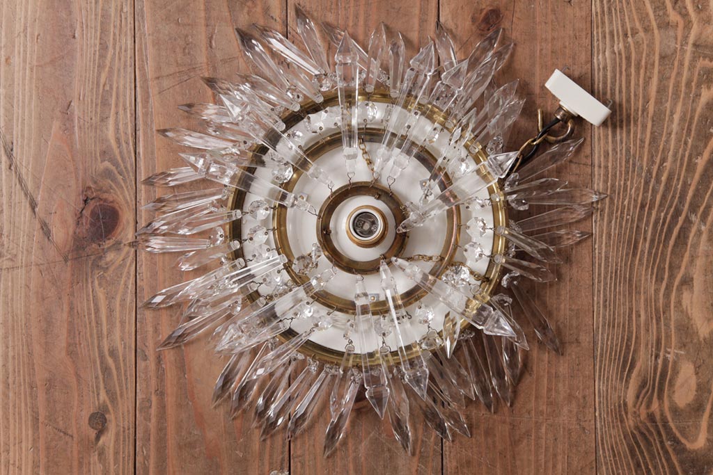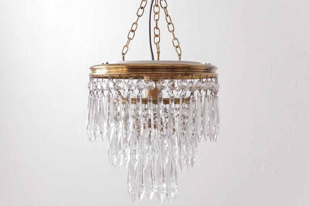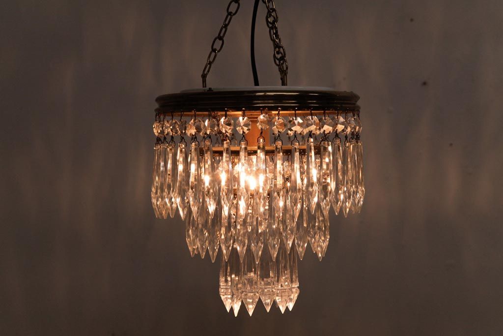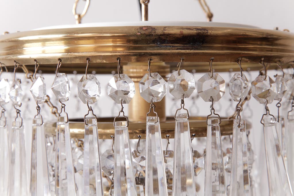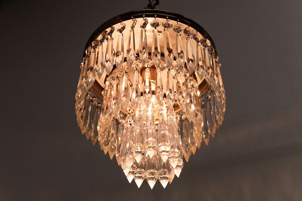 フランス製 高級感あふれる小振りなガラスドロップシャンデリア(1灯、天井照明、吊り下げ照明)