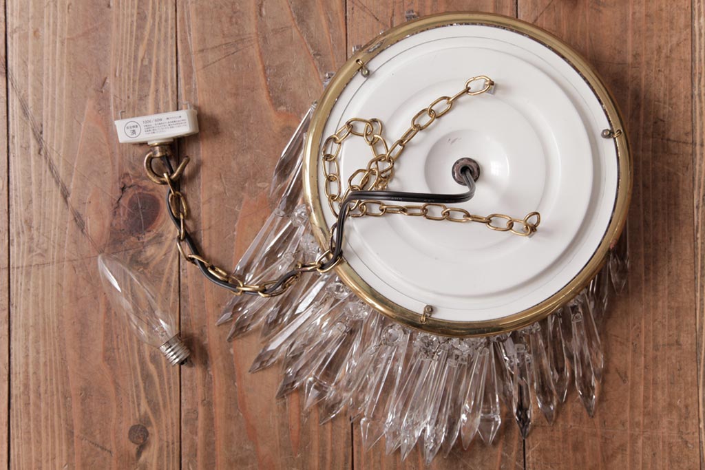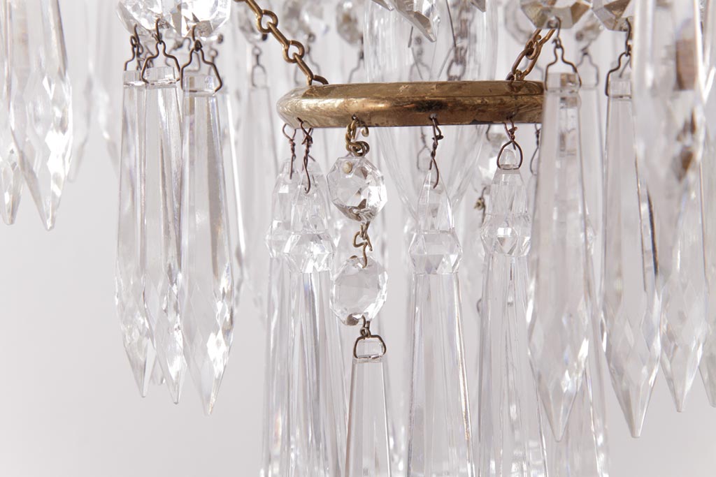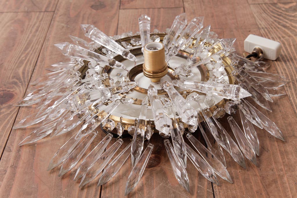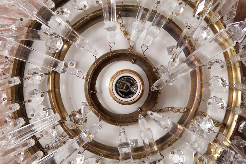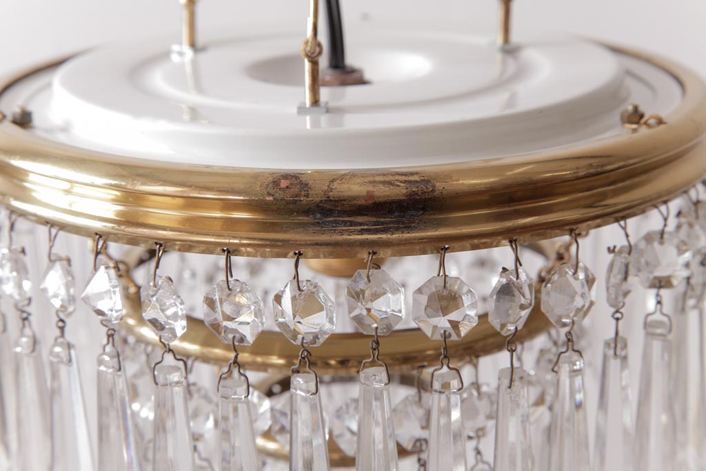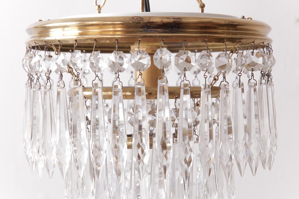フランス製 高級感あふれる小振りなガラスドロップシャンデリア(1灯、天井照明、吊り下げ照明)