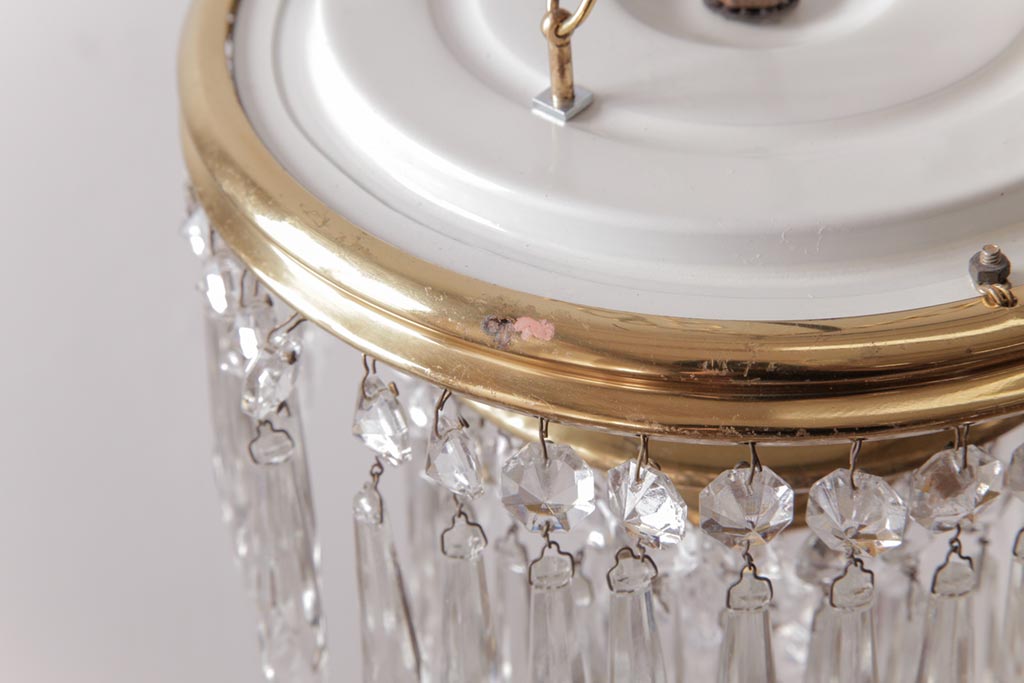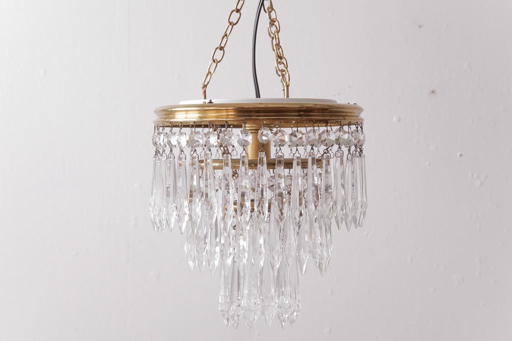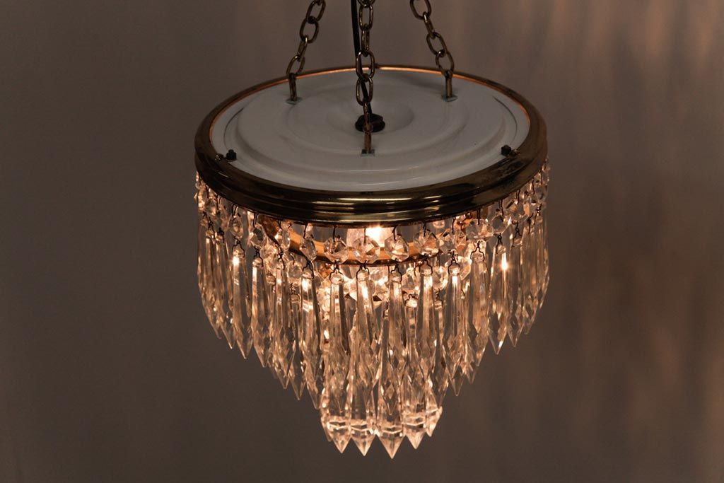 フランス製 高級感あふれる小振りなガラスドロップシャンデリア(1灯、天井照明、吊り下げ照明)です。