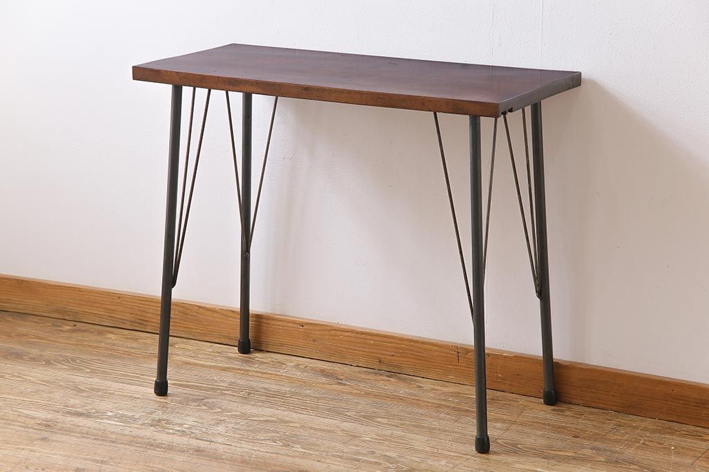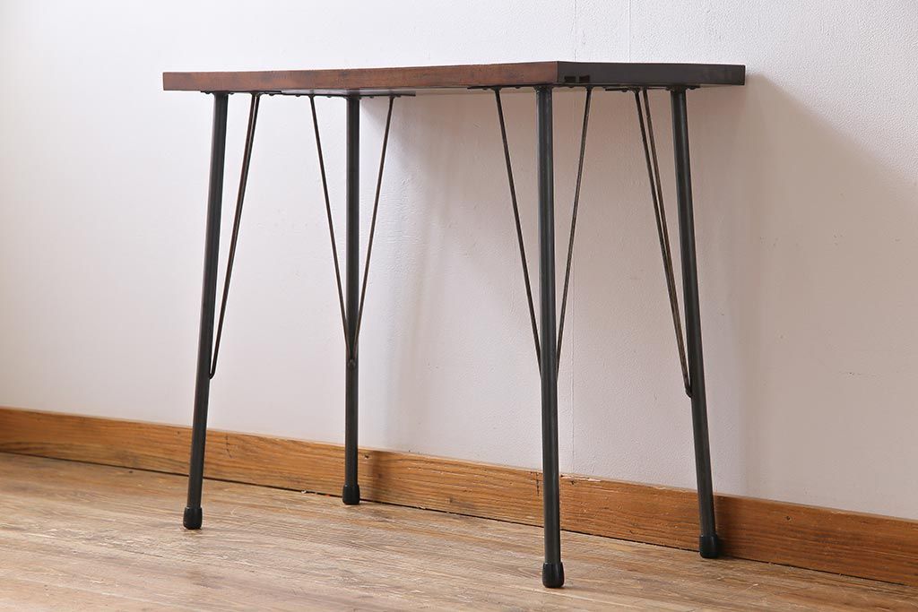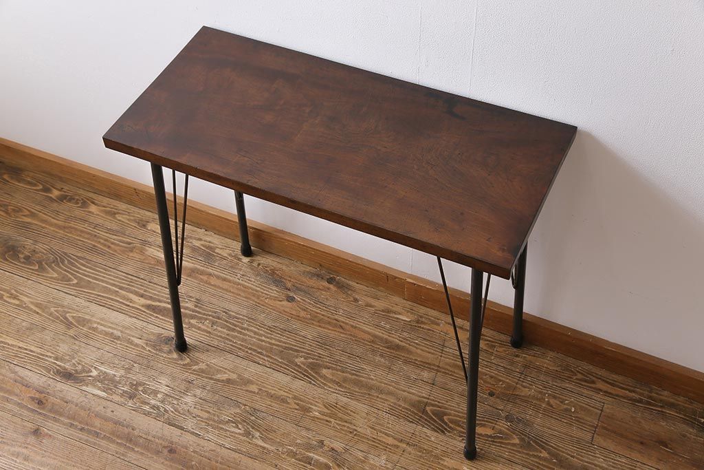 ラフジュ工房> テーブル> コンソールテーブル > 和製アンティーク リメイク 桜材一枚板 古い木の質感が味わい深い鉄脚テーブル(コンソールテーブル、作業台)