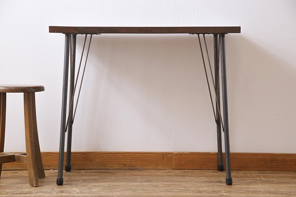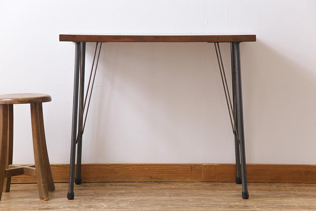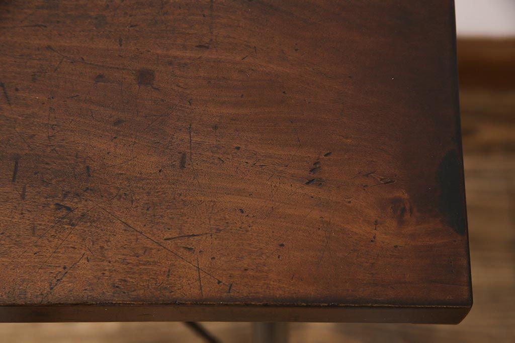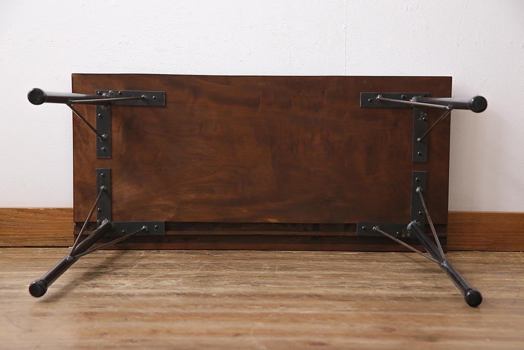 ラフジュ工房> テーブル> 作業台 > 和製アンティーク リメイク 桜材一枚板 古い木の質感が味わい深い鉄脚テーブル(コンソールテーブル、作業台)