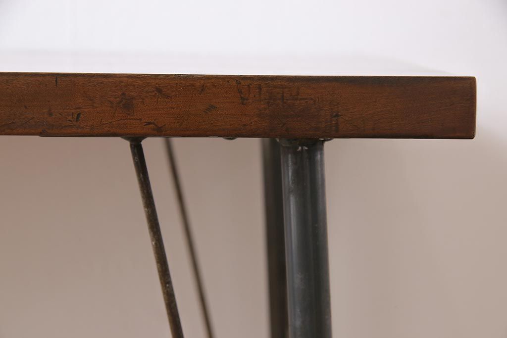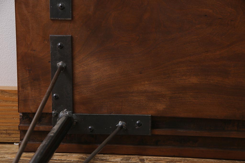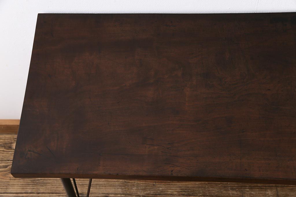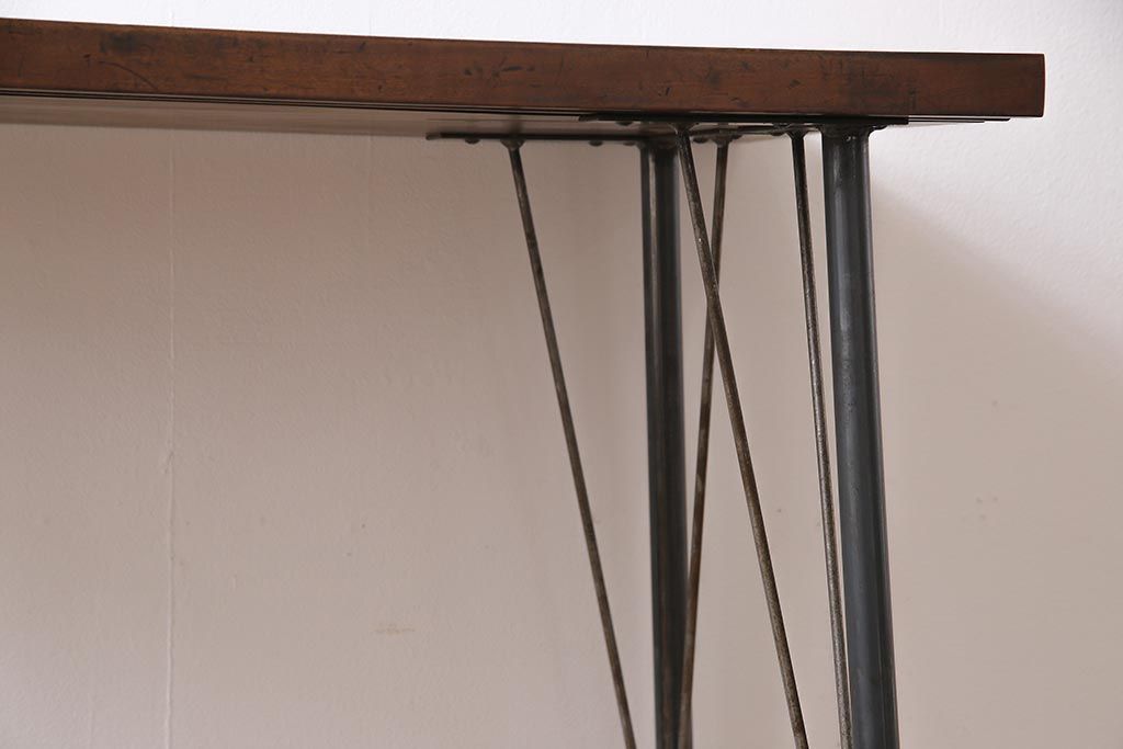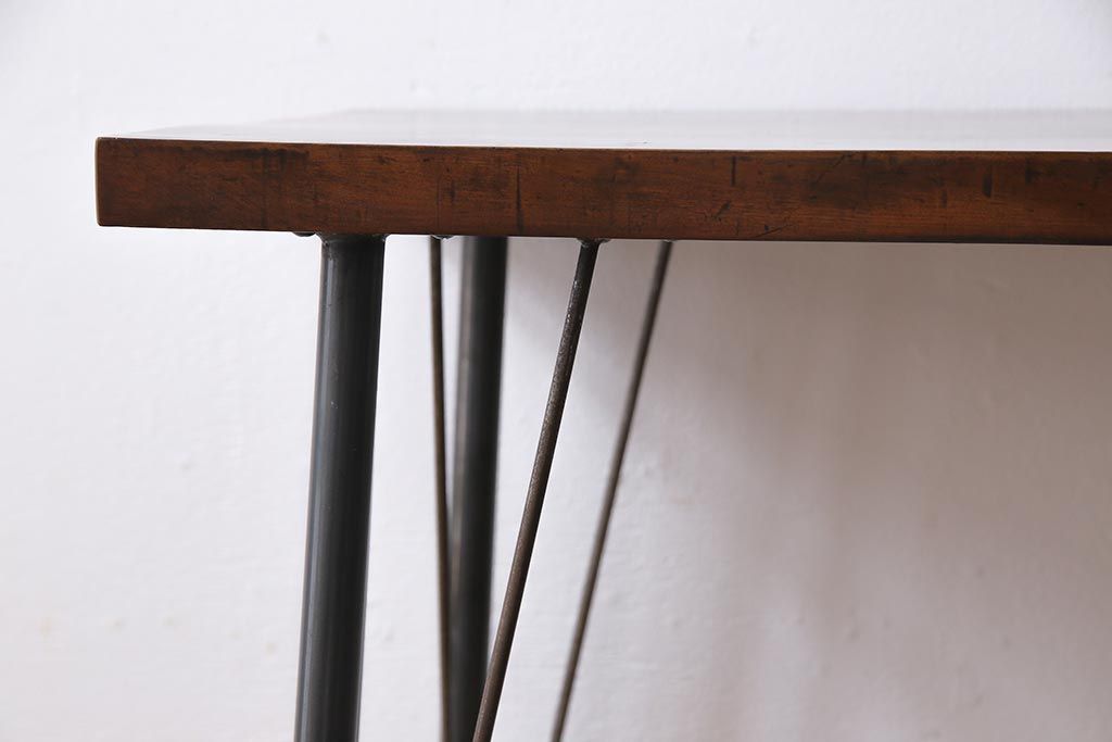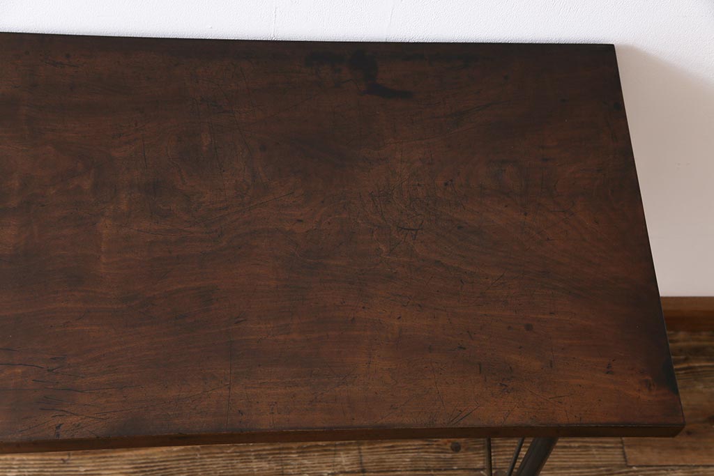 和製アンティーク リメイク 桜材一枚板 古い木の質感が味わい深い鉄脚テーブル(コンソールテーブル、作業台)