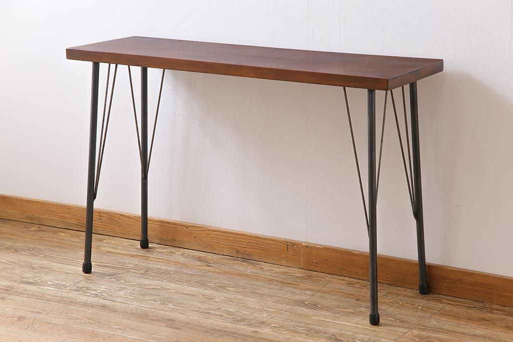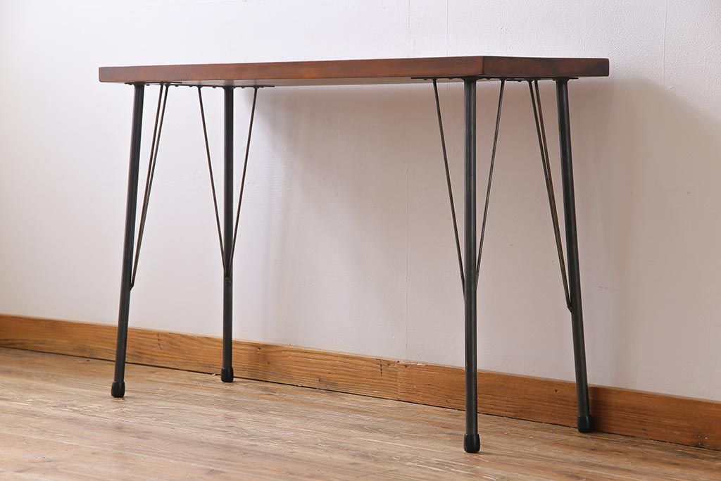 ラフジュ工房> テーブル> コンソールテーブル > リメイク家具 古材一枚板 木目の流れが趣きのある鉄脚テーブル(サイドテーブル、コンソールテーブル)