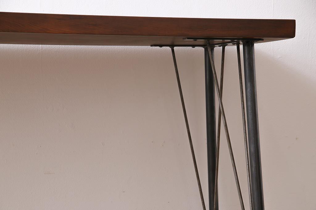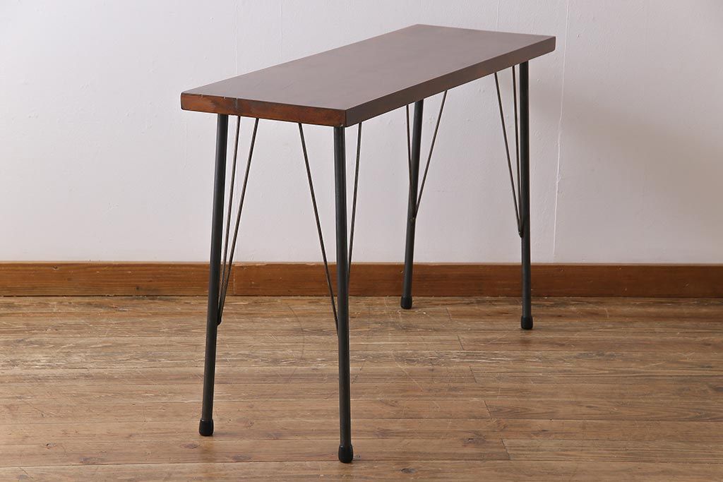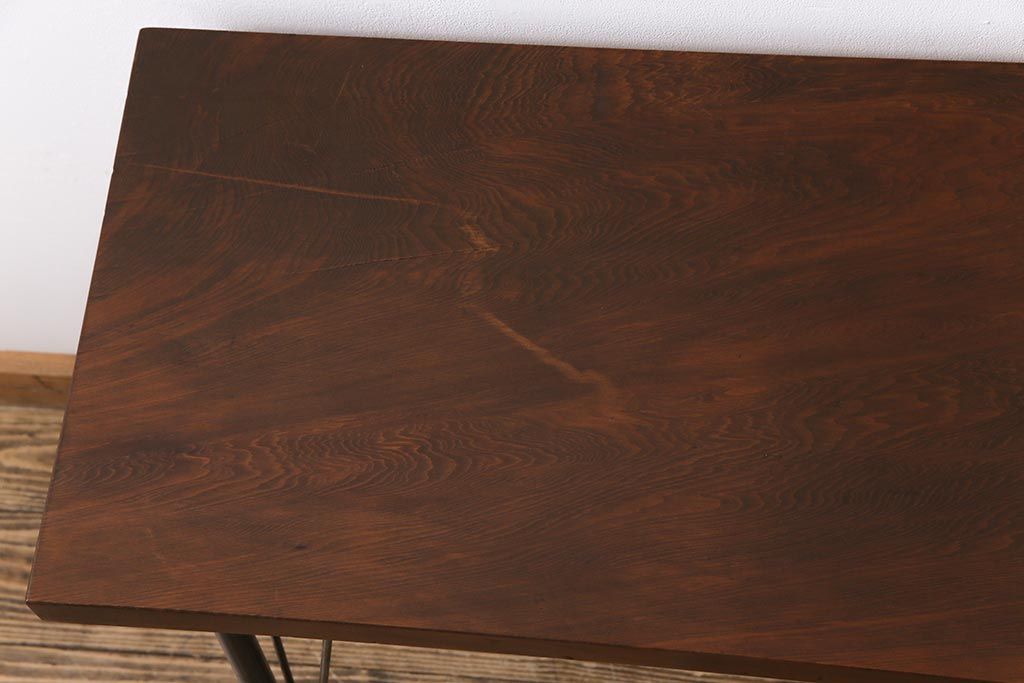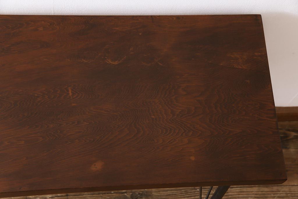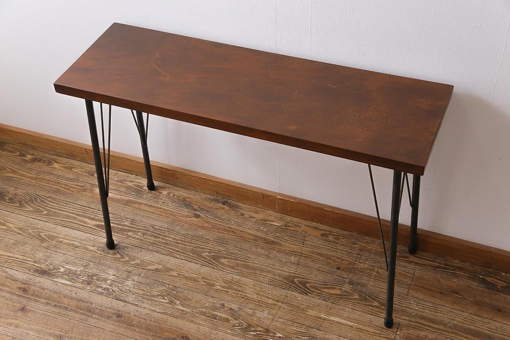 リメイク家具 古材一枚板 木目の流れが趣きのある鉄脚テーブル(サイドテーブル、コンソールテーブル)