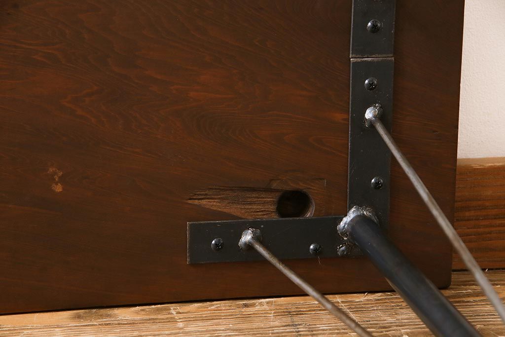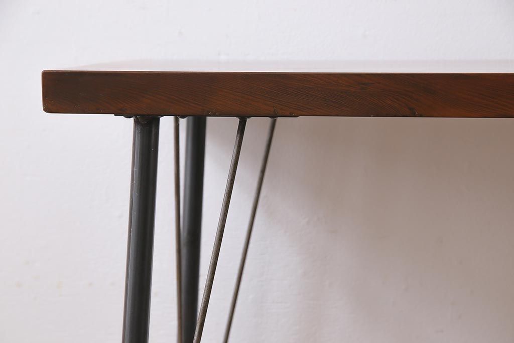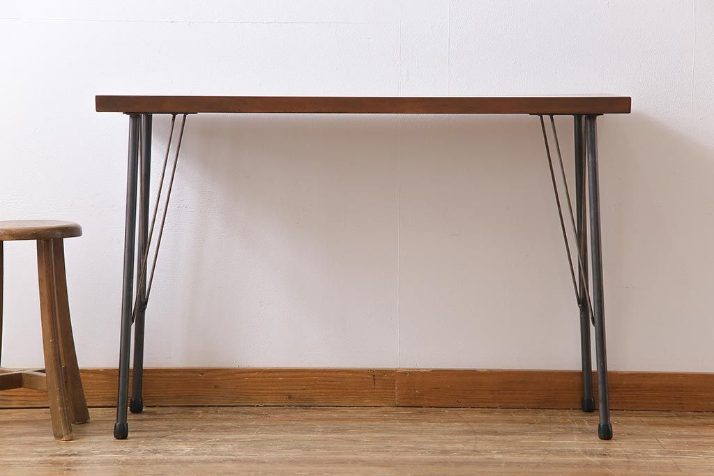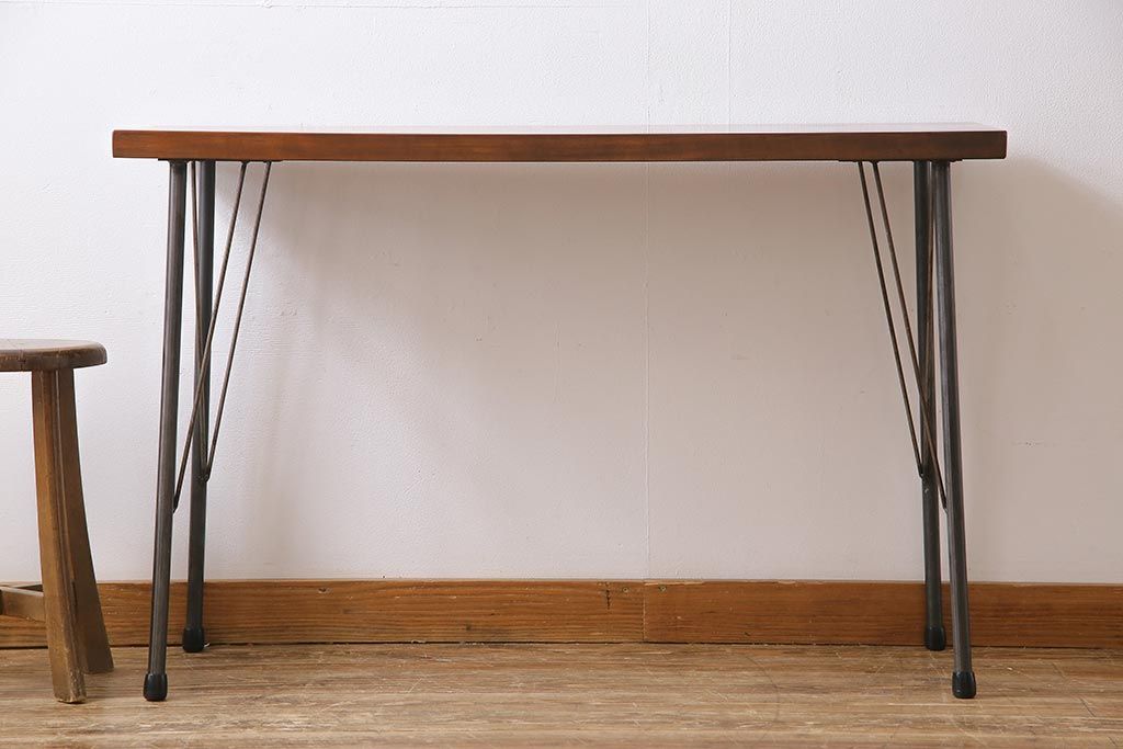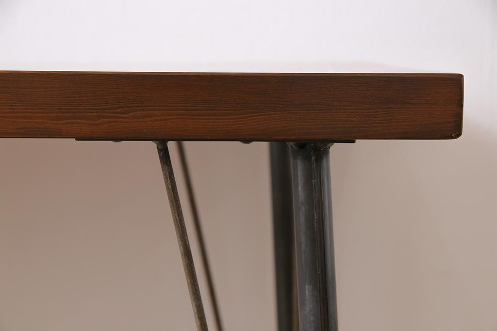 リメイク家具 古材一枚板 木目の流れが趣きのある鉄脚テーブル(サイドテーブル、コンソールテーブル)