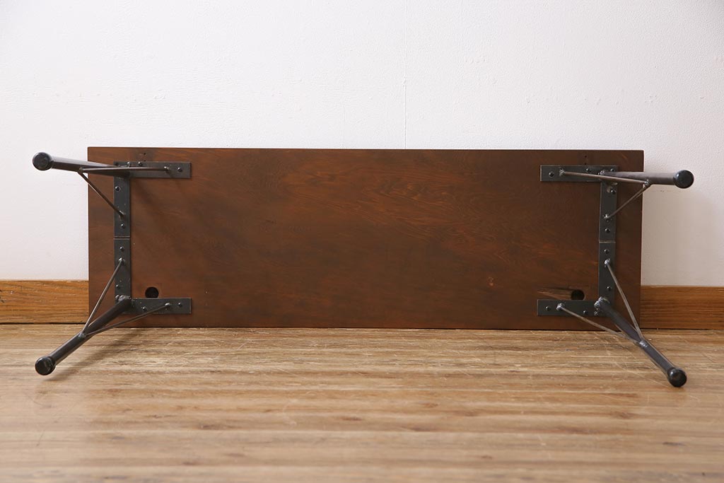 ラフジュ工房> テーブル> 作業台 > リメイク家具 古材一枚板 木目の流れが趣きのある鉄脚テーブル(サイドテーブル、コンソールテーブル)