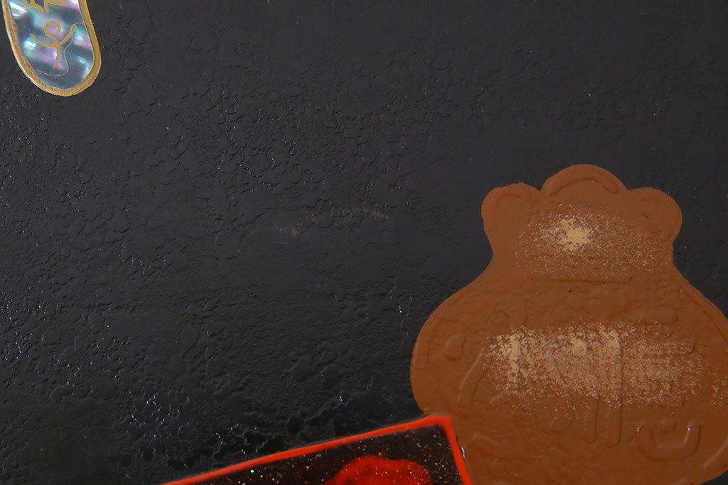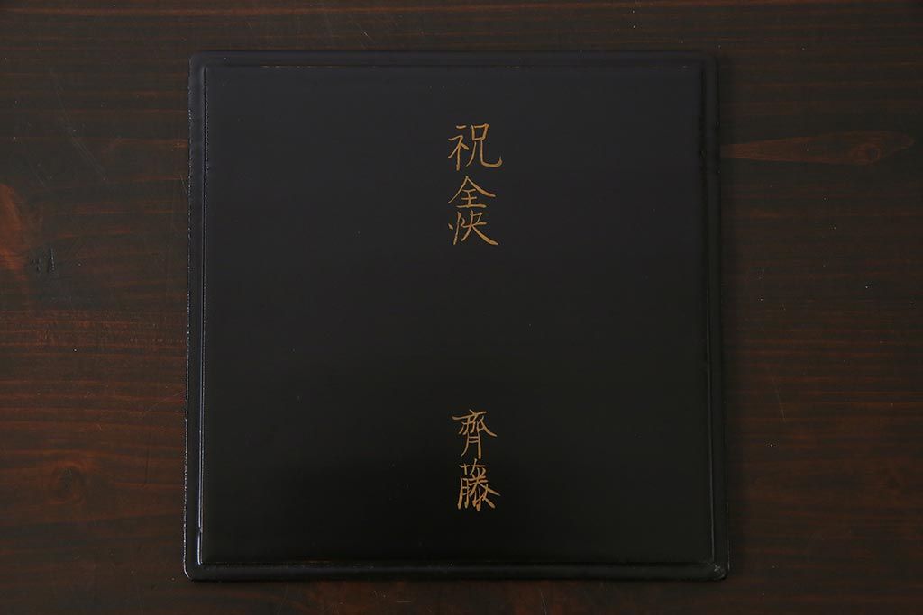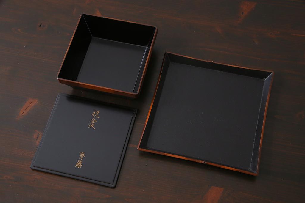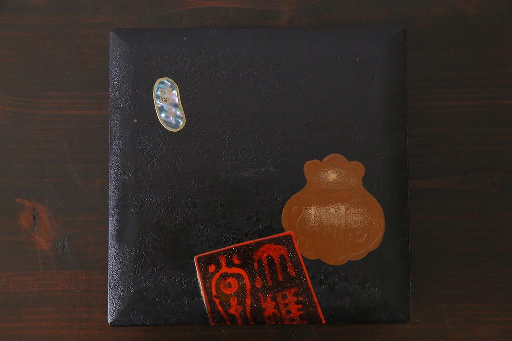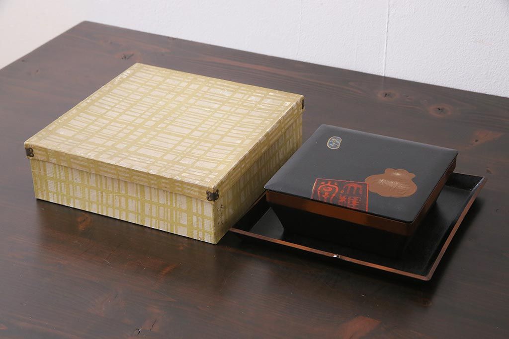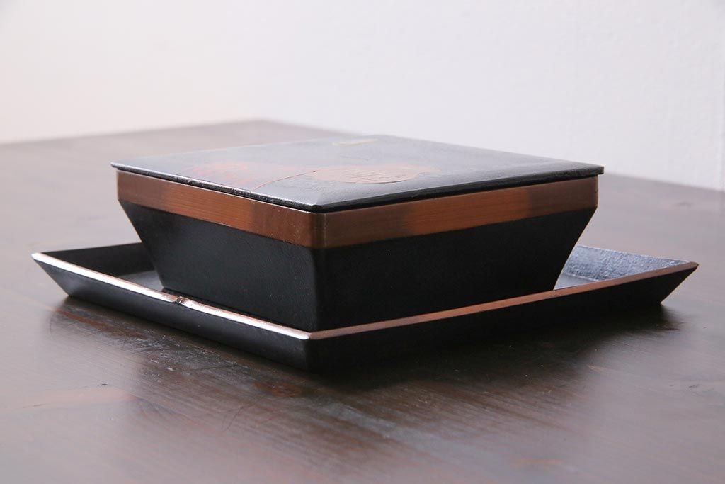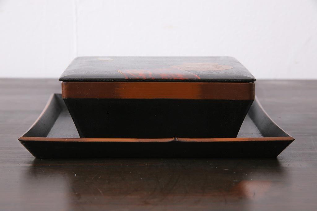 アンティーク雑貨 和製アンティーク 大正昭和初期 螺鈿入り 盆付き木製角菓子器(漆器、手箱)