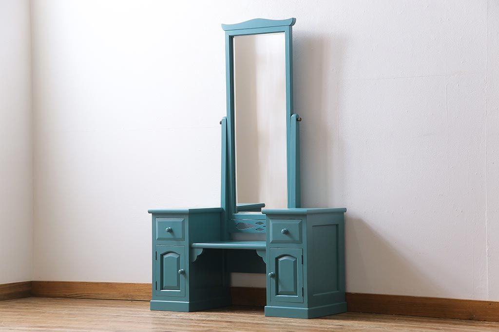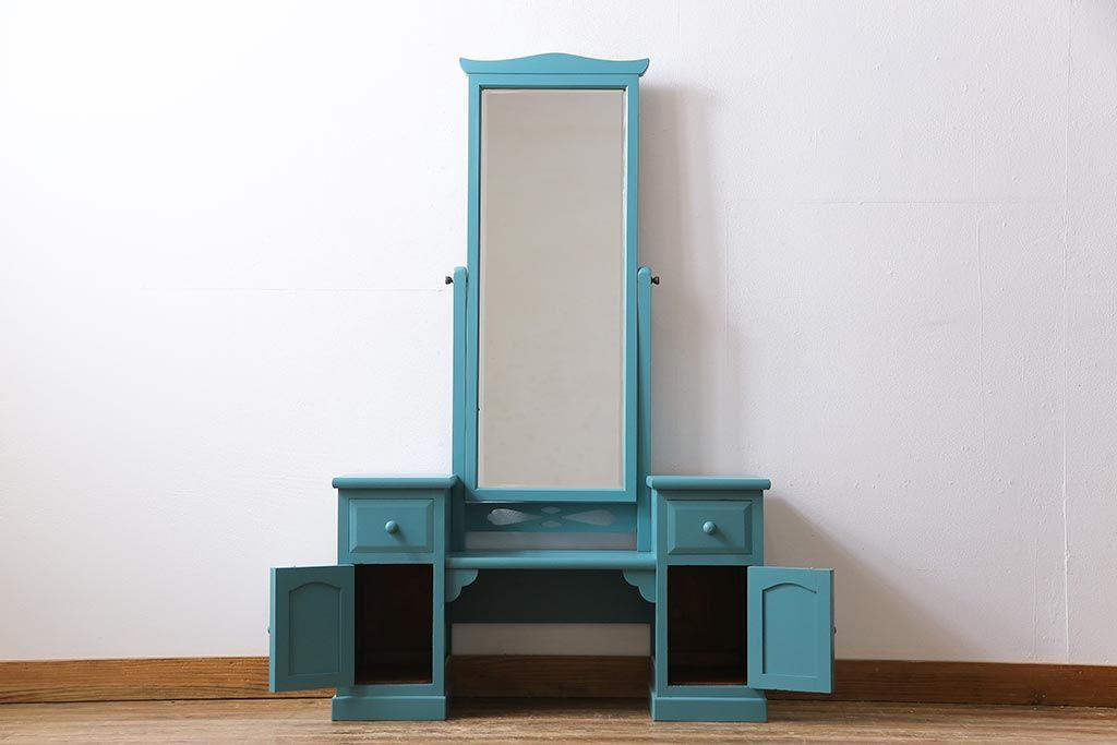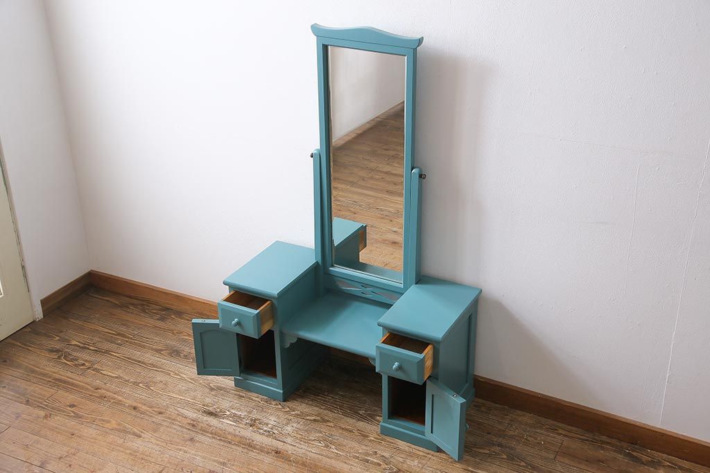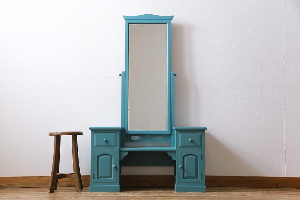 ビンテージ 松本民芸家具 特注品 リペイント 爽やかなカラーが目を引くドレッサー(鏡台)