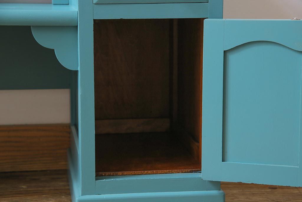 ラフジュ工房> ドレッサー・鏡台 > ビンテージ 松本民芸家具 特注品 リペイント 爽やかなカラーが目を引くドレッサー(鏡台)