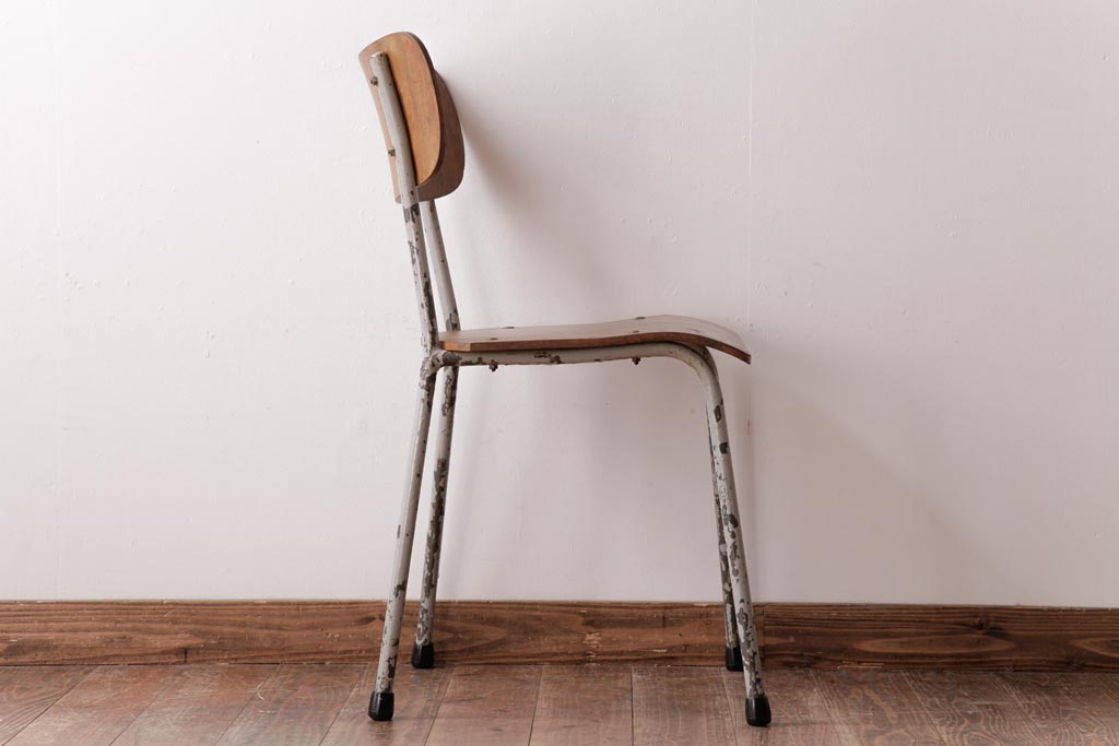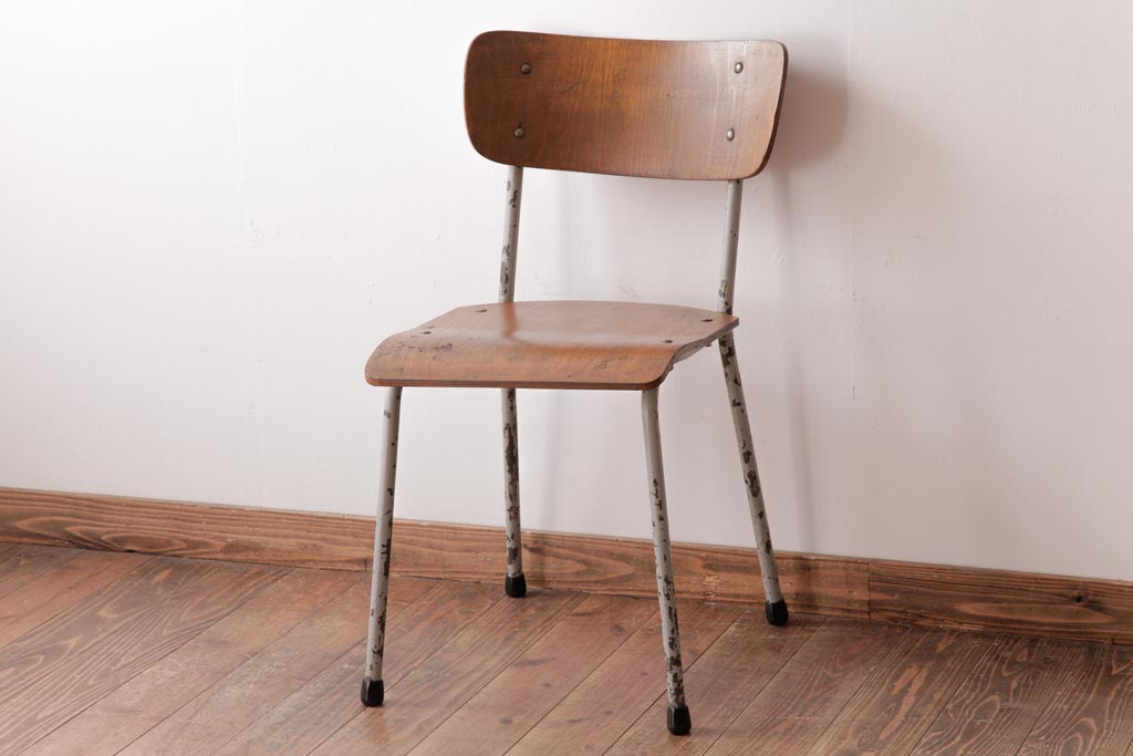 イギリスビンテージ インダストリアルな空間作りに活躍するスクールチェア(ワークチェア、板座チェア、椅子)(3)です。
