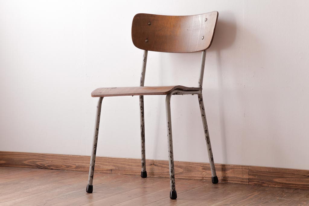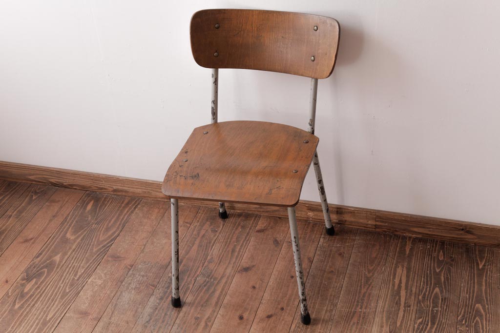 ヴィンテージ家具 イギリスビンテージ インダストリアルな空間作りに活躍するスクールチェア(ワークチェア、板座チェア、椅子)(3)