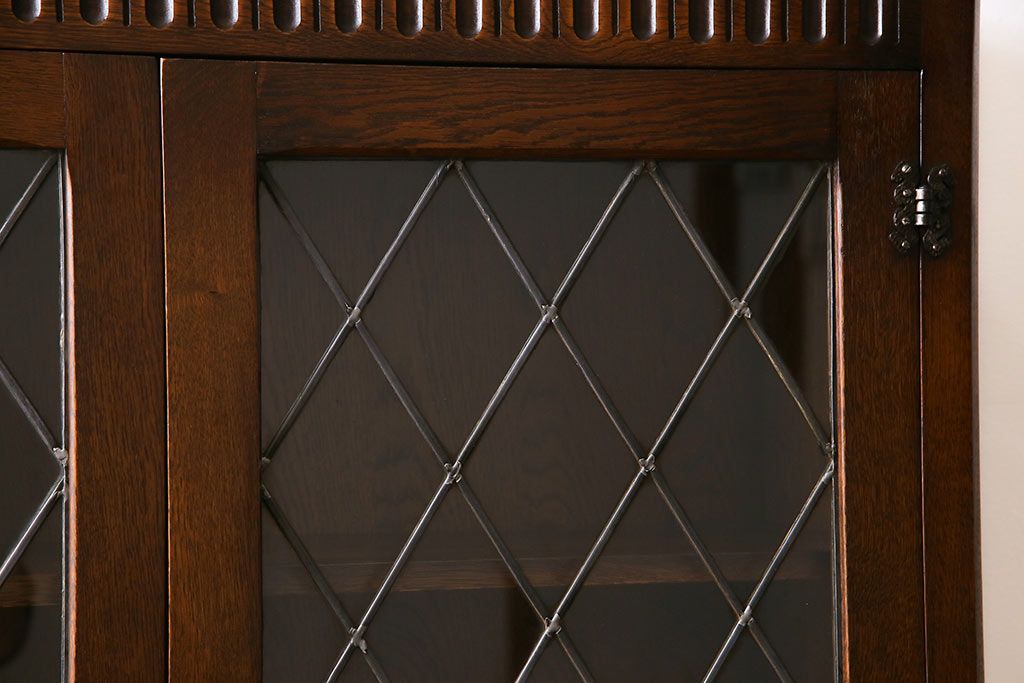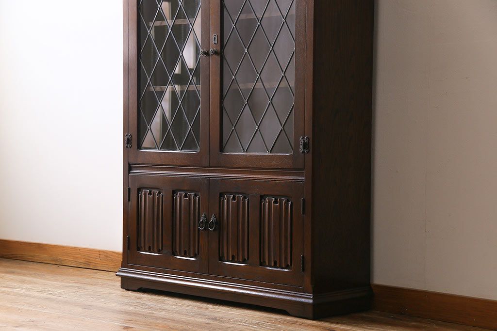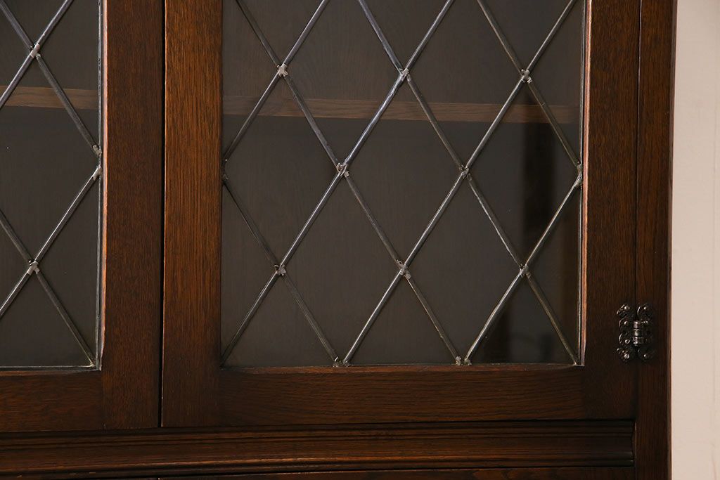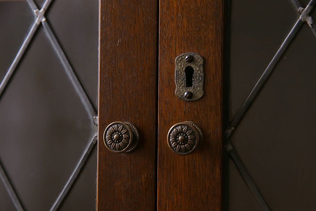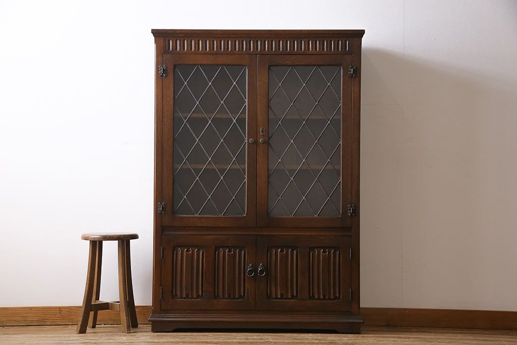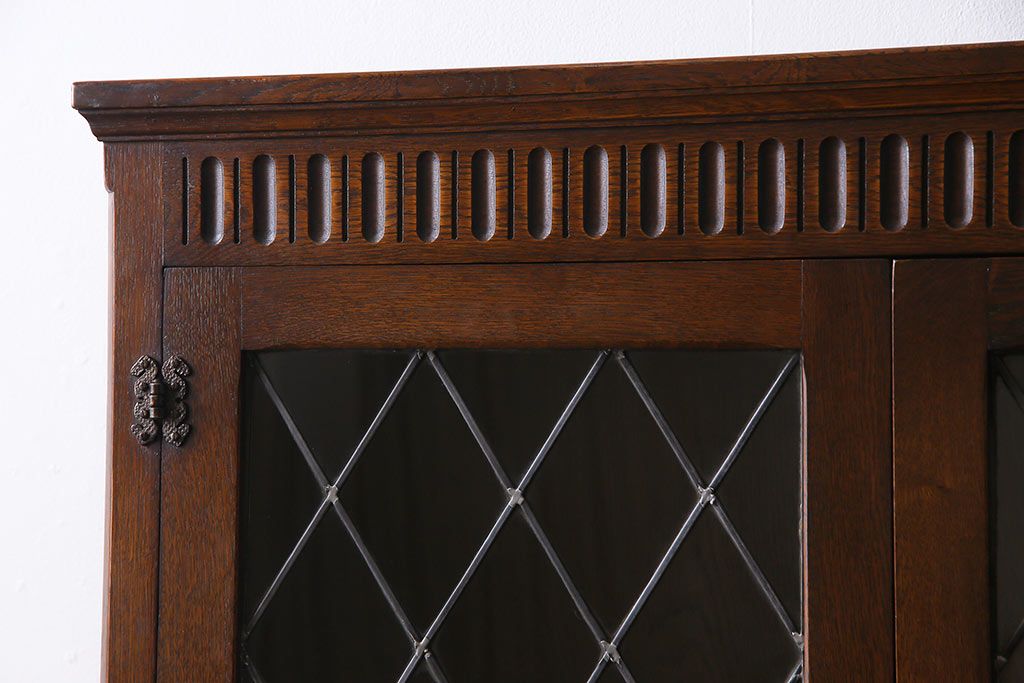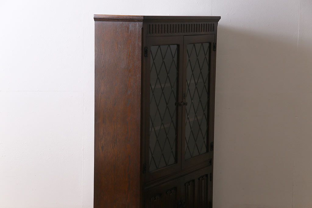 ヴィンテージ家具 イギリスビンテージ オーク材 ステンドグラスがおしゃれな上品なブックケース(飾り棚、食器棚、収納棚)
