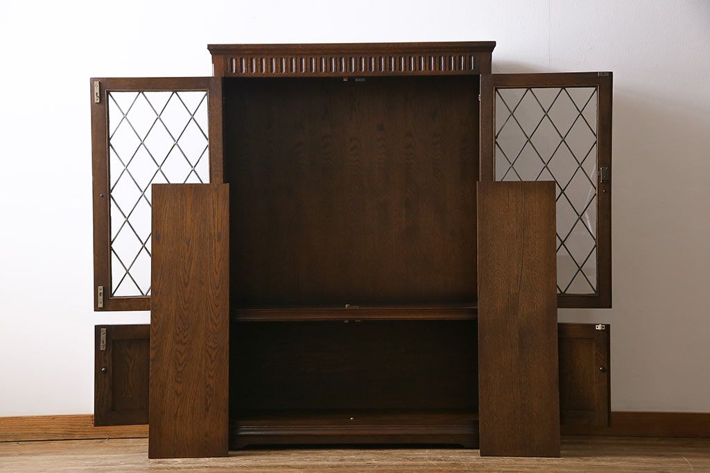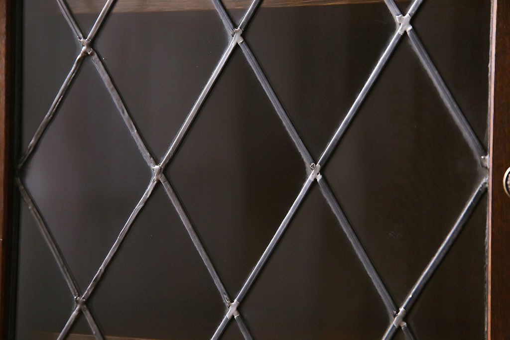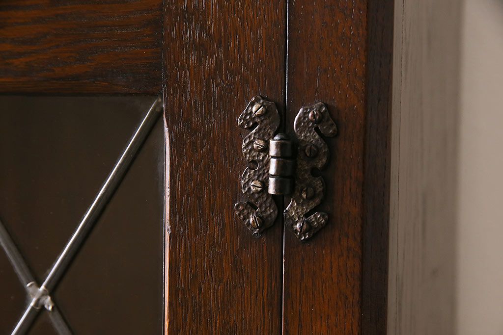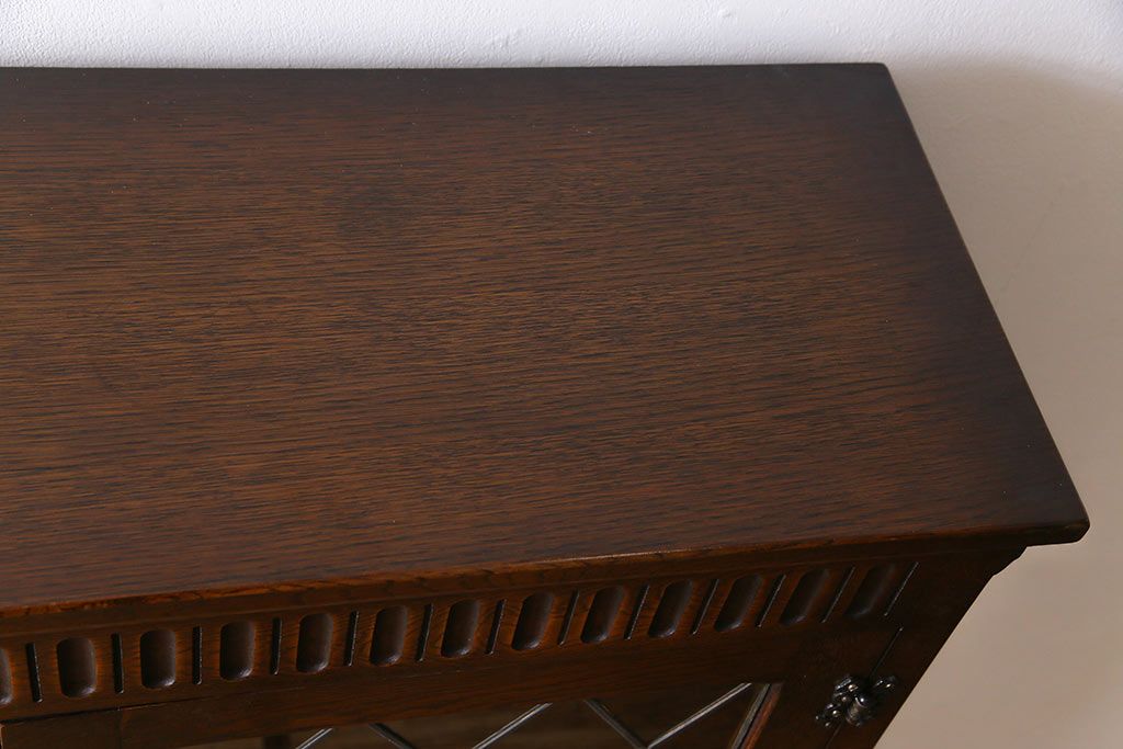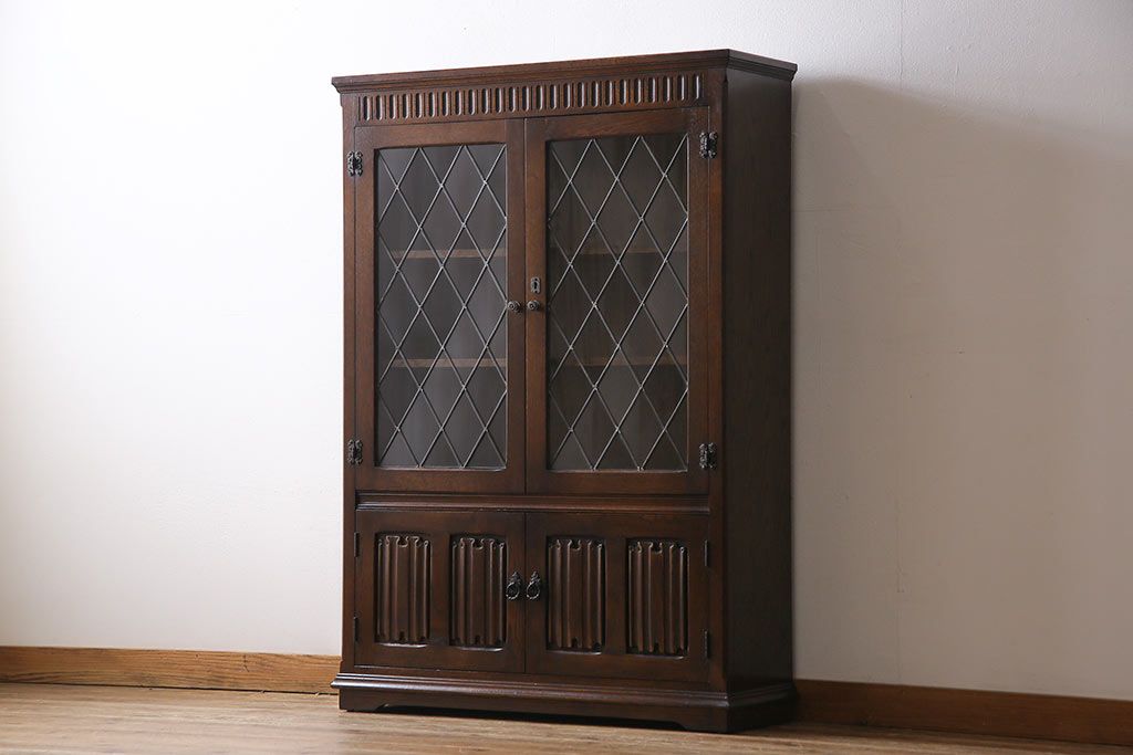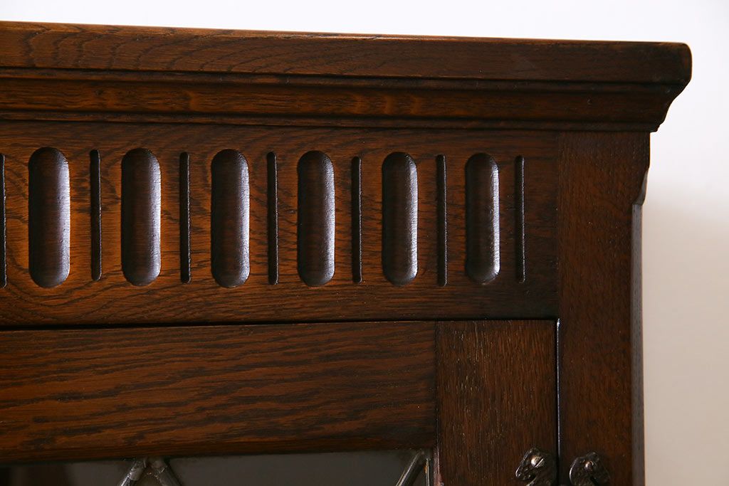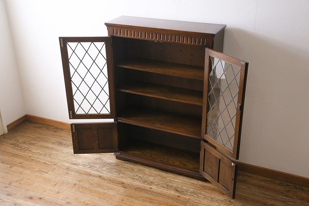 ヴィンテージ家具 イギリスビンテージ オーク材 ステンドグラスがおしゃれな上品なブックケース(飾り棚、食器棚、収納棚)