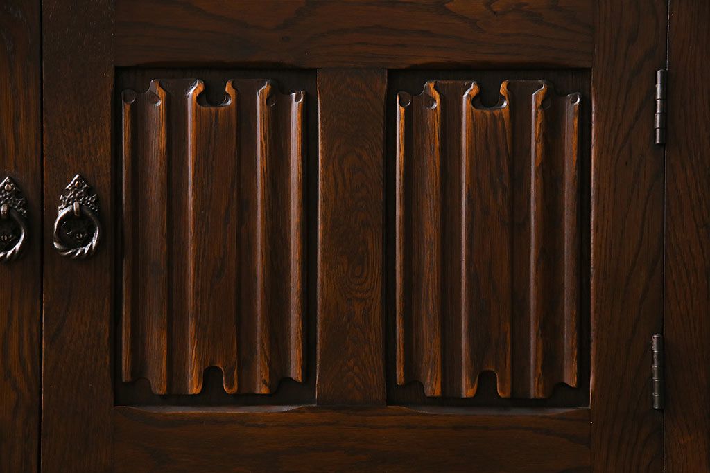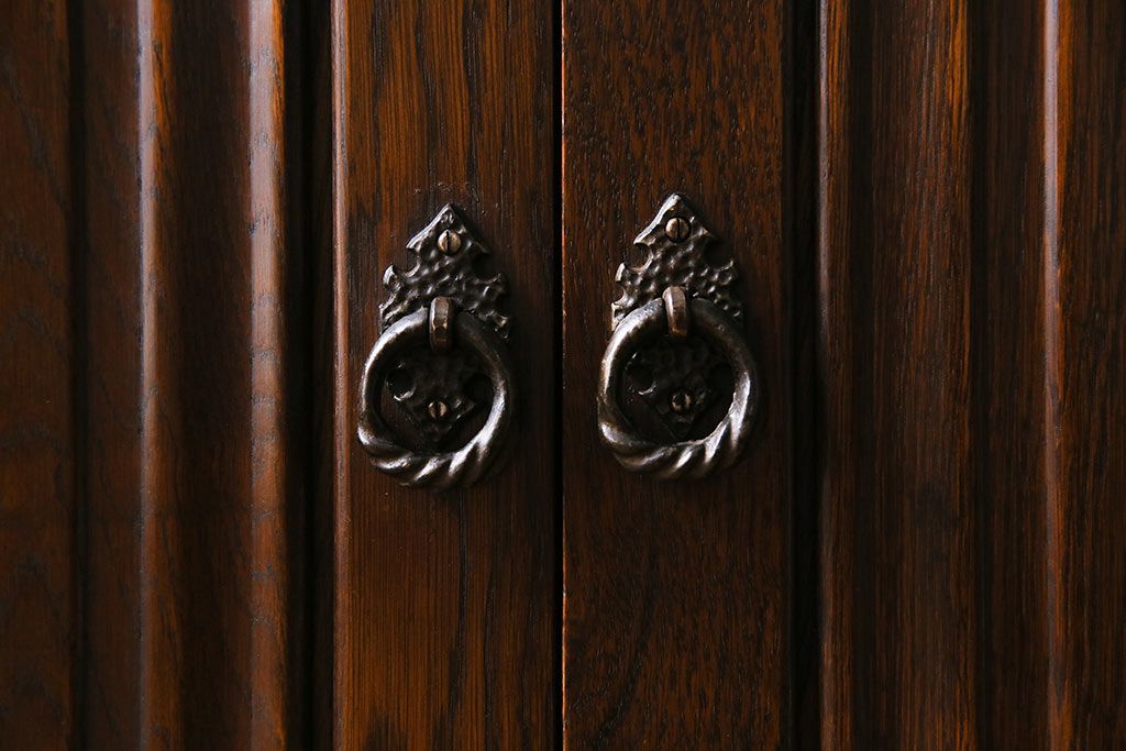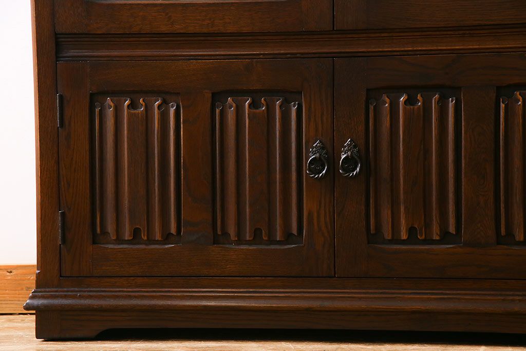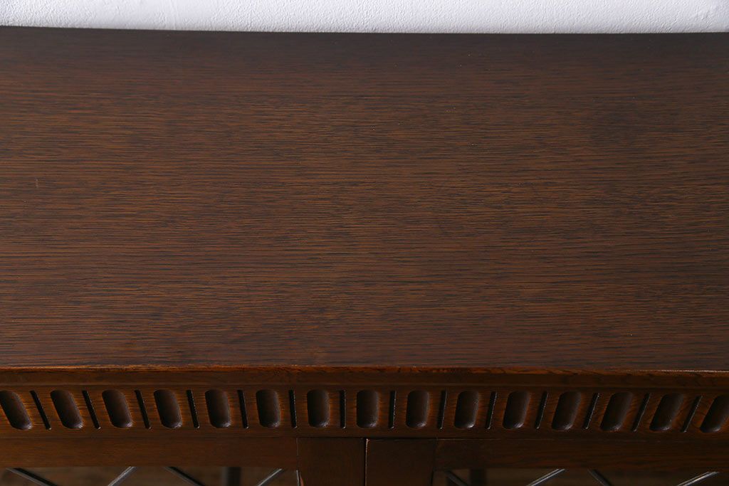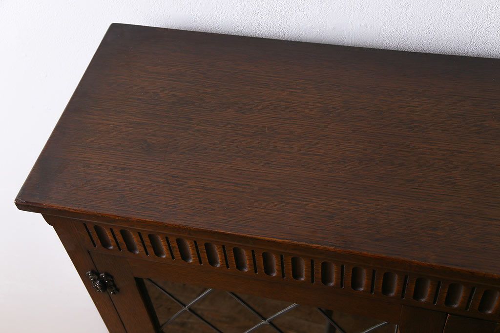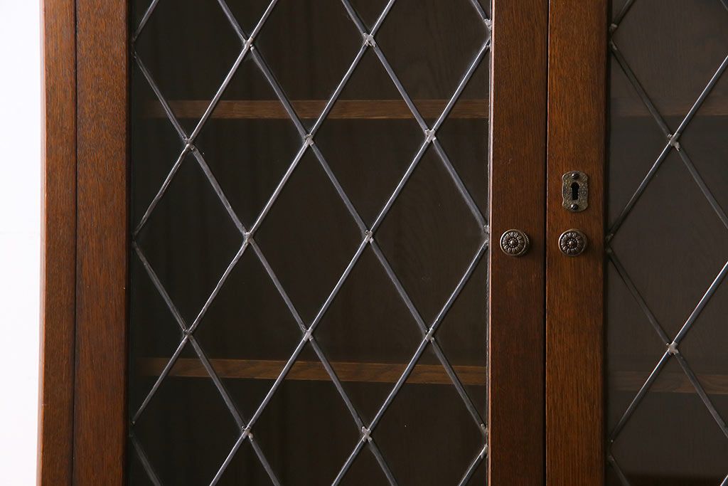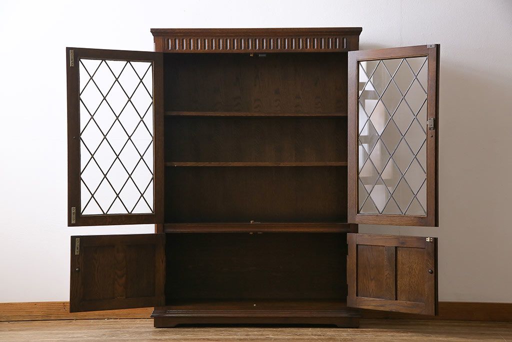 ヴィンテージ家具 イギリスビンテージ オーク材 ステンドグラスがおしゃれな上品なブックケース(飾り棚、食器棚、収納棚)