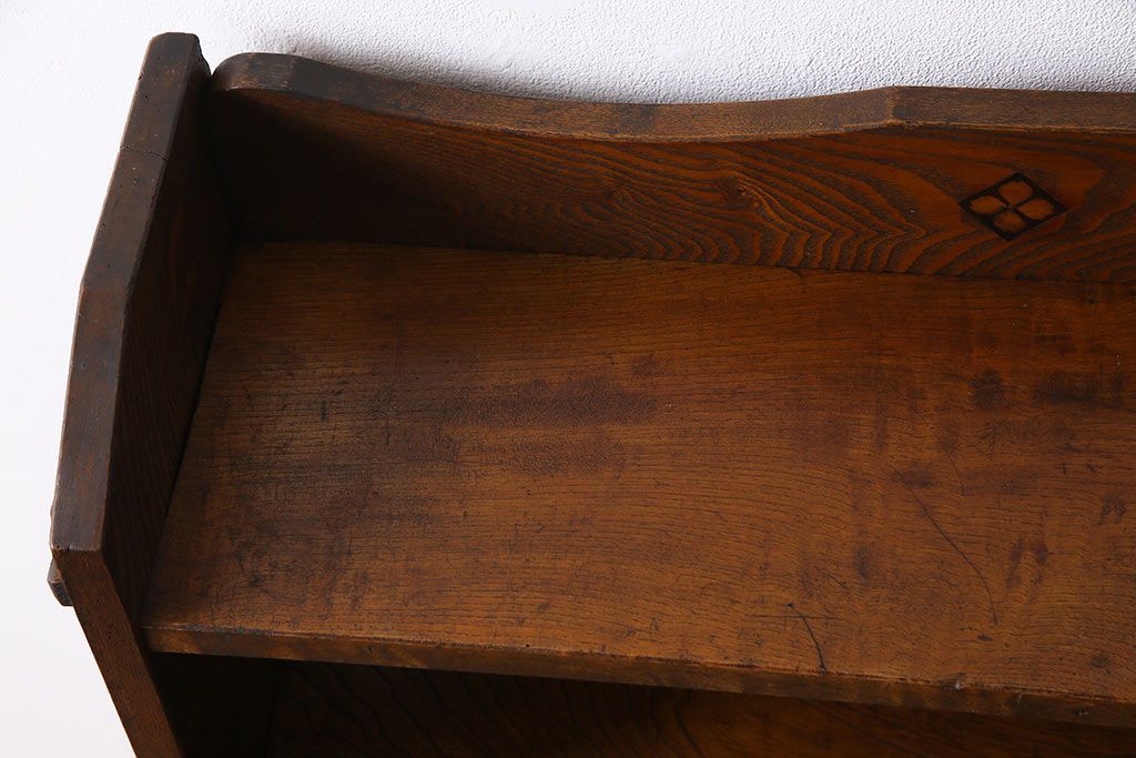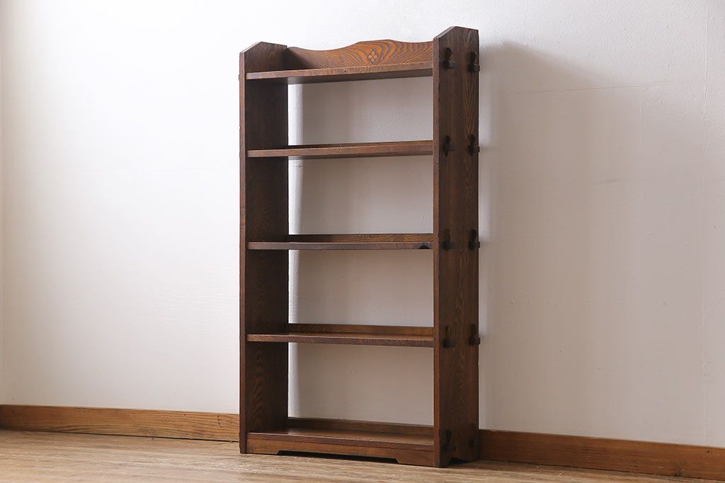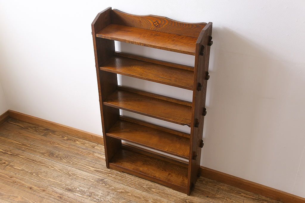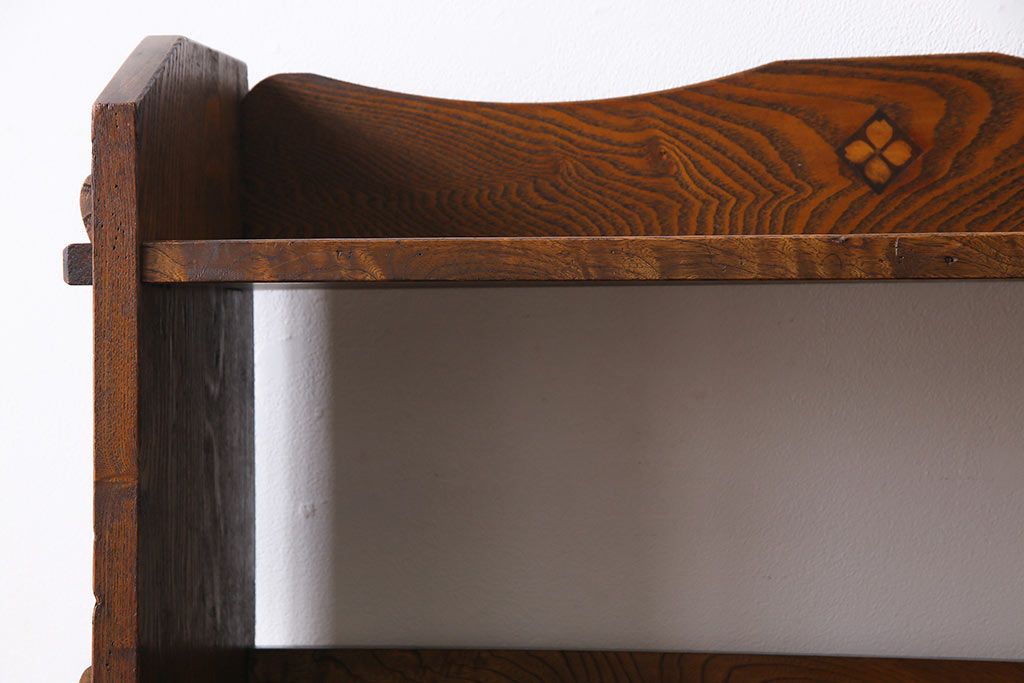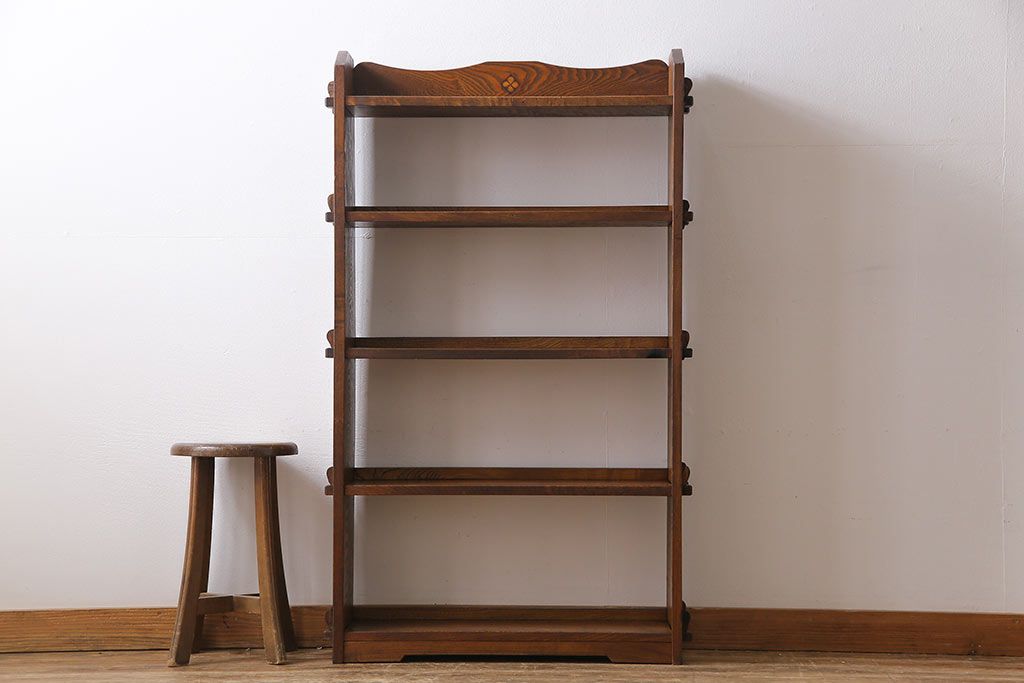 ラフジュ工房> オープンラック・シェルフ> ディスプレイラック > レトロ家具 昭和レトロ タモ材 象嵌がポイントになったブックシェルフ(本棚、飾り棚、オープンラック)