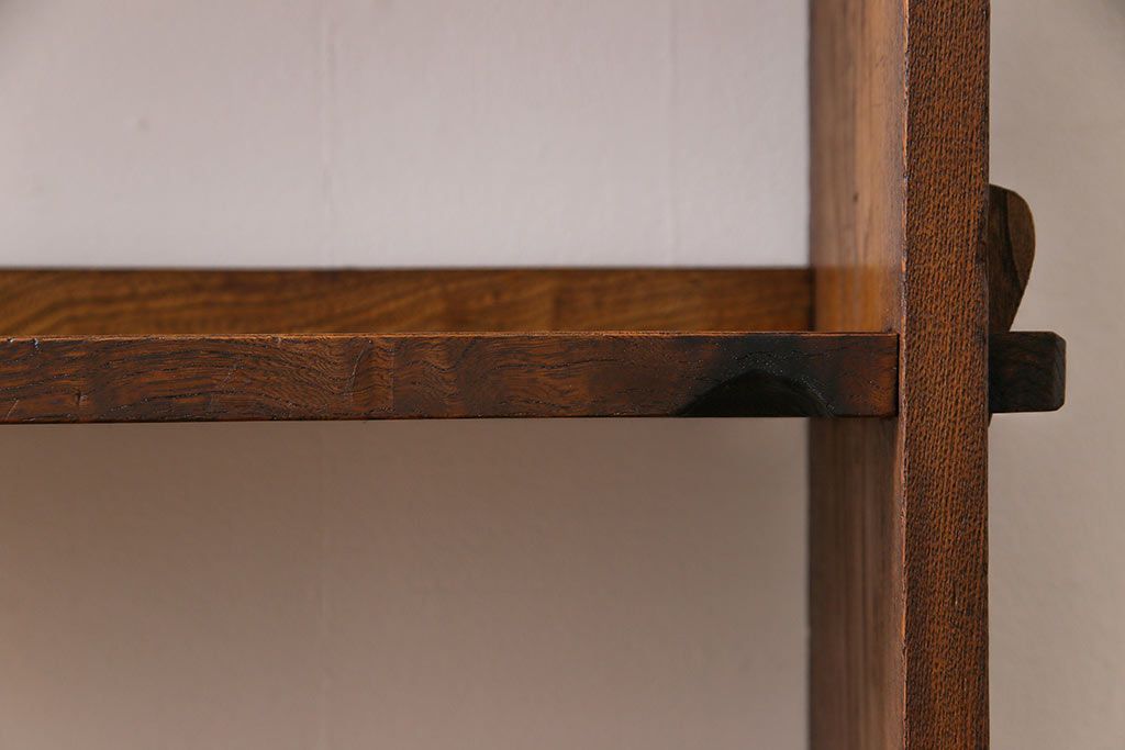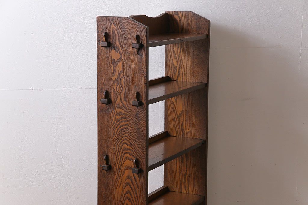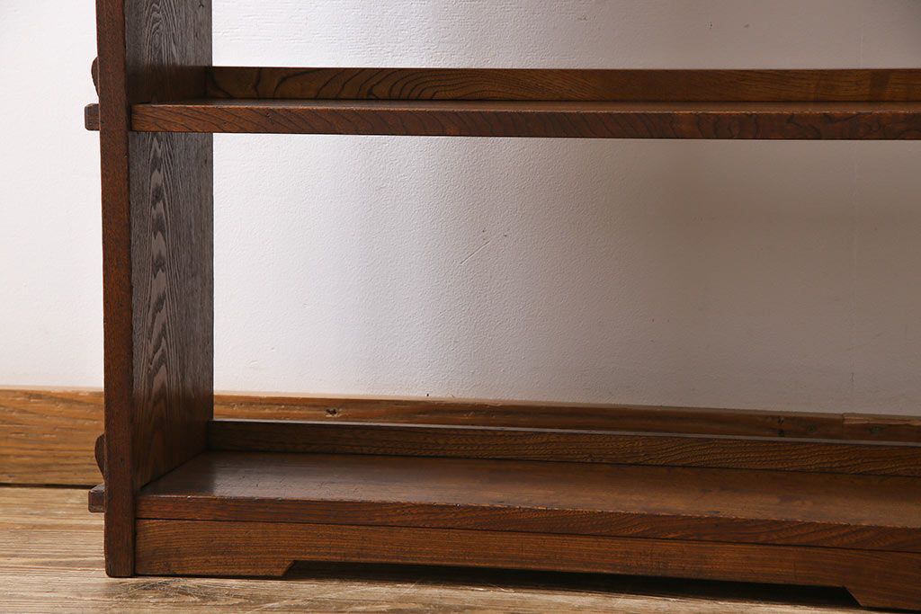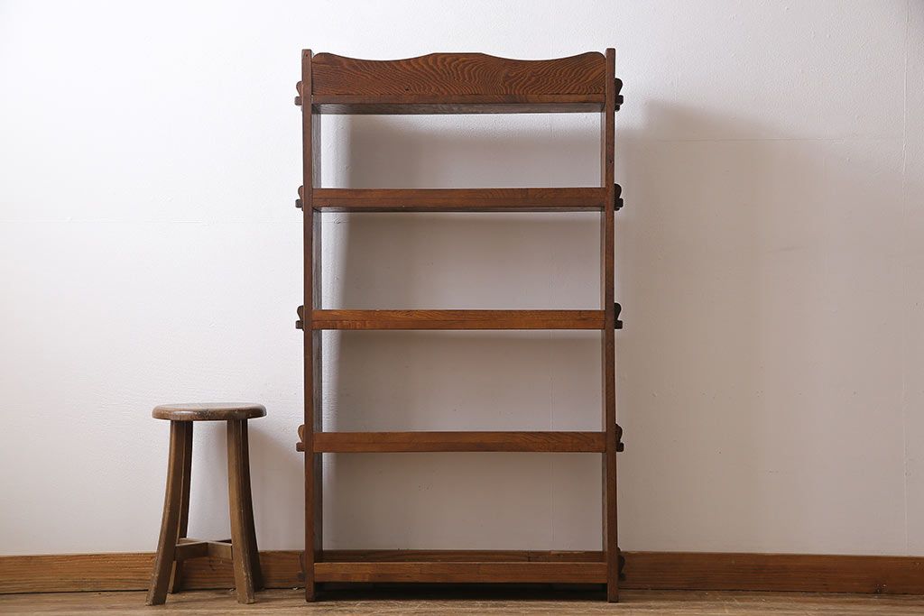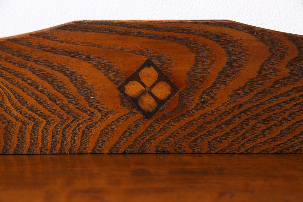ラフジュ工房> オープンラック・シェルフ> ディスプレイラック > レトロ家具 昭和レトロ タモ材 象嵌がポイントになったブックシェルフ(本棚、飾り棚、オープンラック)