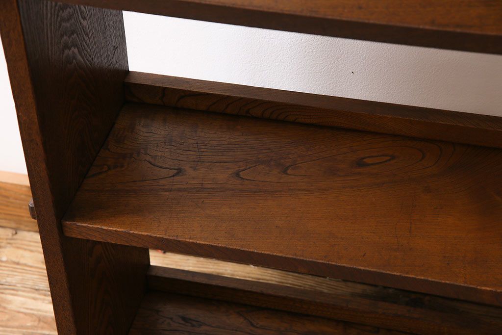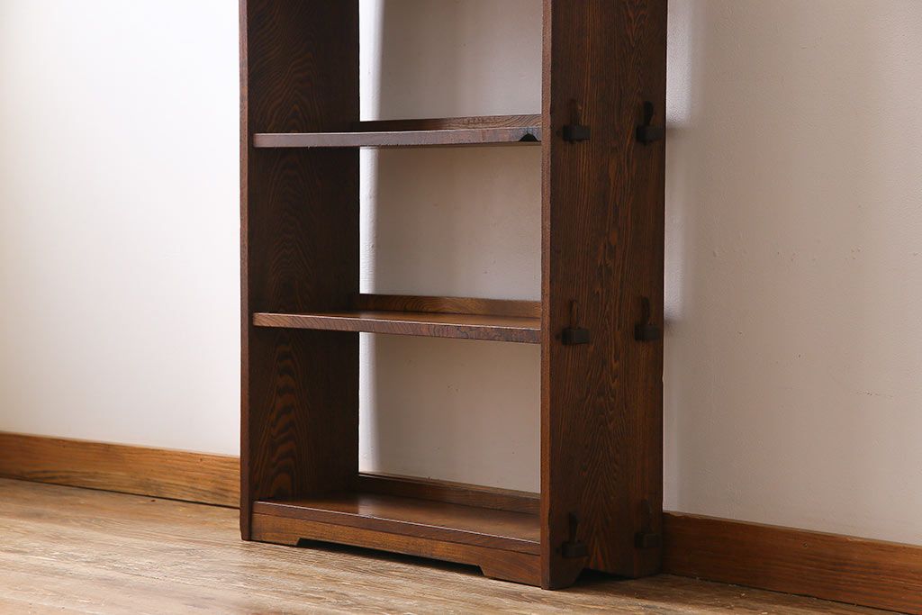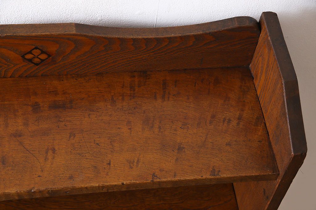ラフジュ工房> オープンラック・シェルフ > レトロ家具 昭和レトロ タモ材 象嵌がポイントになったブックシェルフ(本棚、飾り棚、オープンラック)