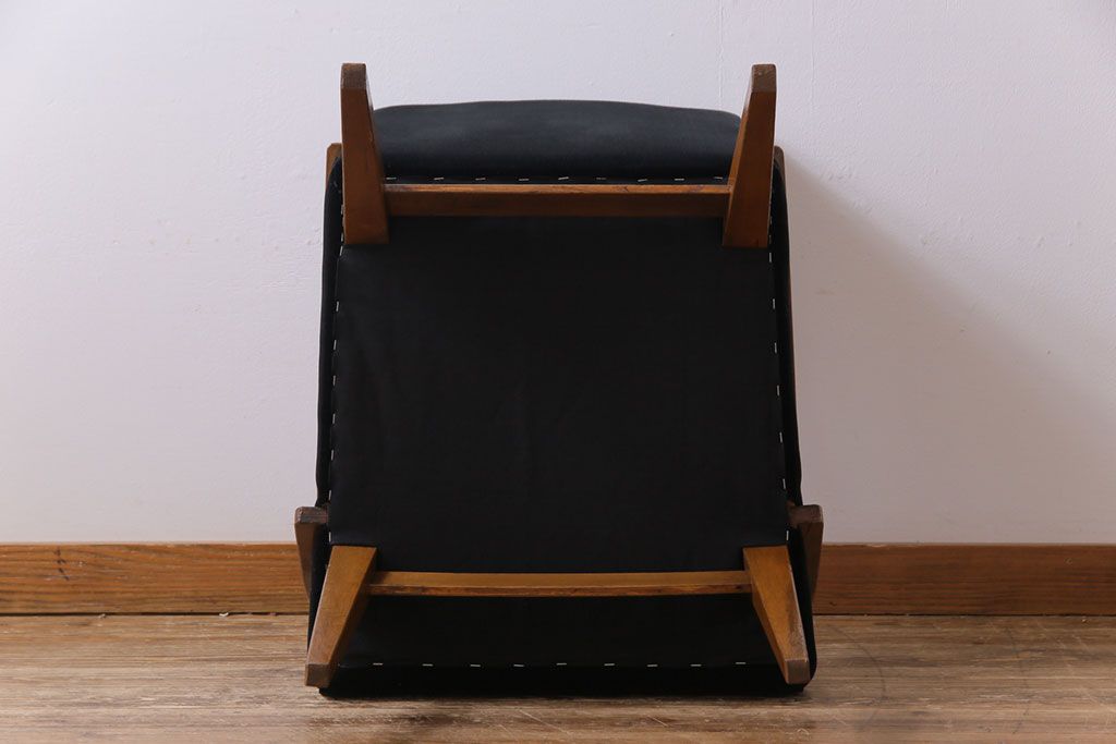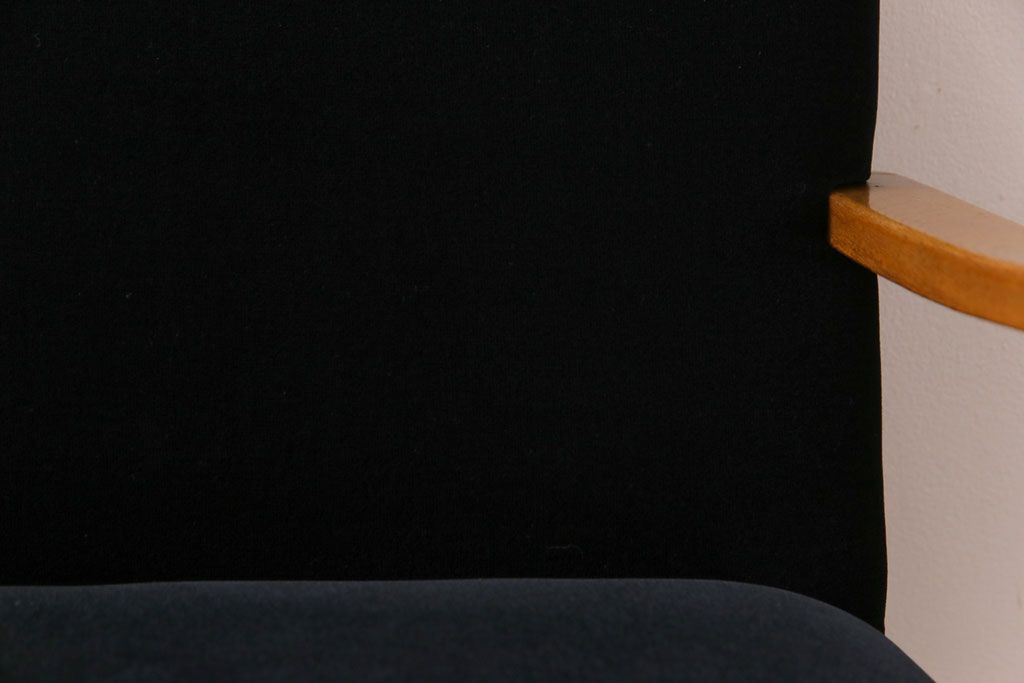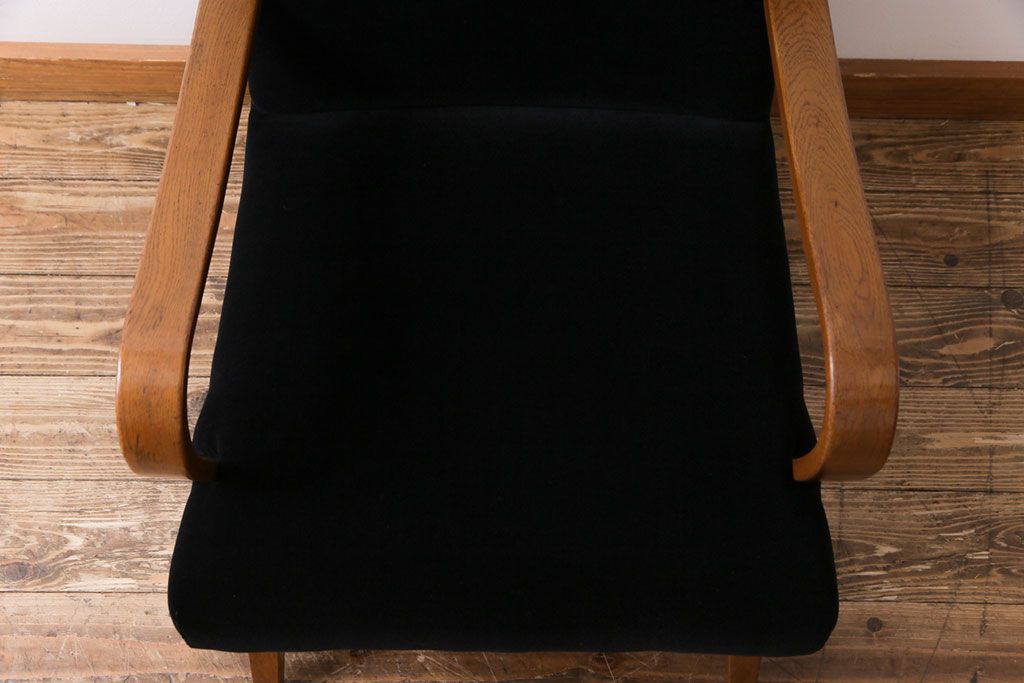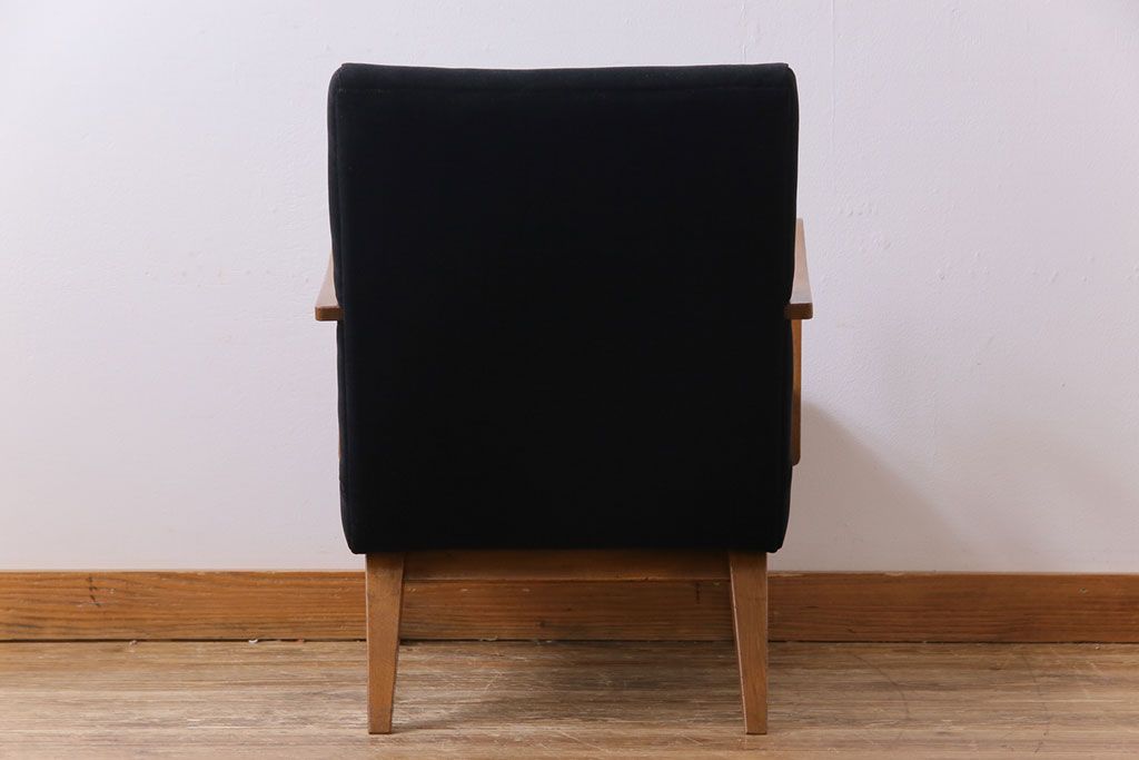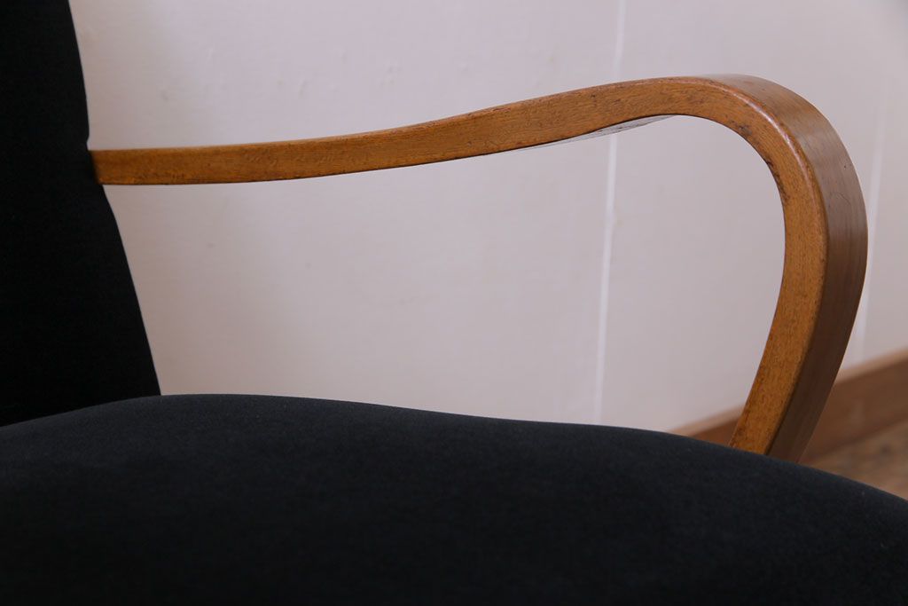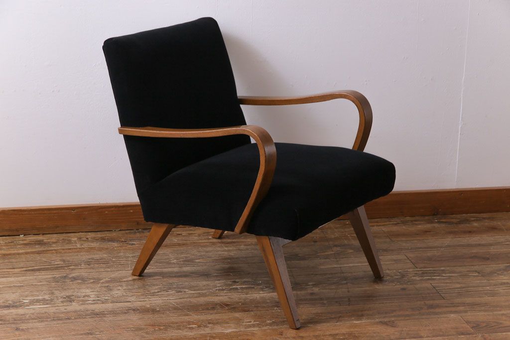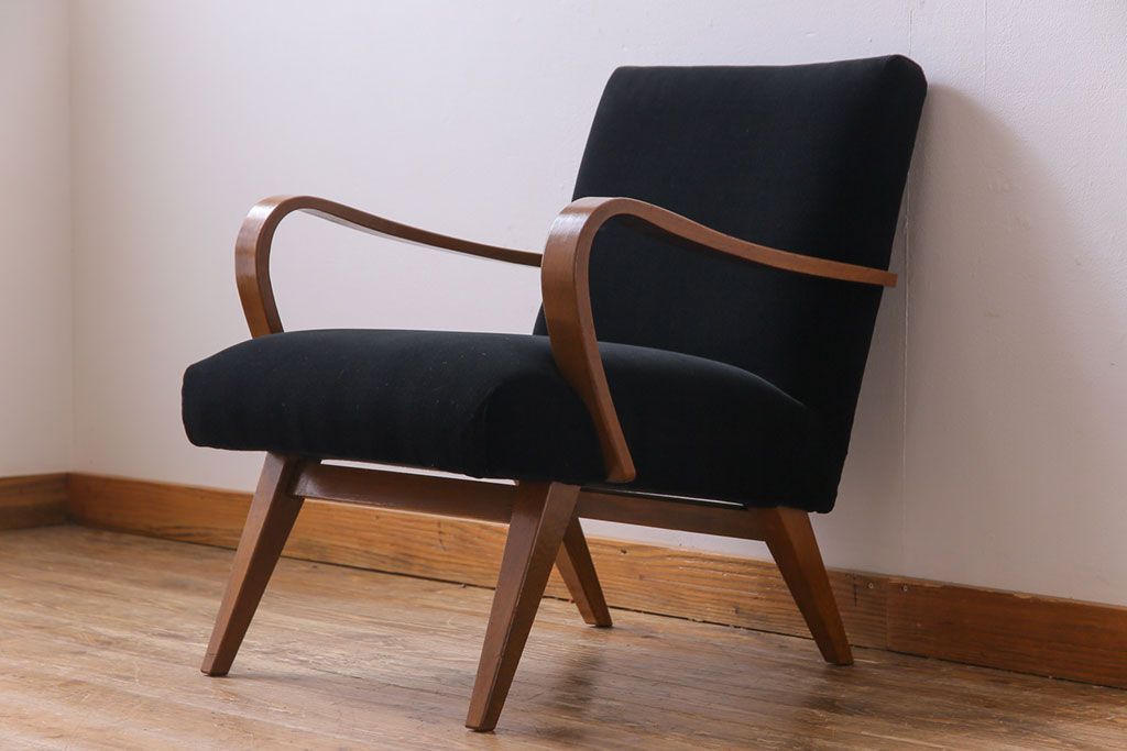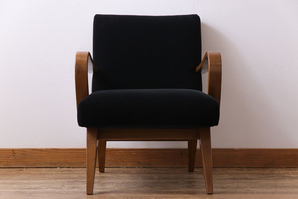 昭和レトロ ナラ材 黒い座面が格好いい一人掛けソファ(アームチェア)です。