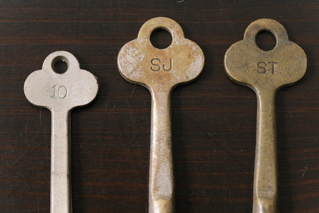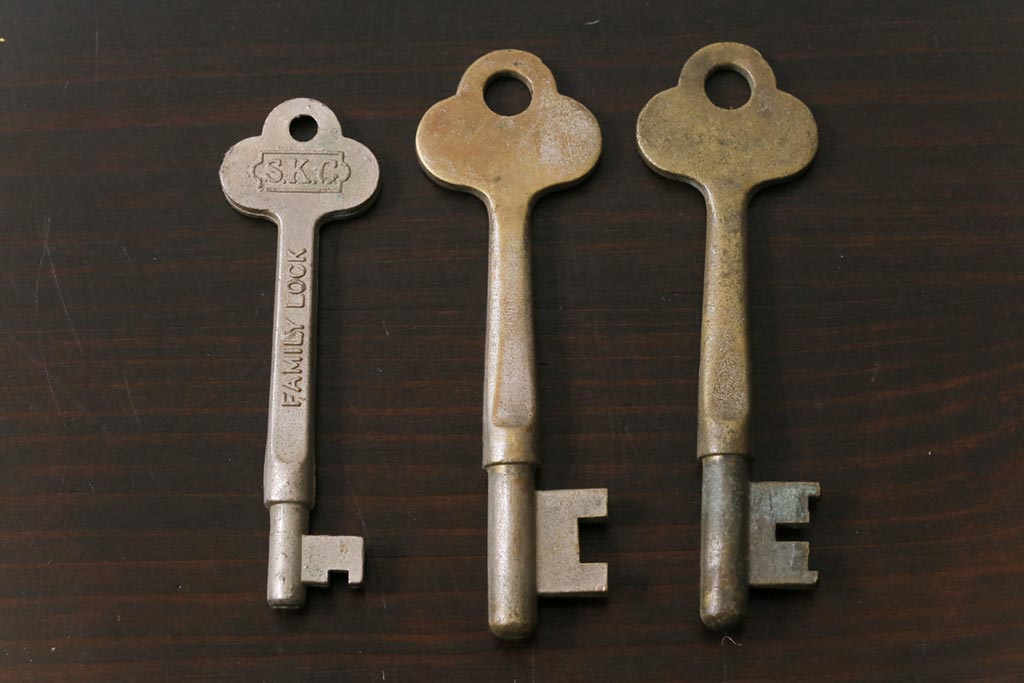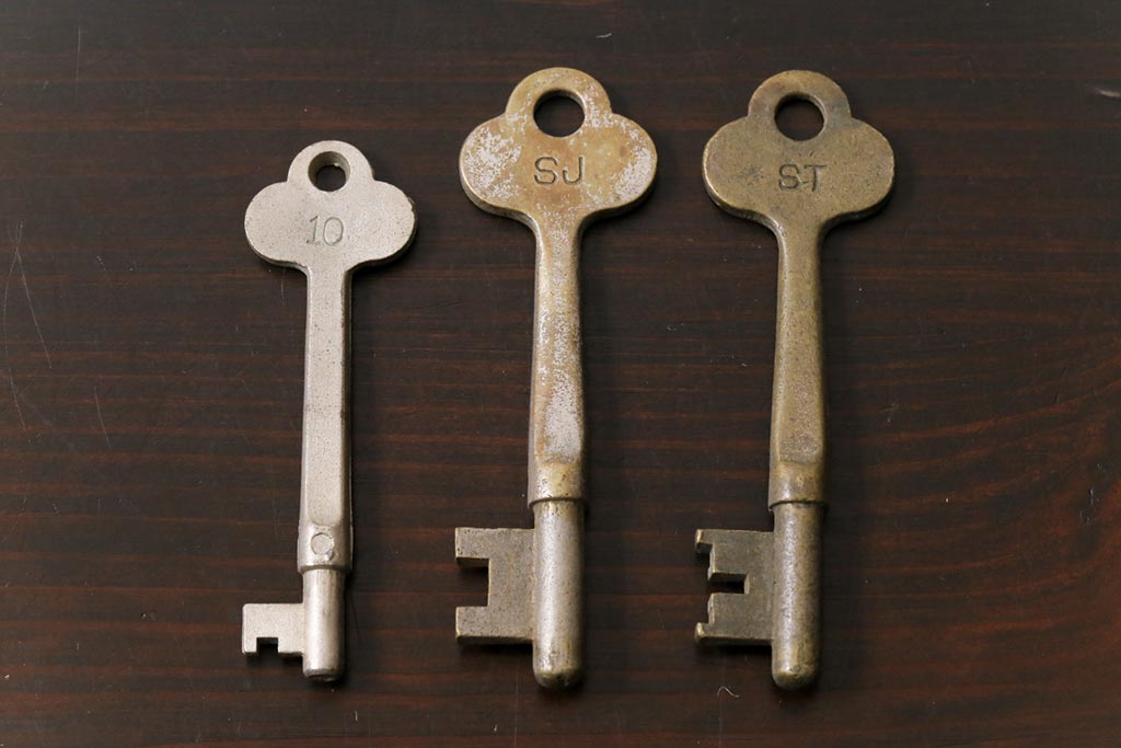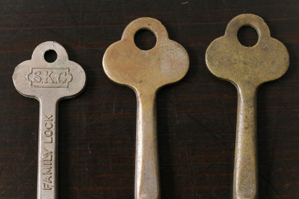 アンティーク雑貨 イギリスアンティーク シャビーな風合いがおしゃれなキー3本セット(鍵、カギ)(1)
