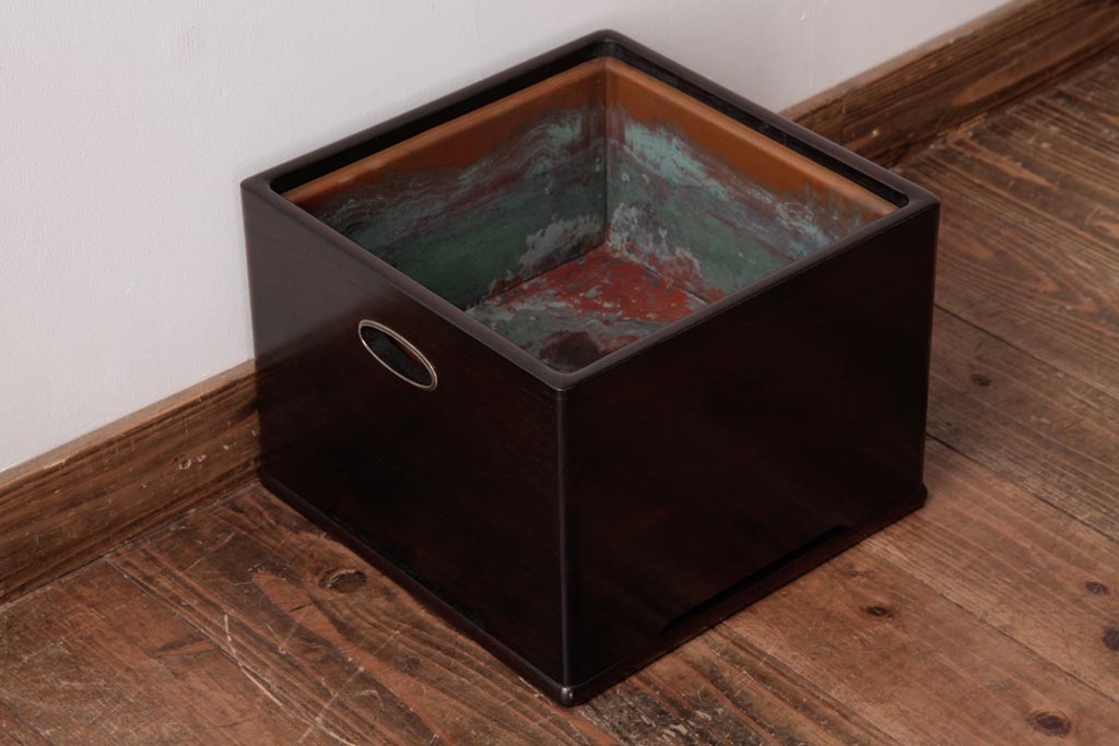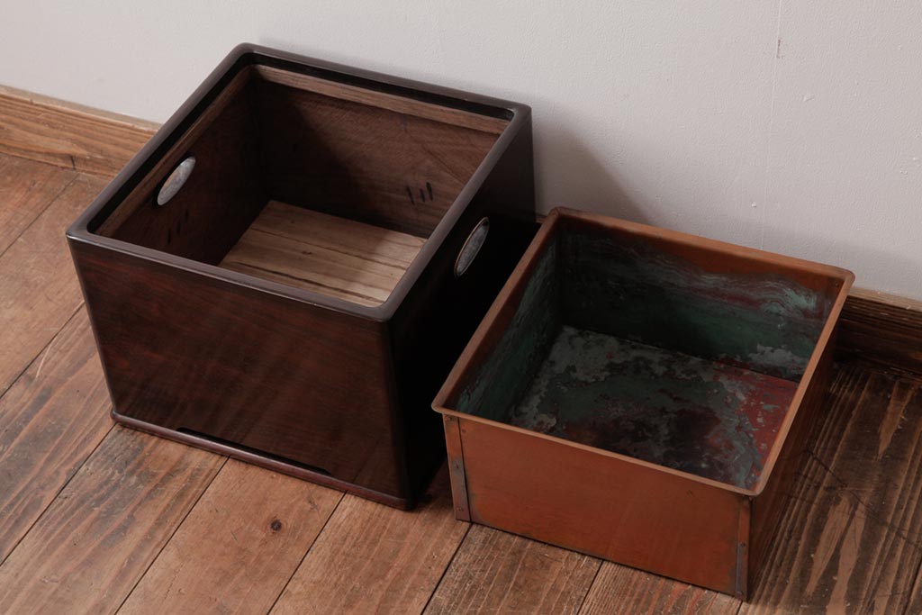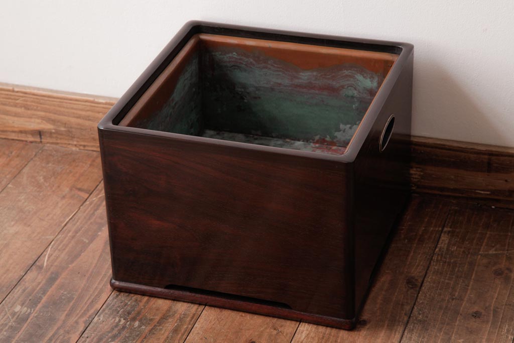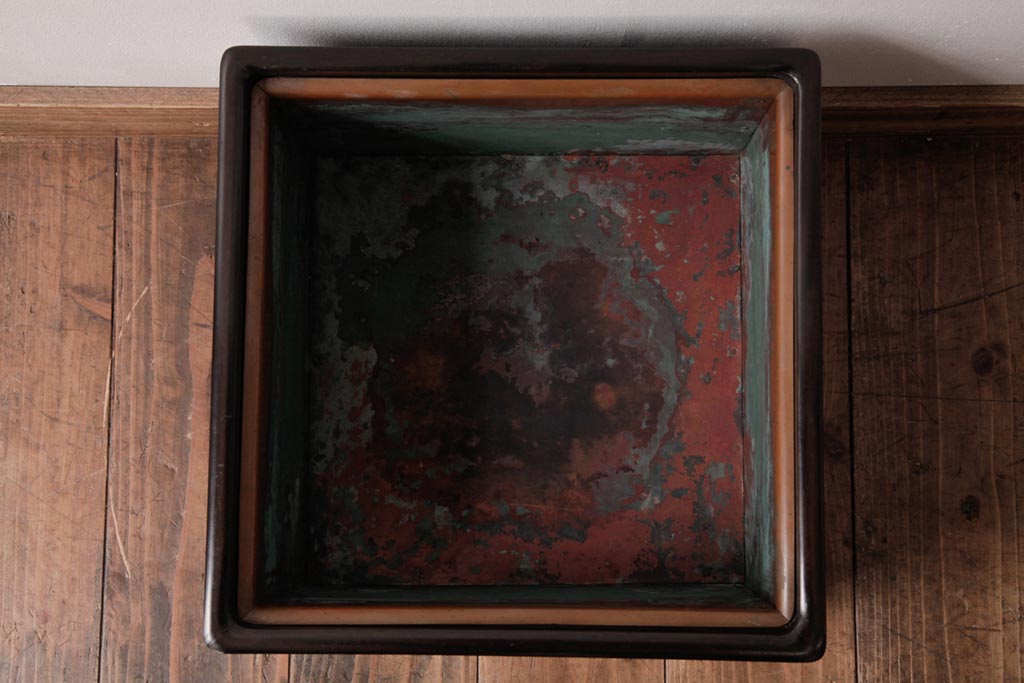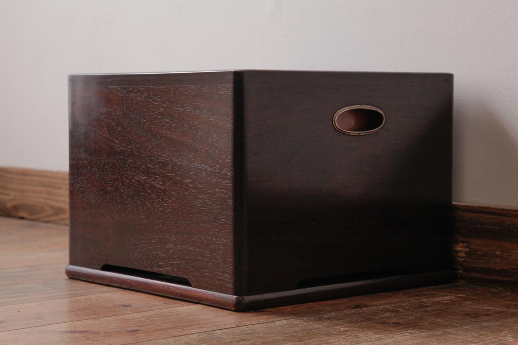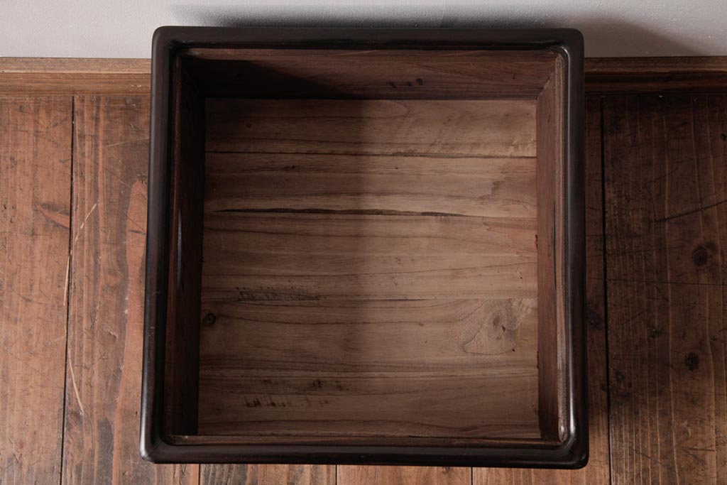 火鉢> 木製火鉢 > アンティーク雑貨 和製アンティーク 指物 紫檀材 なめらかな漆塗りの高級箱火鉢(手あぶり)(1)