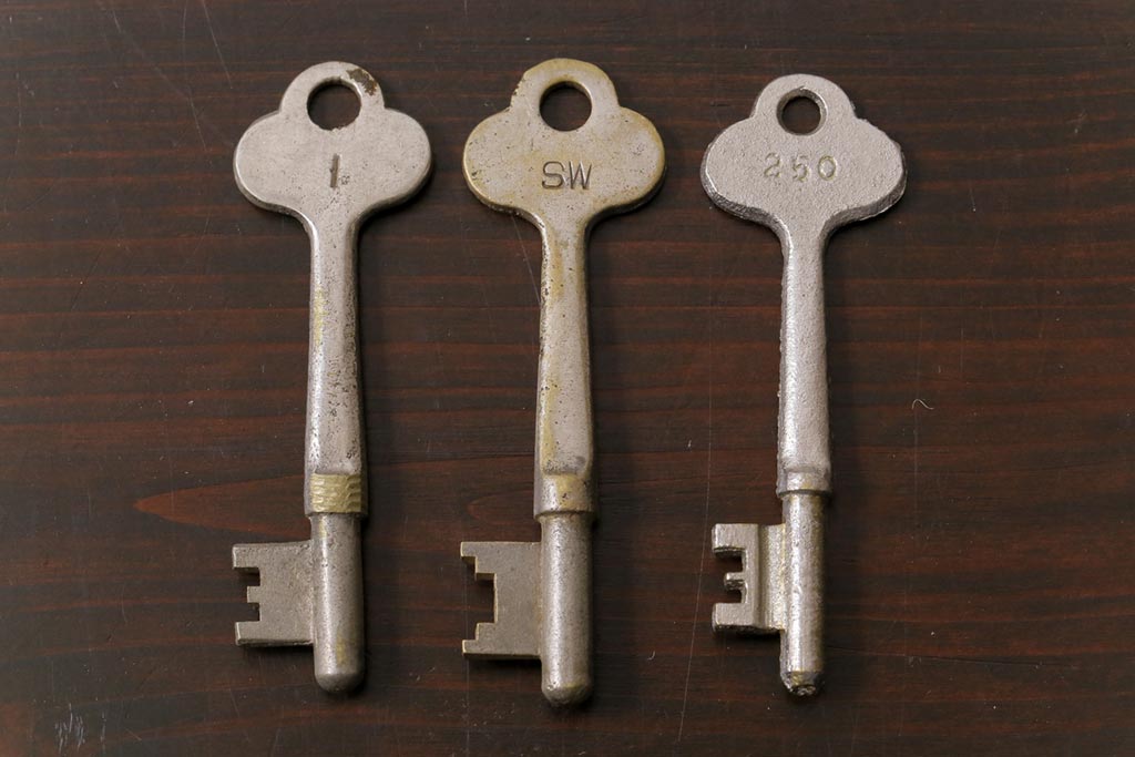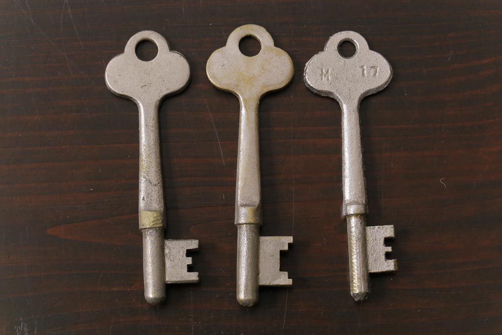 アンティーク雑貨 イギリスアンティーク シャビーな風合いがおしゃれなキー3本セット(鍵、カギ)(2)