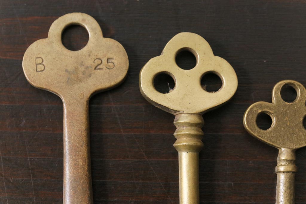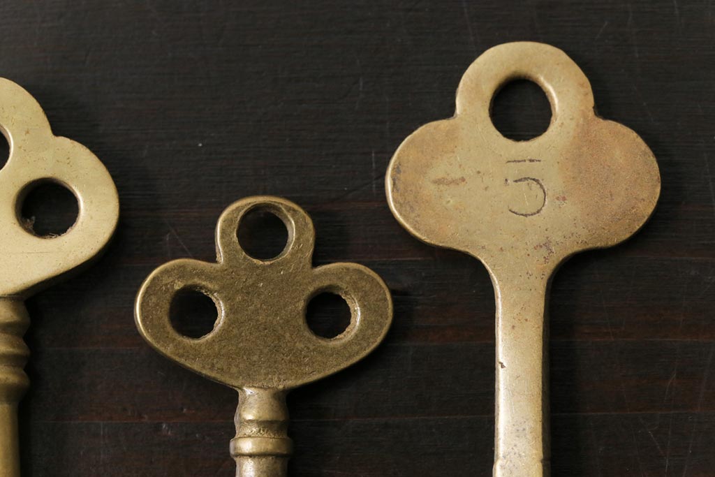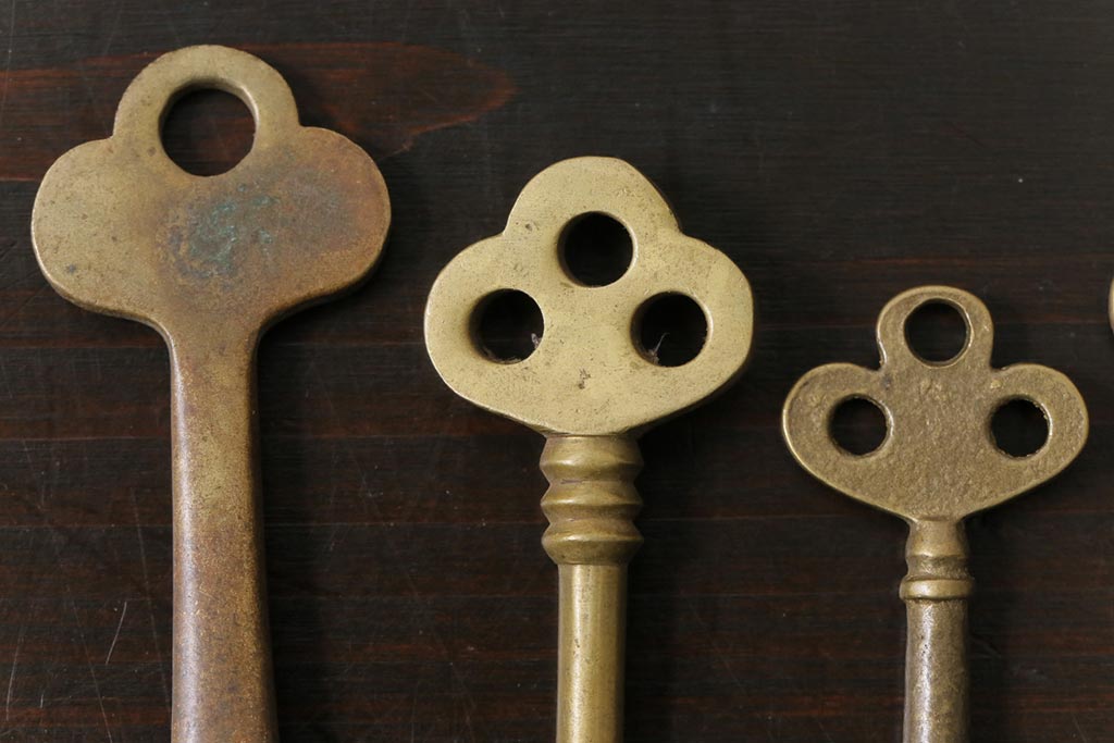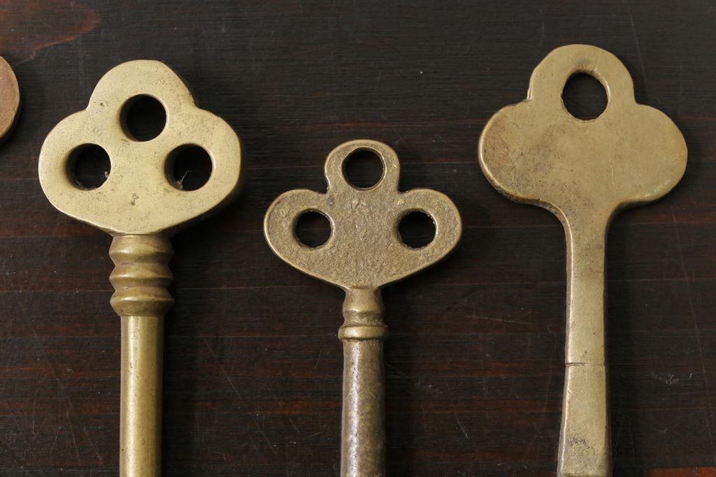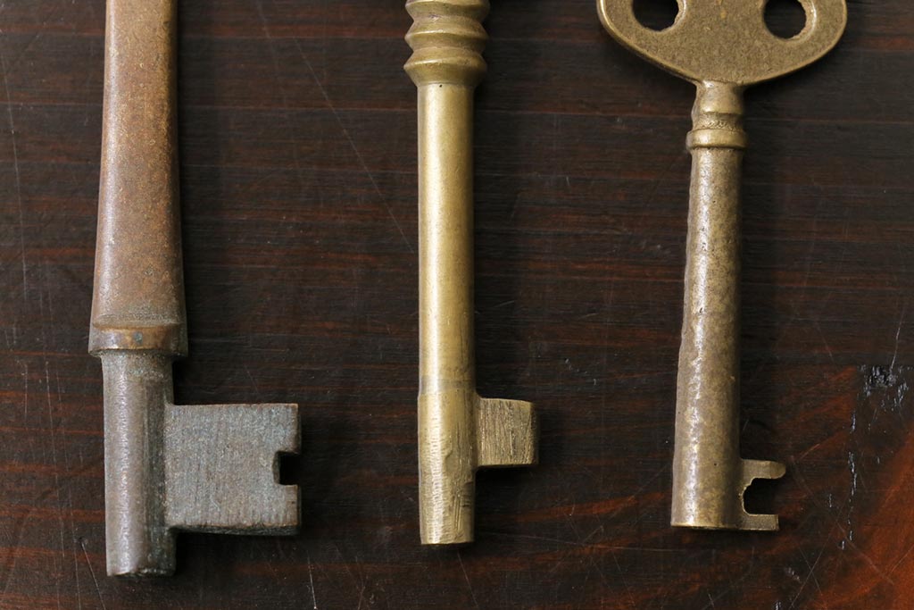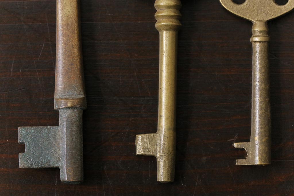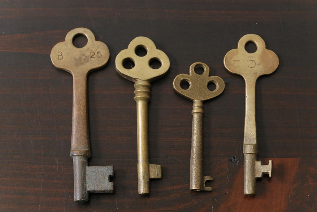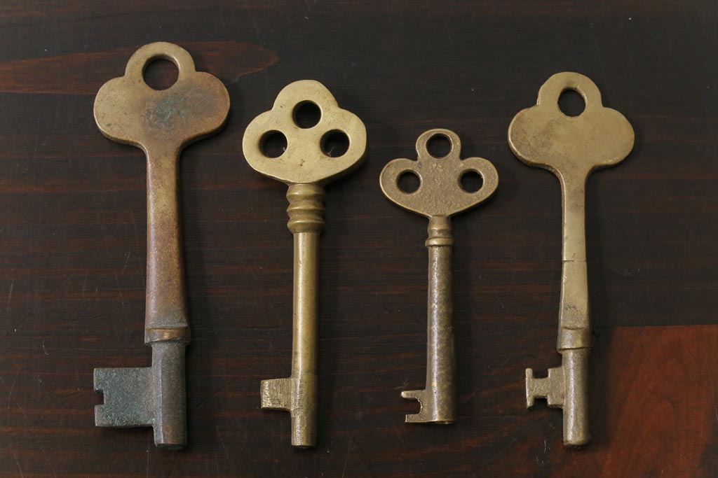 アンティーク雑貨 イギリスアンティーク シャビーな風合いが魅力のキー4本セット(鍵、カギ)