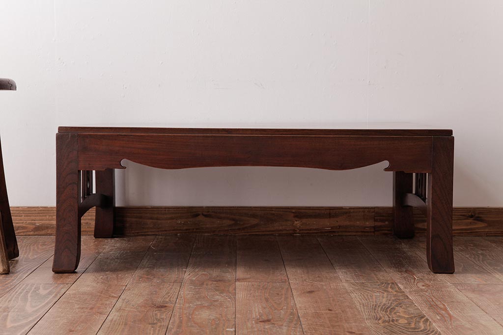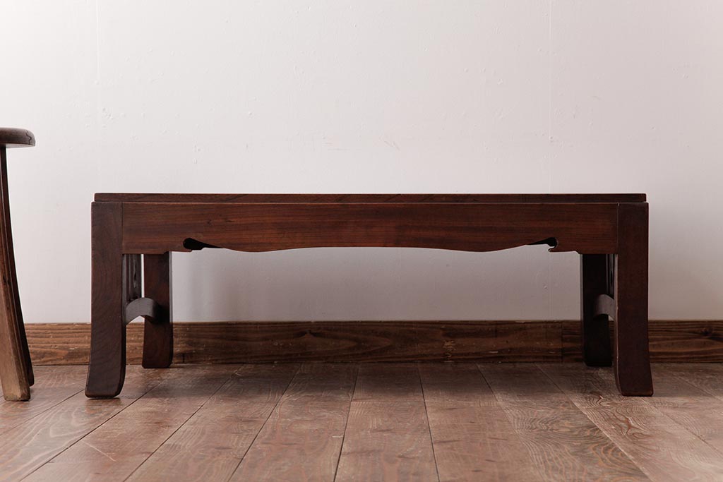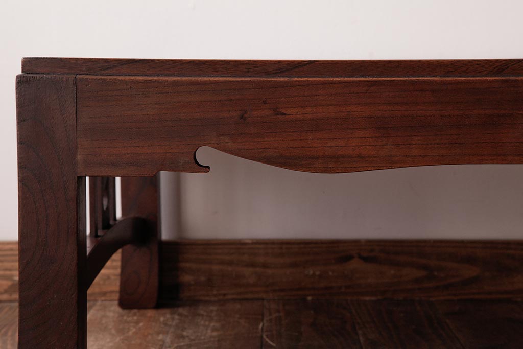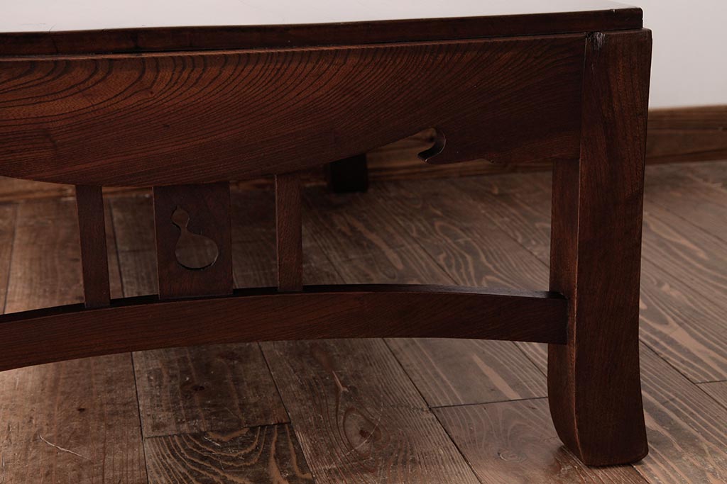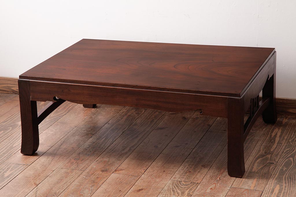 ラフジュ工房> テーブル> センターテーブル・ローテーブル > アンティーク家具 和製アンティーク 総ケヤキ材 天板一枚板 小粋なデザインが趣あふれる座卓(ローテーブル)