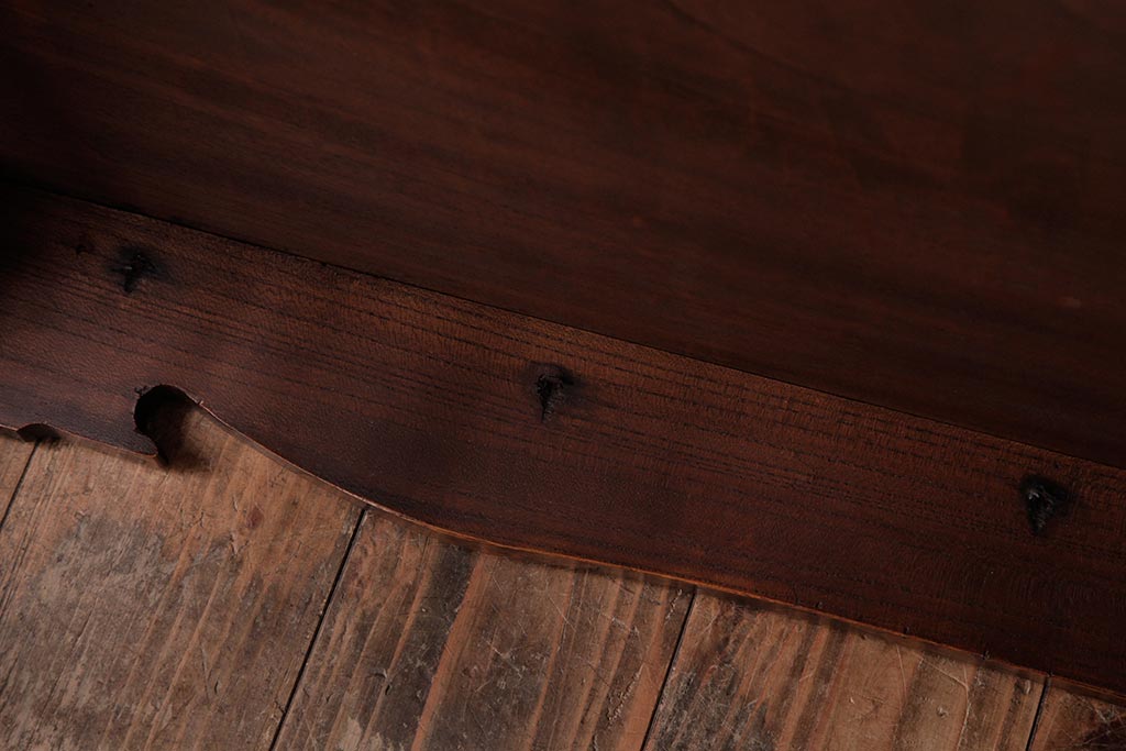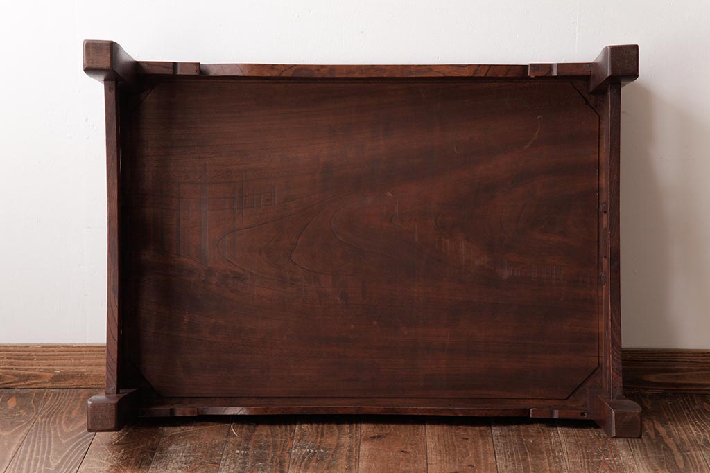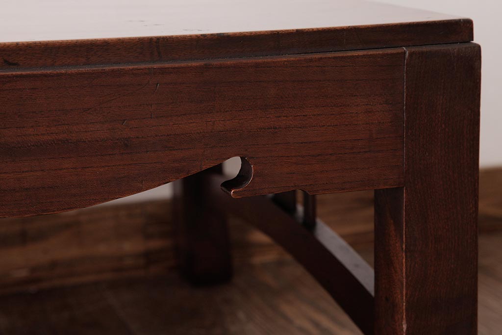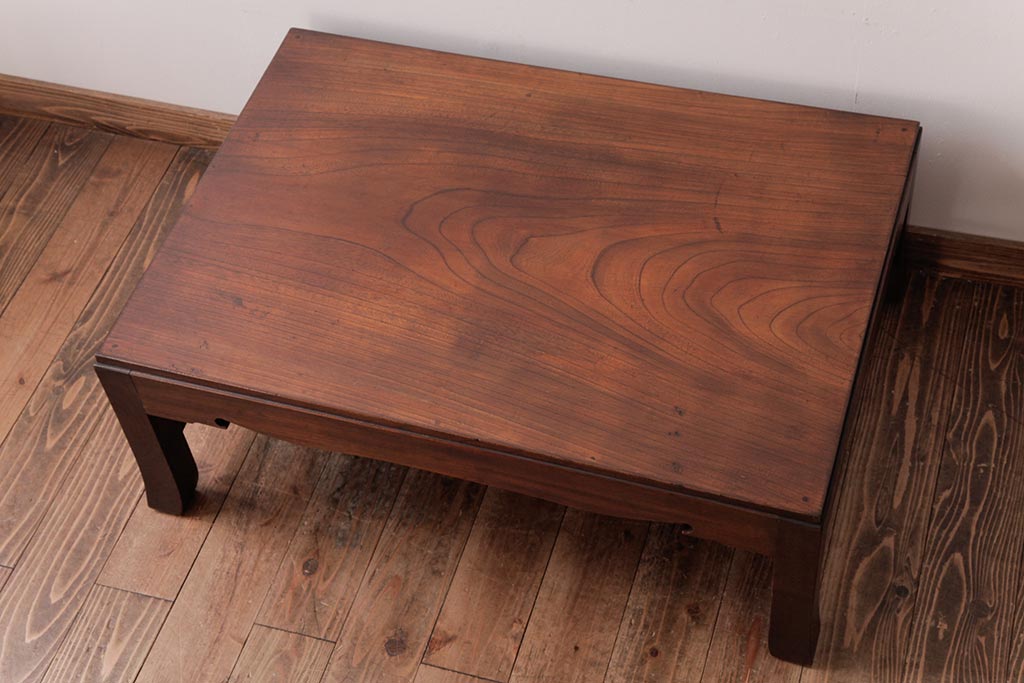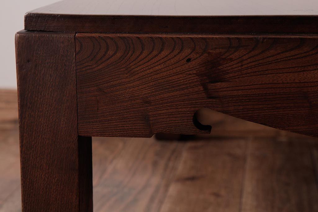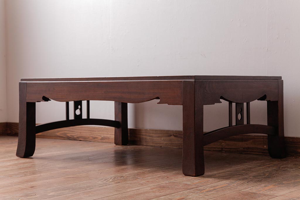 ラフジュ工房> テーブル> センターテーブル・ローテーブル > アンティーク家具 和製アンティーク 総ケヤキ材 天板一枚板 小粋なデザインが趣あふれる座卓(ローテーブル)