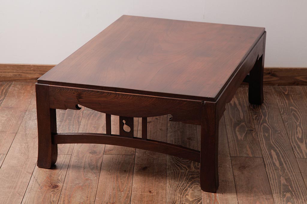 ラフジュ工房> テーブル> 座卓 > アンティーク家具 和製アンティーク 総ケヤキ材 天板一枚板 小粋なデザインが趣あふれる座卓(ローテーブル)