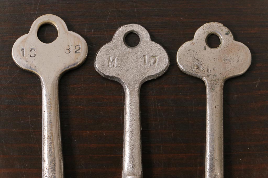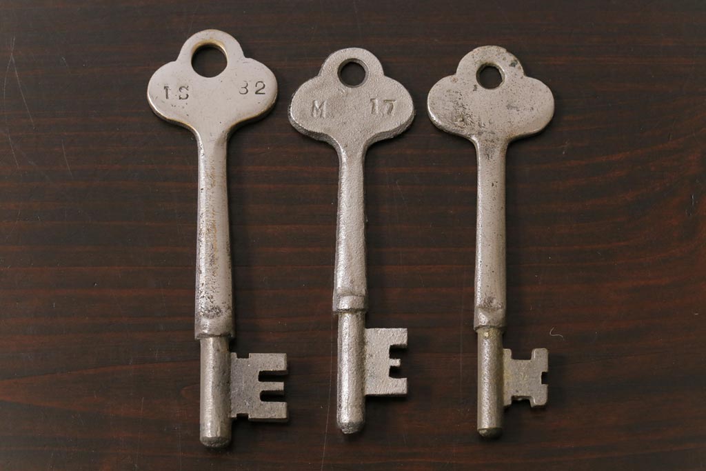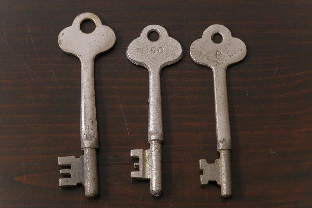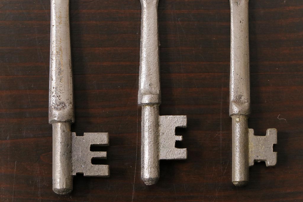 アンティーク雑貨 イギリスアンティーク シャビーな風合いがおしゃれなキー3本セット(鍵、カギ)(3)