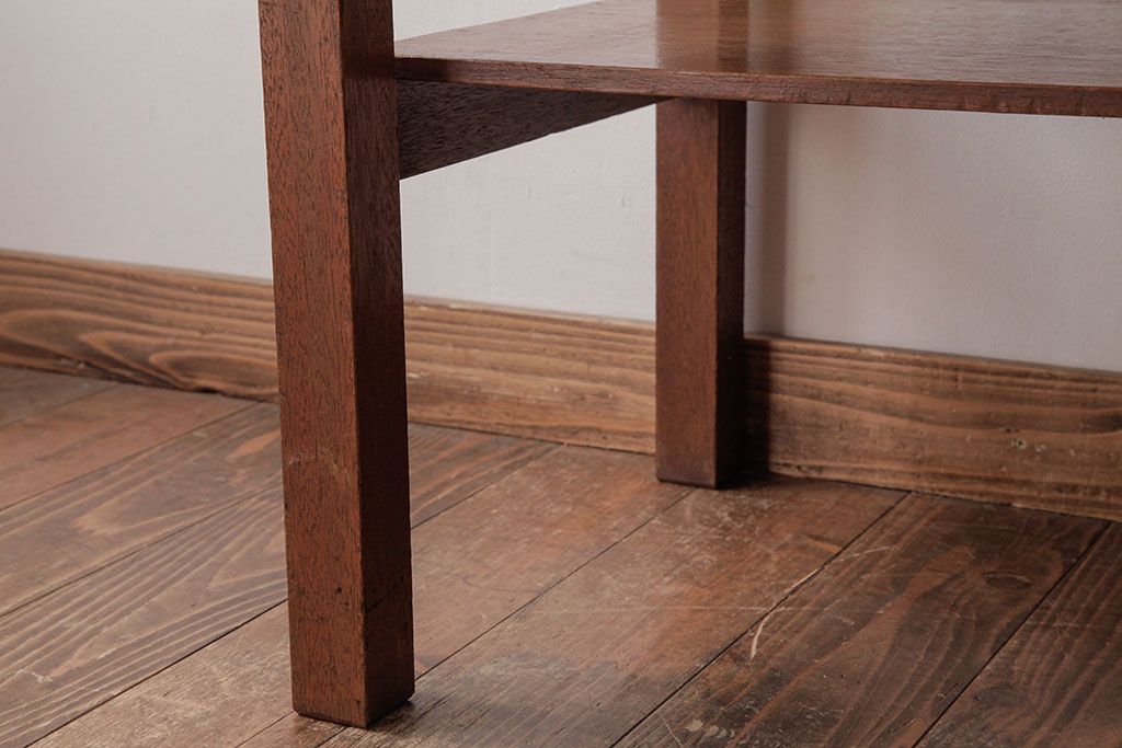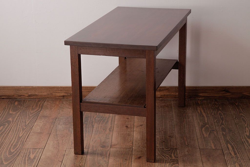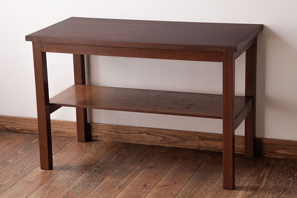 レトロ家具 昭和レトロ 天板樺無垢材 味わいのある風合いの棚板付きテーブル(センターテーブル、飾り台)
