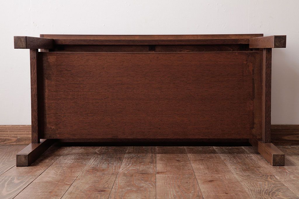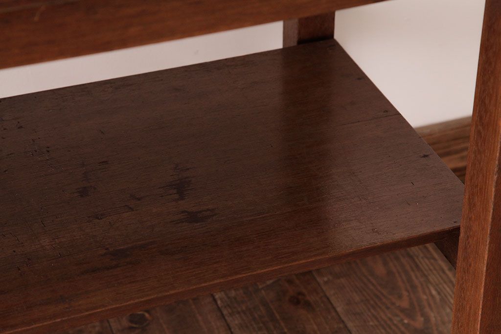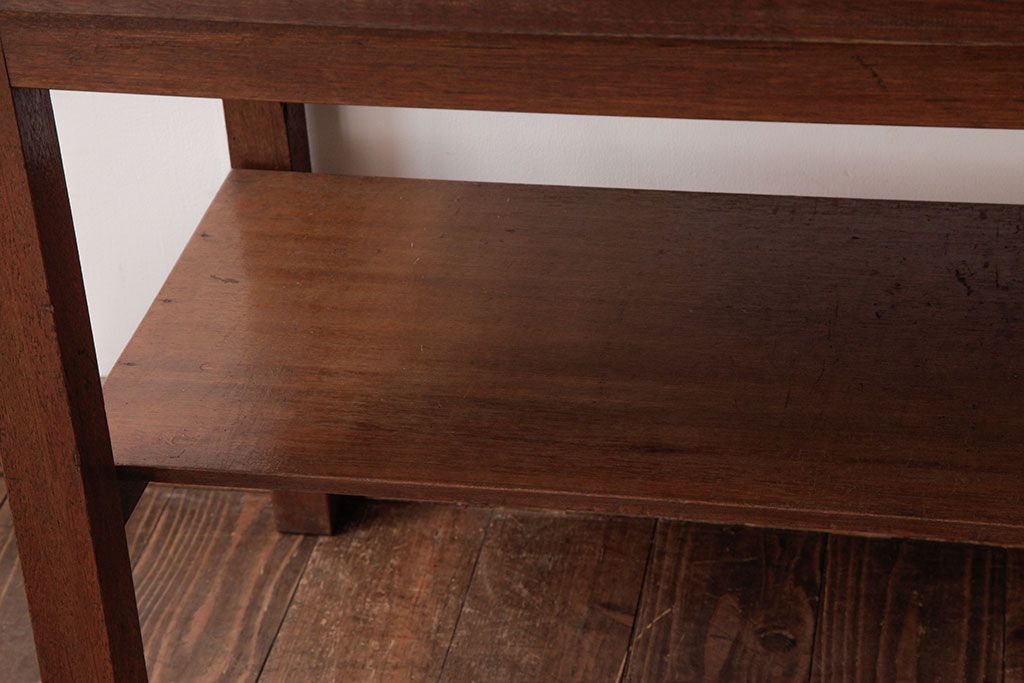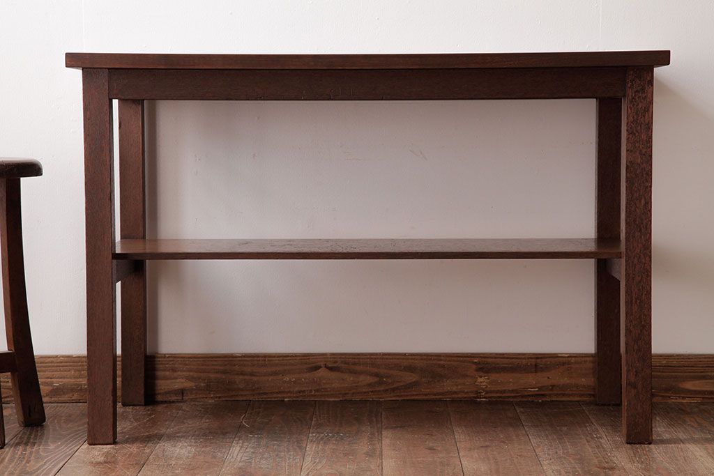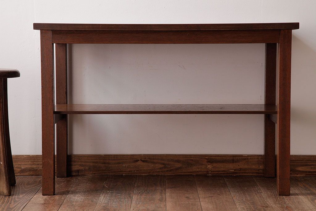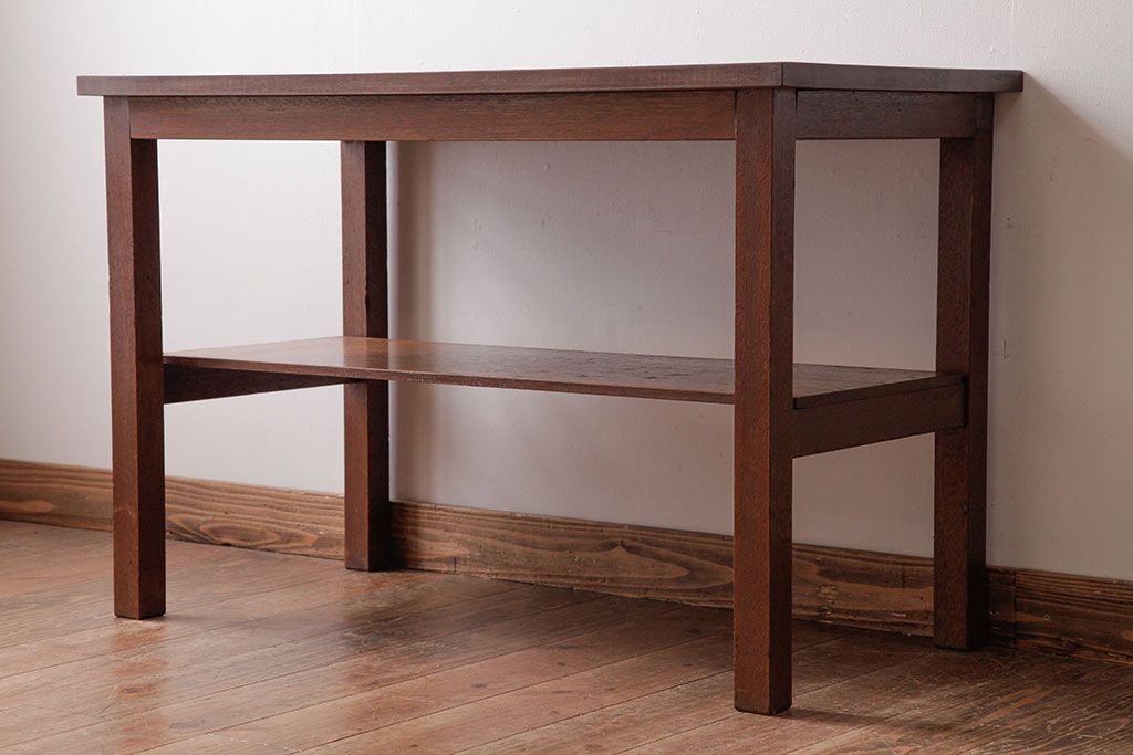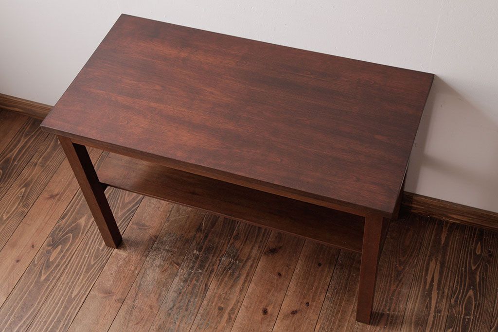 ラフジュ工房> テーブル> センターテーブル・ローテーブル > レトロ家具 昭和レトロ 天板樺無垢材 味わいのある風合いの棚板付きテーブル(センターテーブル、飾り台)