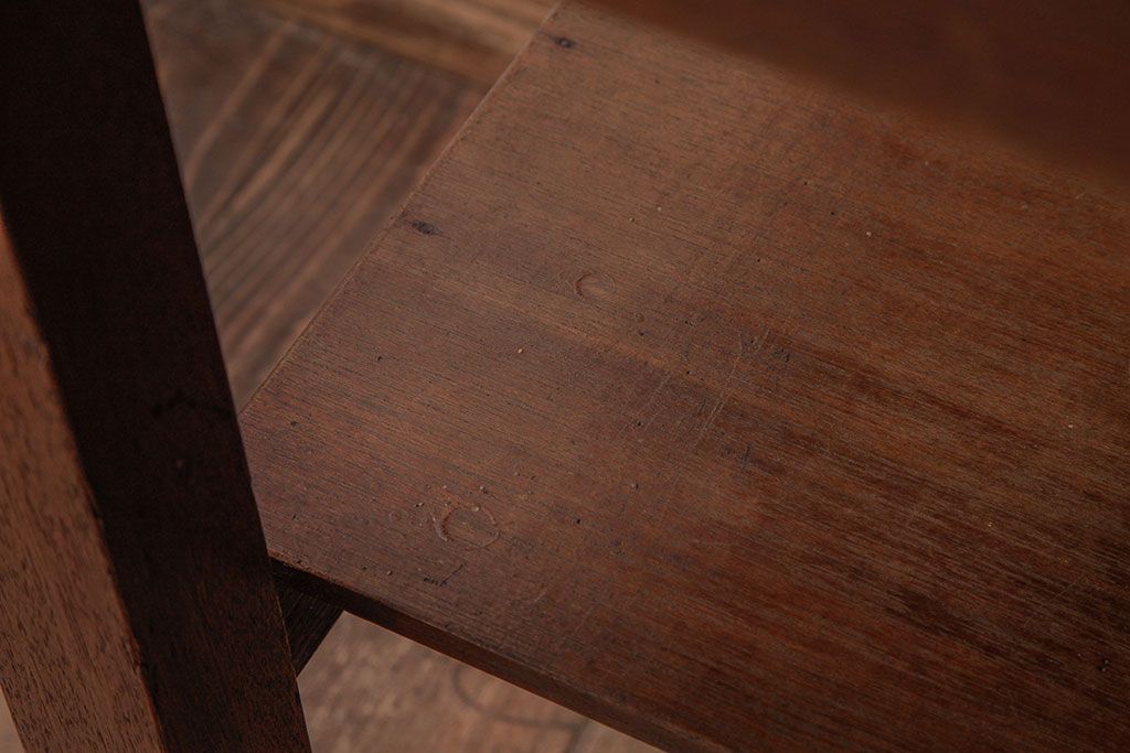 ラフジュ工房> テーブル> カフェテーブル・コーヒーテーブル > レトロ家具 昭和レトロ 天板樺無垢材 味わいのある風合いの棚板付きテーブル(センターテーブル、飾り台)