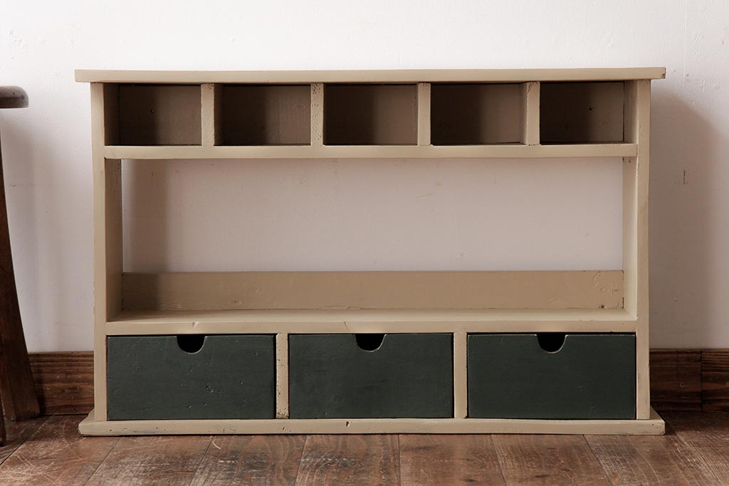 中古 無垢材 ペイント家具 レトロな雰囲気が味のある小振りな飾り棚