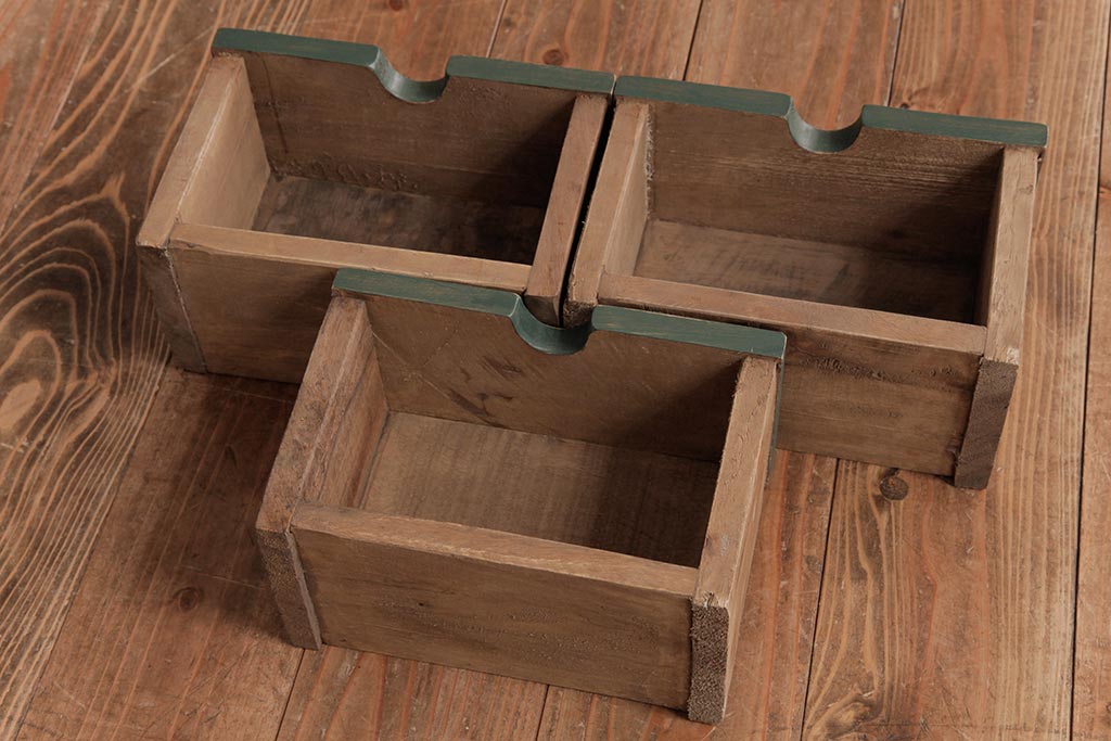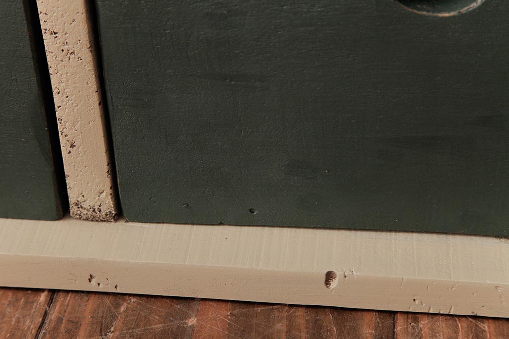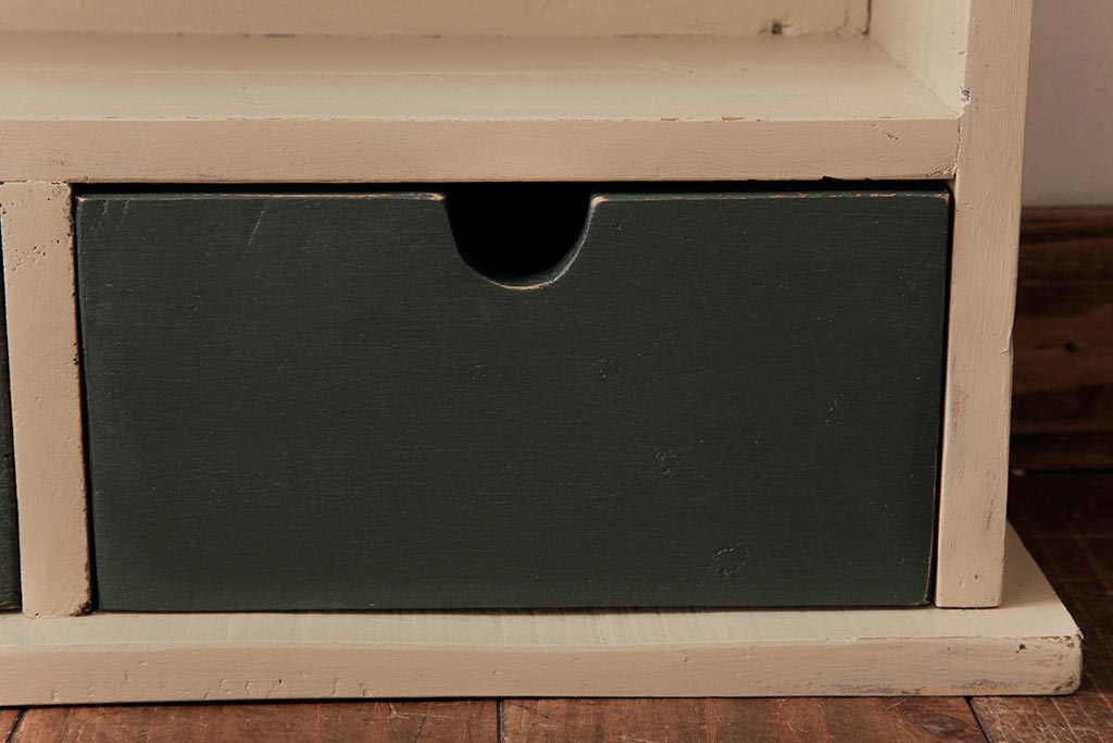 ペイントカラーは、本体:モカベージュ、引き出し:ダークグリーンです。