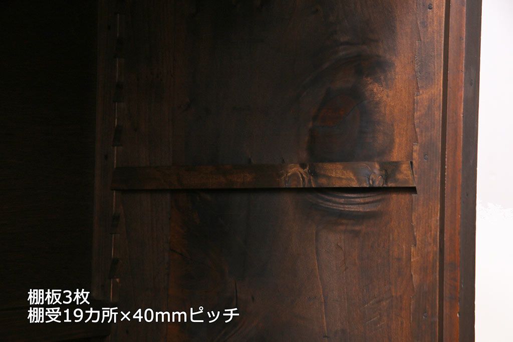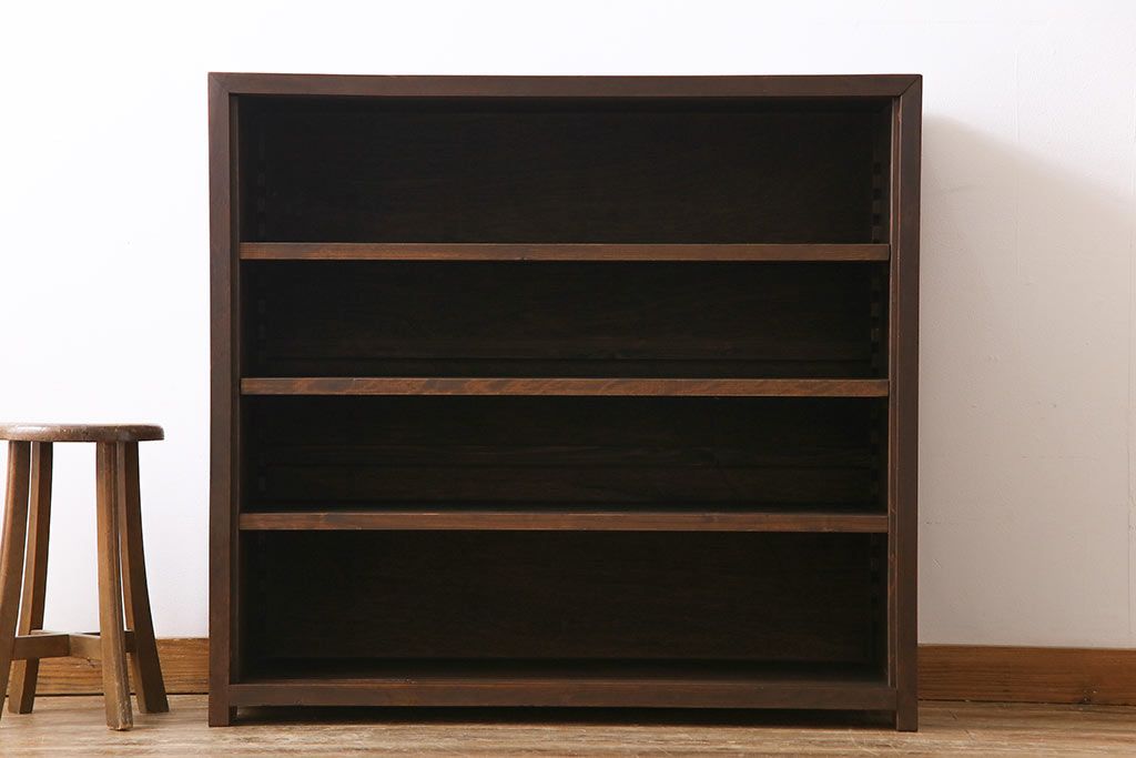 アンティーク家具 昭和中期 ヒノキ材 落ち着いた色味のシンプルなオープンラック(収納棚、飾り棚)