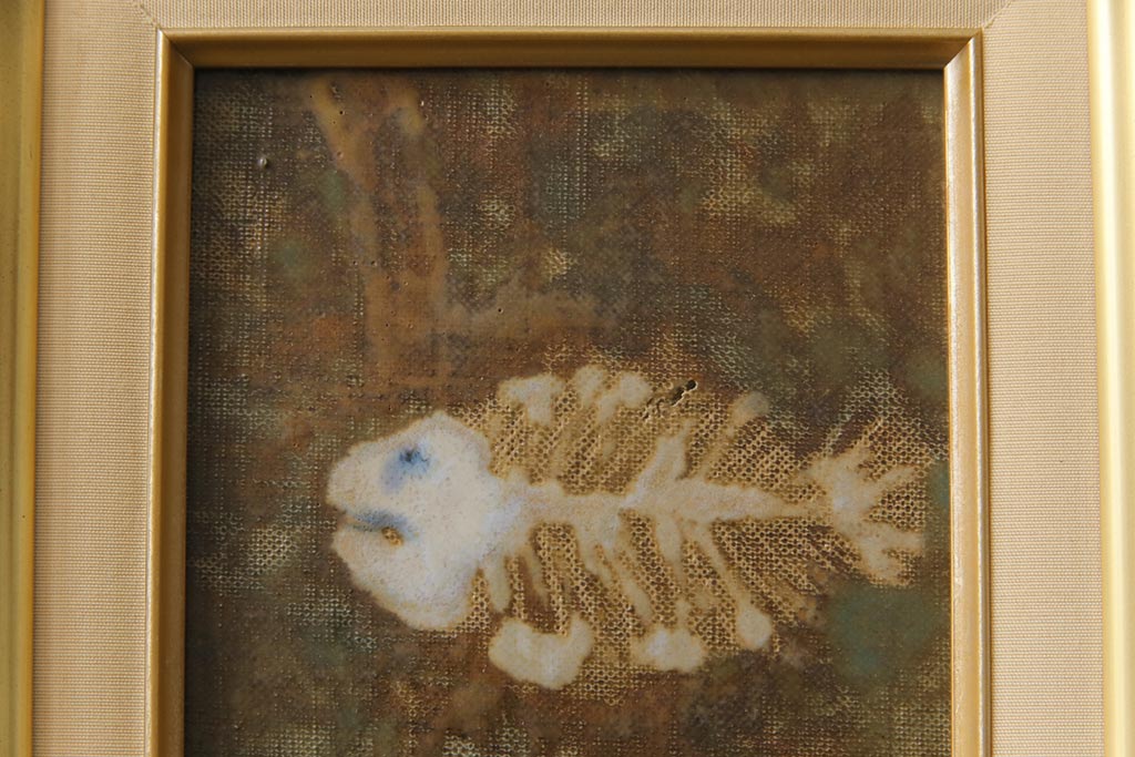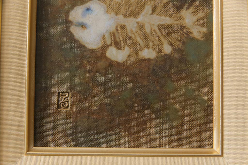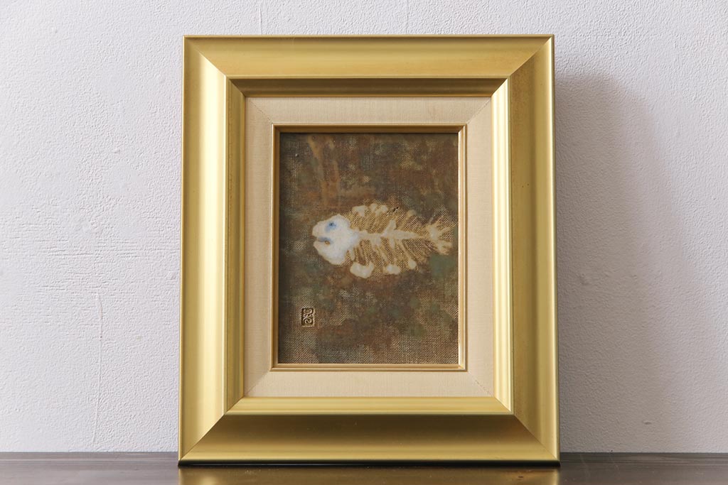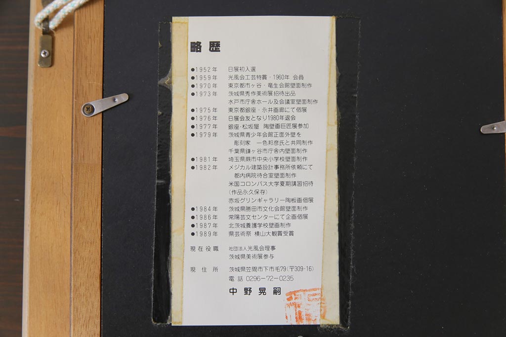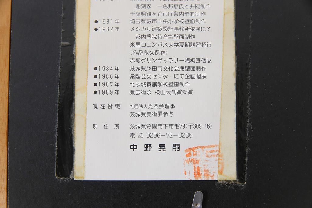 ラフジュ工房> 骨董・美術品> 日本画・洋画 > アンティーク雑貨 昭和期 中野晃嗣作 笠間焼の素朴な風合いが魅力的な魚の陶板画