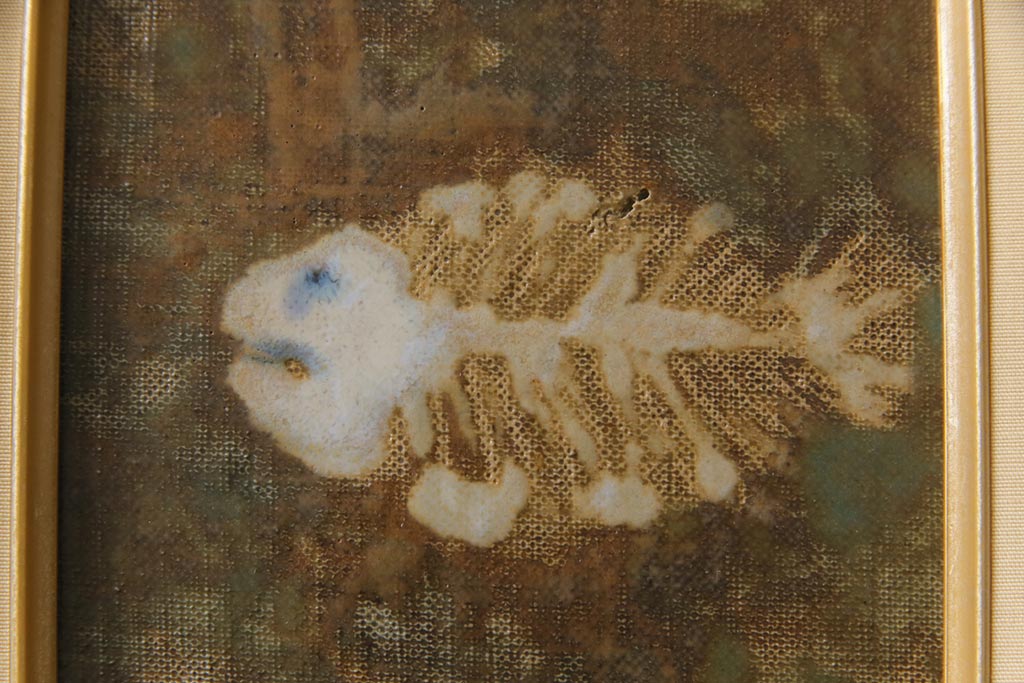 ラフジュ工房> 伝統工芸品> 笠間焼 > アンティーク雑貨 昭和期 中野晃嗣作 笠間焼の素朴な風合いが魅力的な魚の陶板画