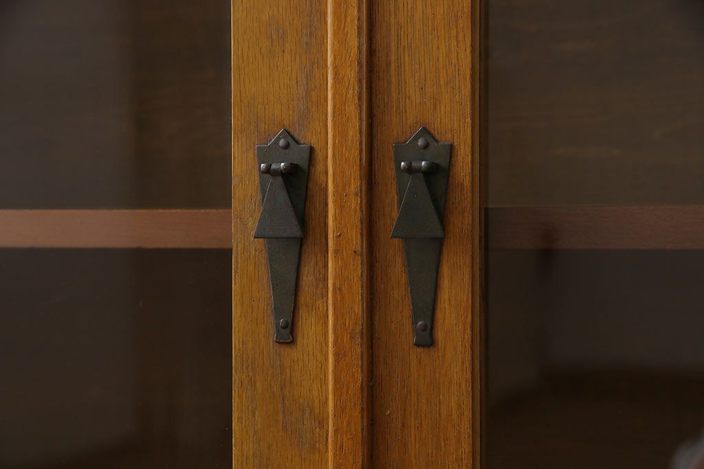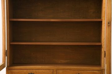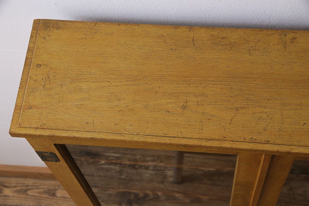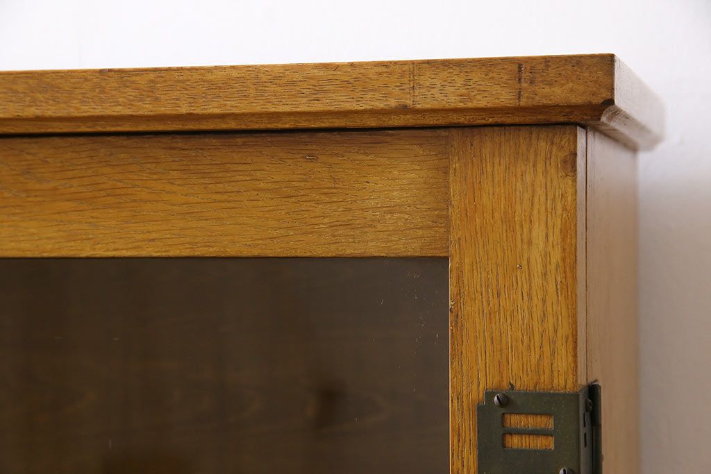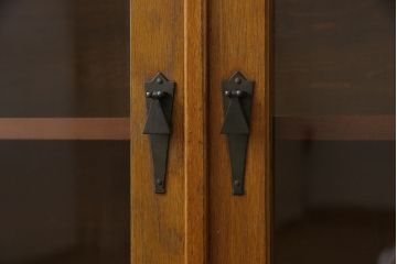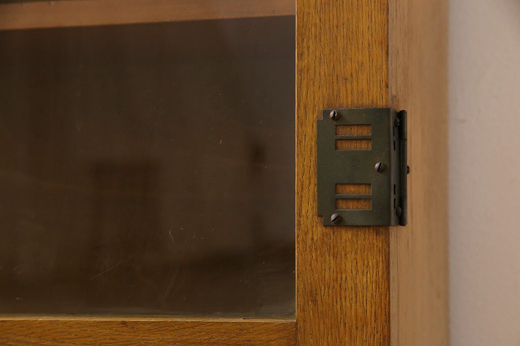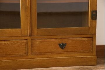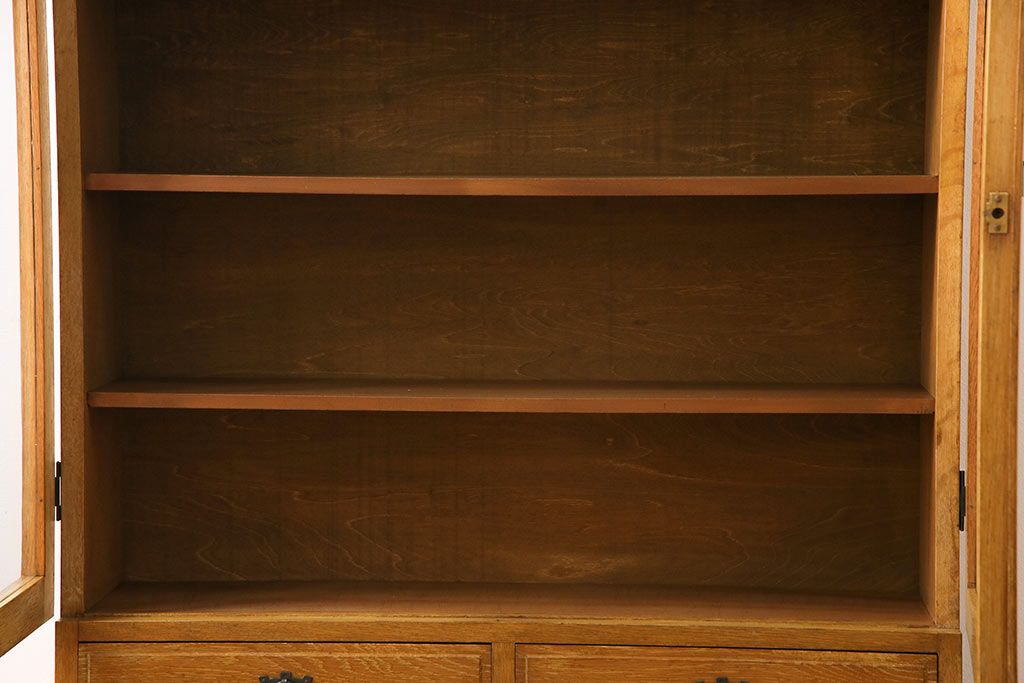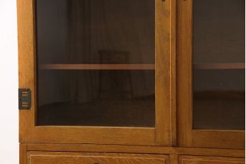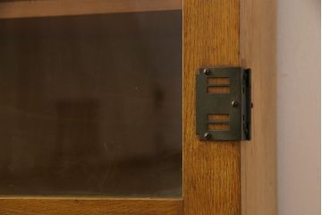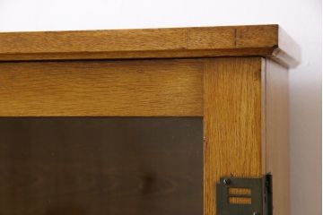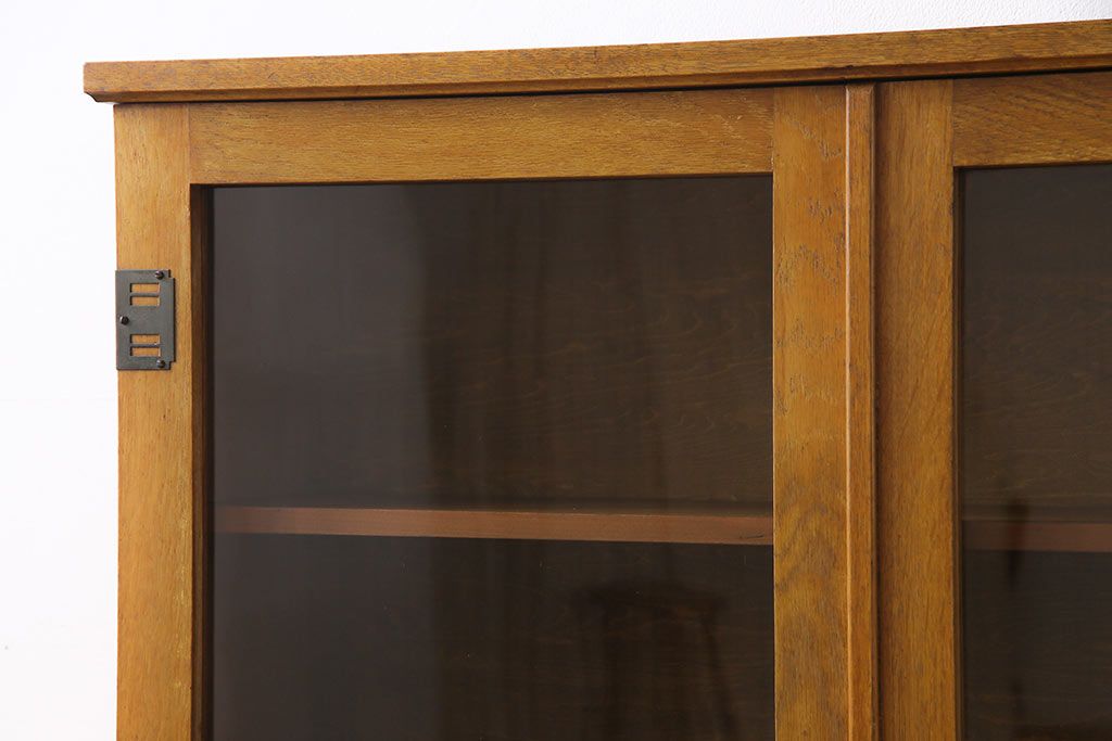 レトロ家具 和製アンティーク 三方ナラ材 薄型 凝った作りが魅力のレトロなブックケース(収納棚、飾り棚)