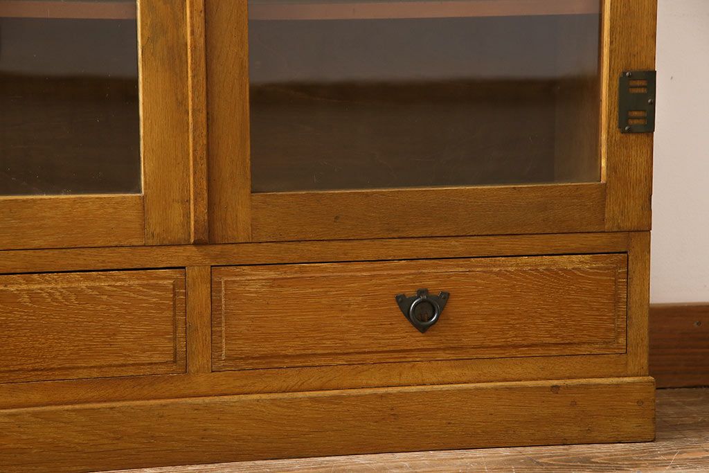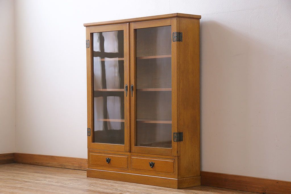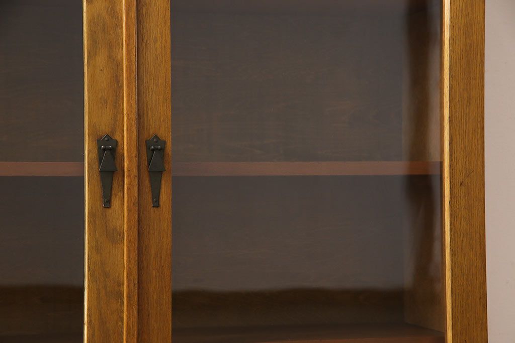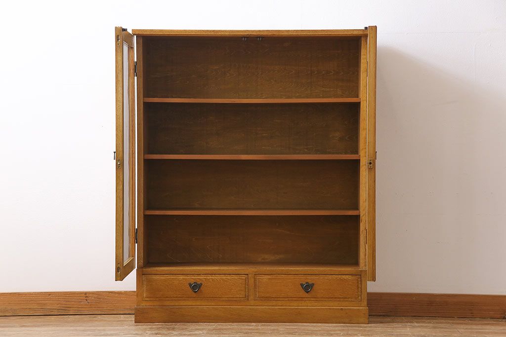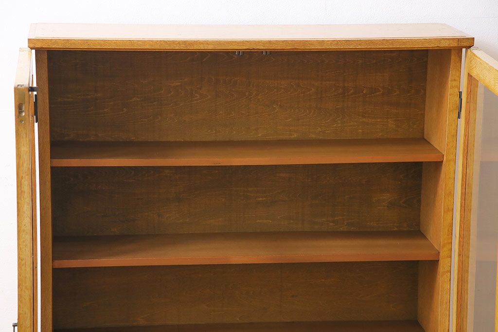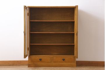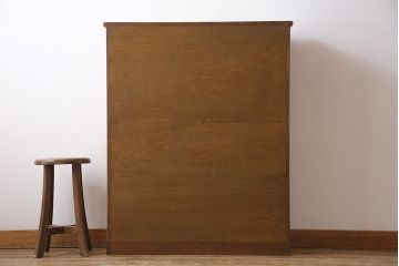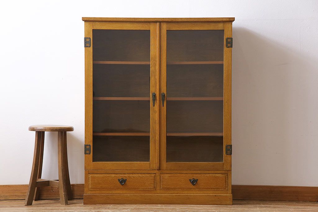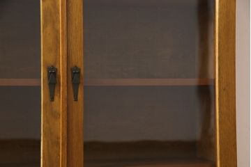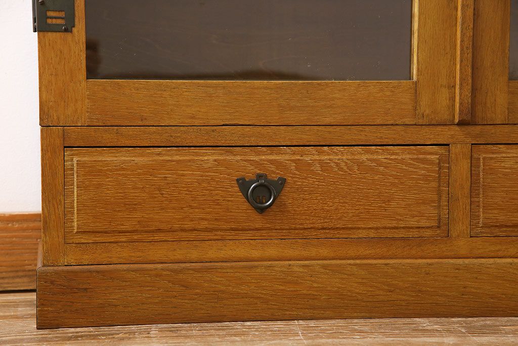 レトロ家具 和製アンティーク 三方ナラ材 薄型 凝った作りが魅力のレトロなブックケース(収納棚、飾り棚)