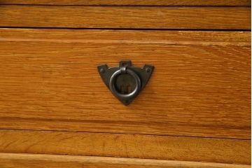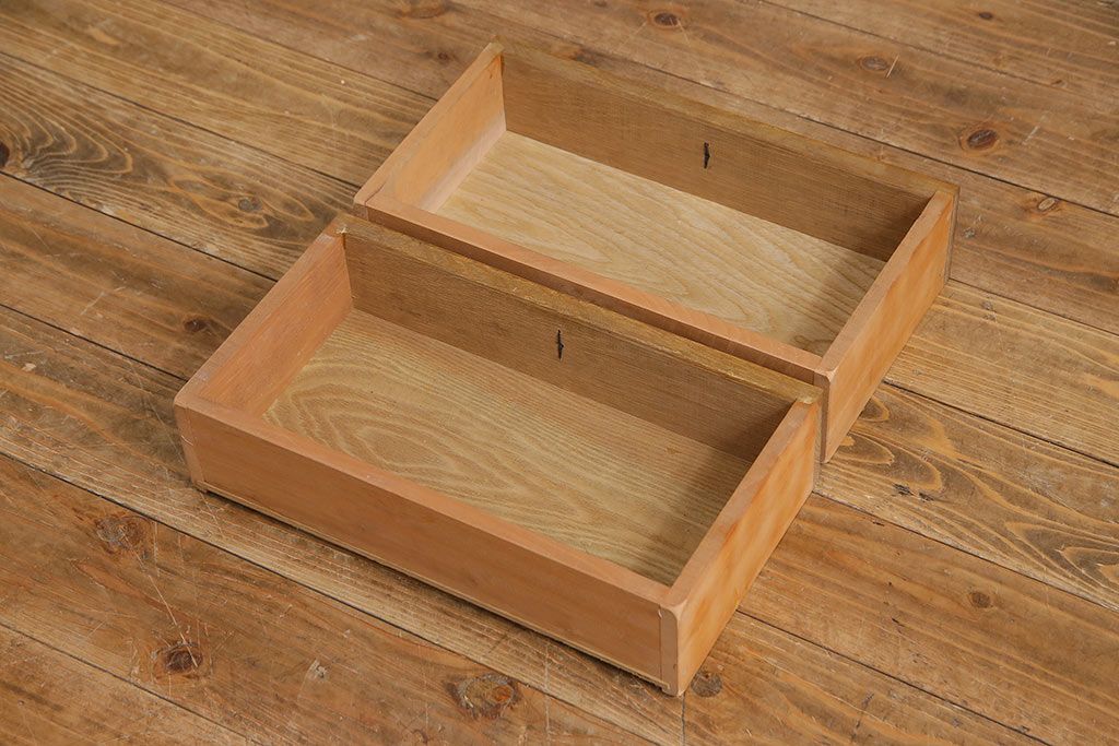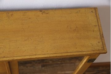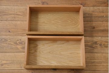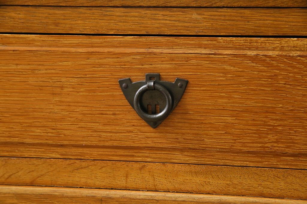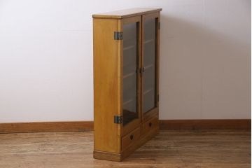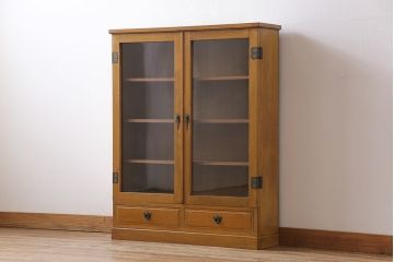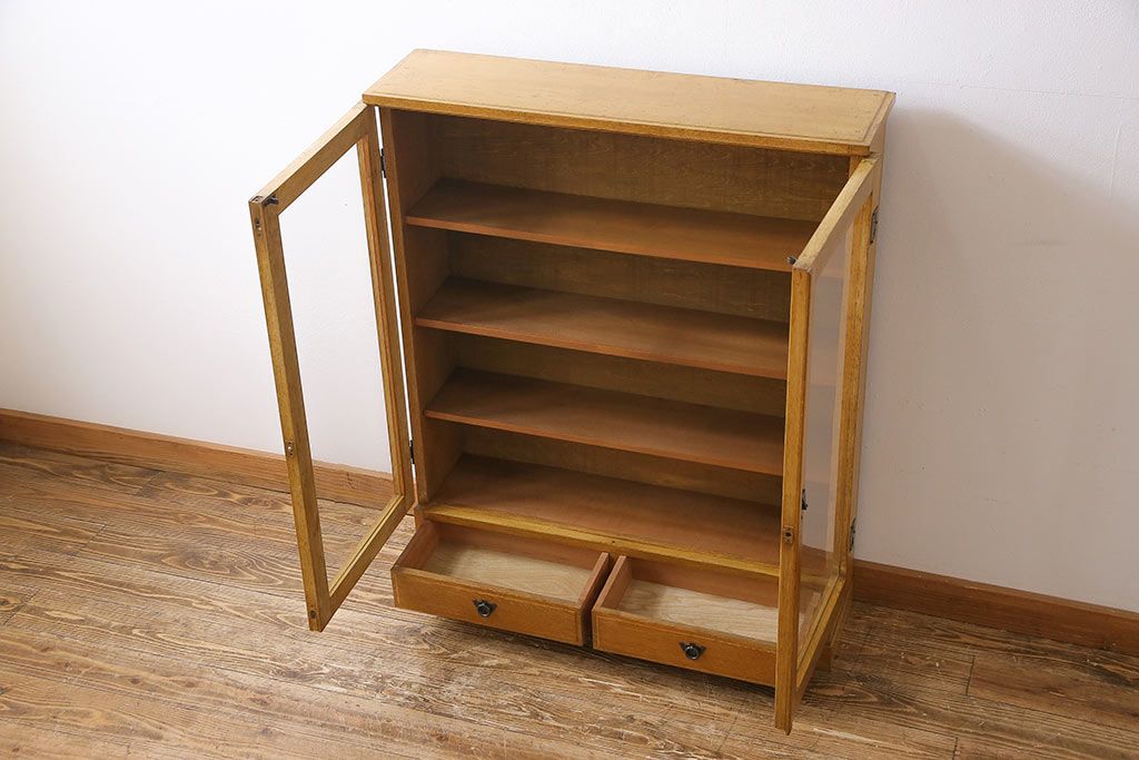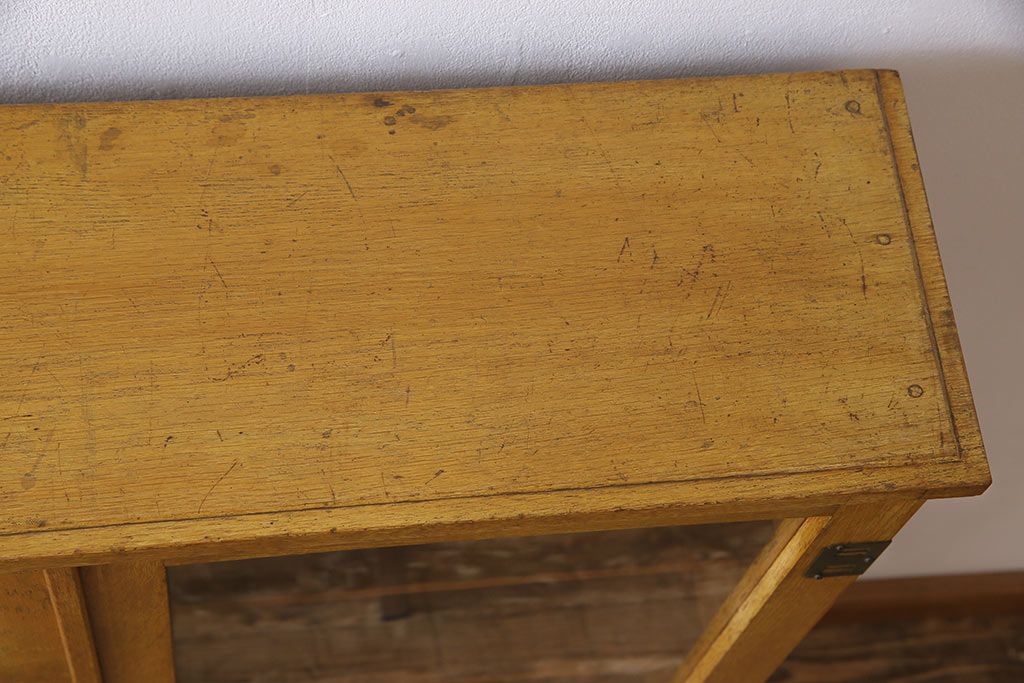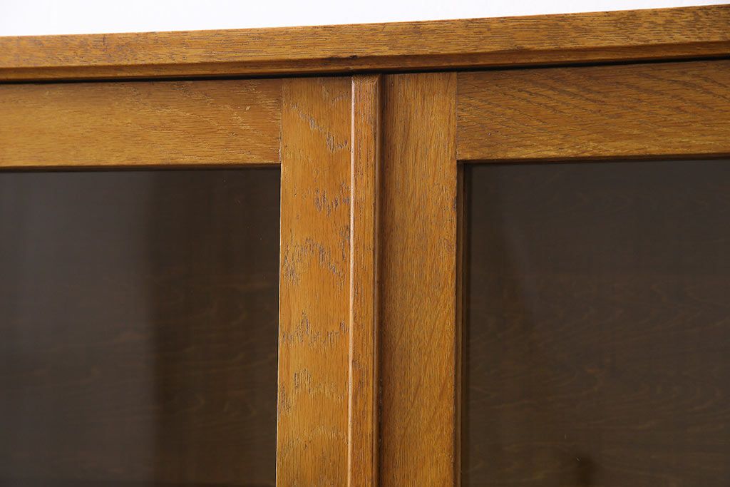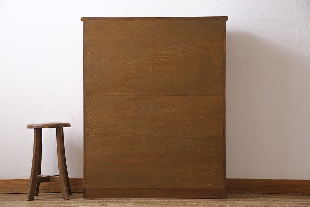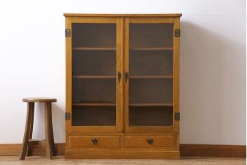 レトロ家具 和製アンティーク 三方ナラ材 薄型 凝った作りが魅力のレトロなブックケース(収納棚、飾り棚)
