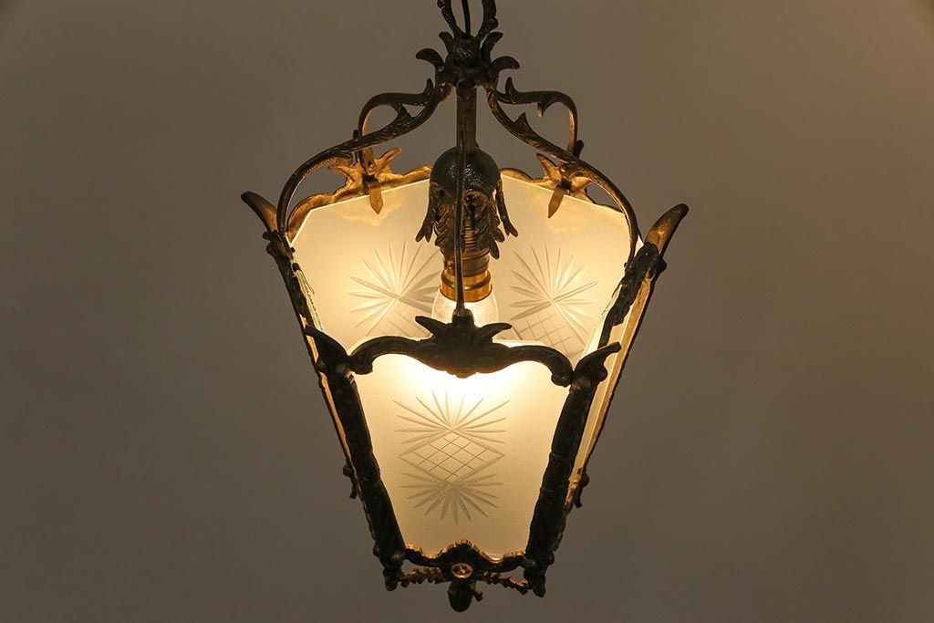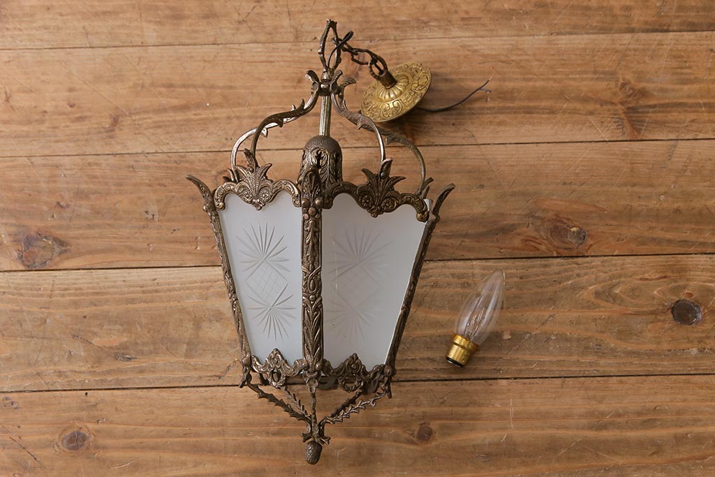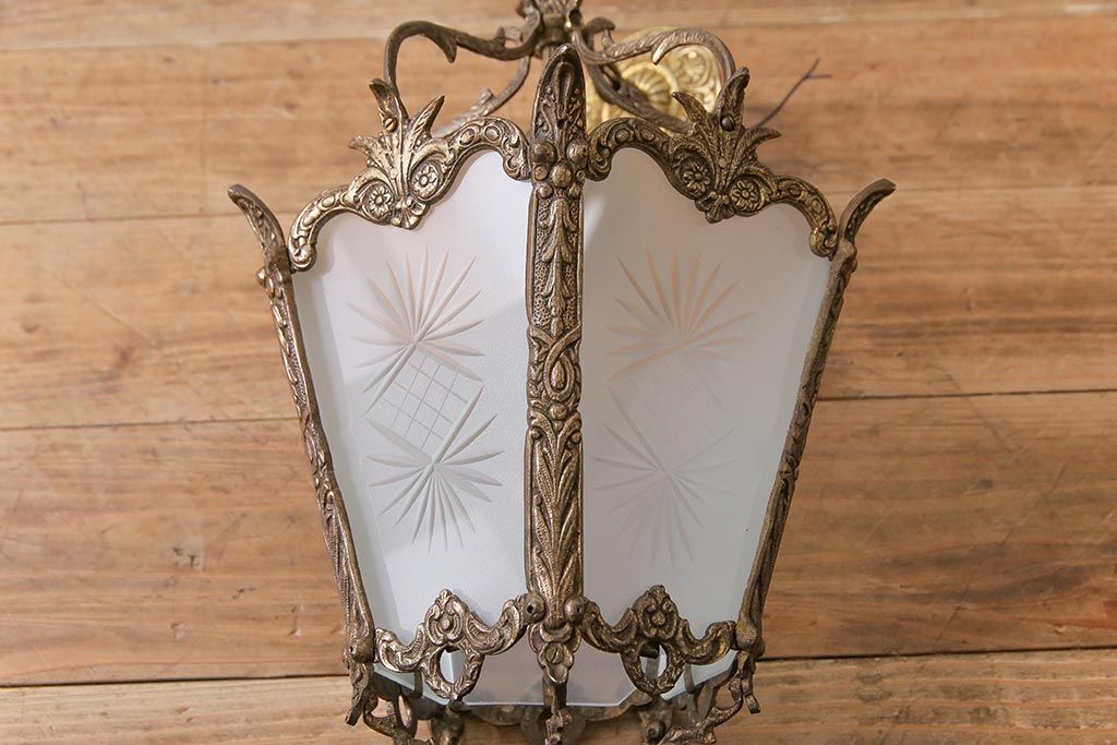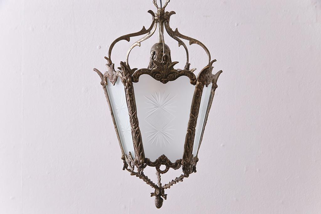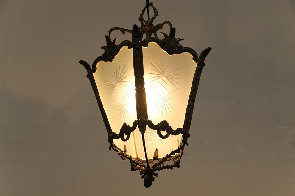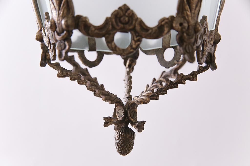 ラフジュ工房> 照明・ランプ> ペンダントライト > フランスアンティーク ランタン型 凝った意匠が目を引くゴシック風ペンダントランプ(ライト、天井照明)
