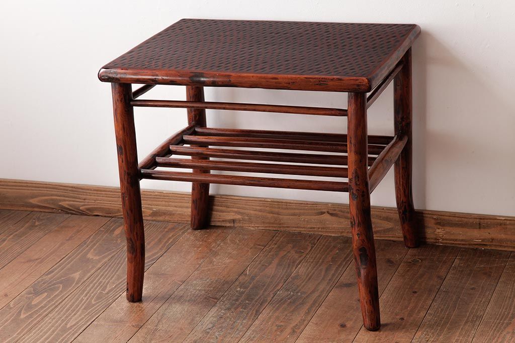 ラフジュ工房> テーブル> サイドテーブル > アンティーク雑貨 民芸家具 天板の模様が独特の雰囲気を漂わせるサイドテーブル(カフェテーブル、飾り台)
