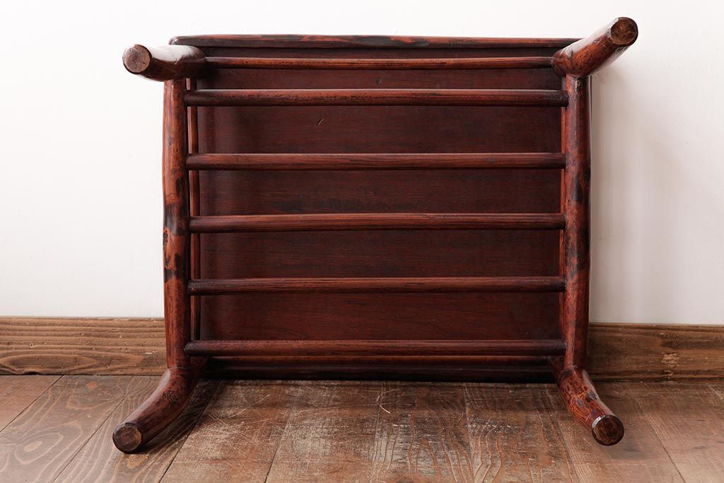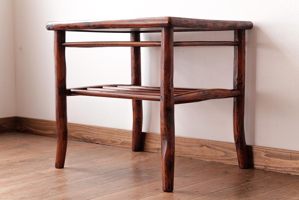 ラフジュ工房> 民芸家具 > アンティーク雑貨 民芸家具 天板の模様が独特の雰囲気を漂わせるサイドテーブル(カフェテーブル、飾り台)