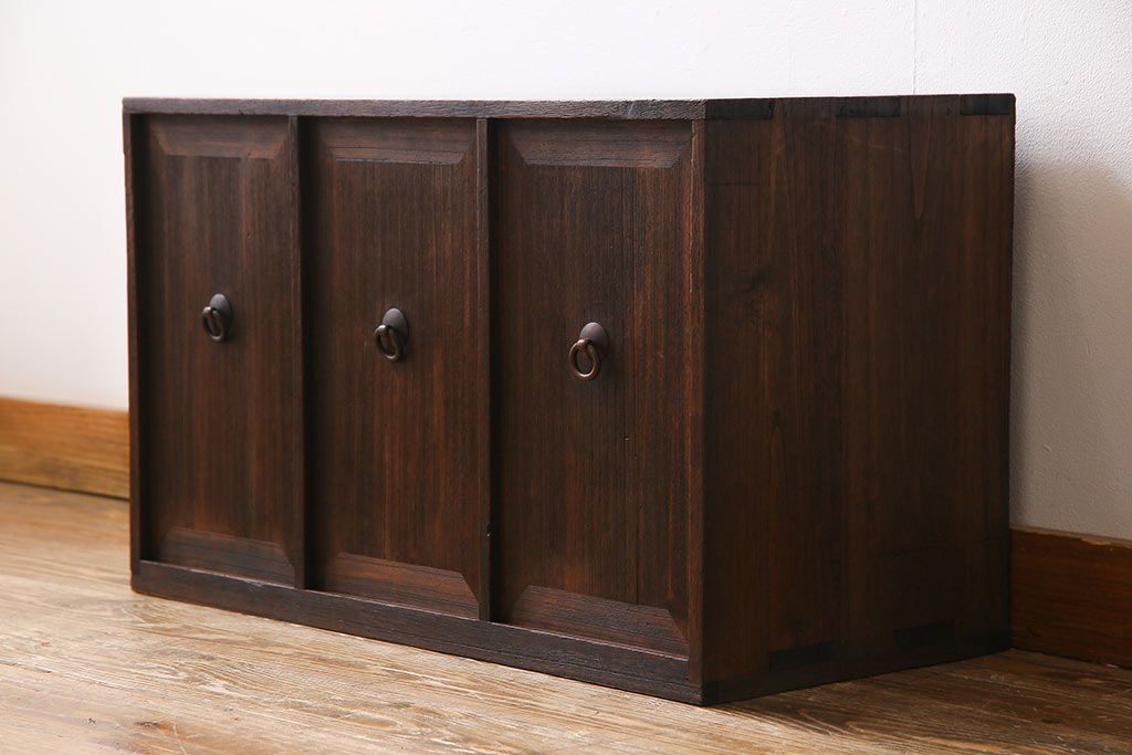 アンティーク家具 古民具・骨董 大正期 総桐材 倹飩(けんどん)式扉 味わい深いアンティークの収納棚(書棚)