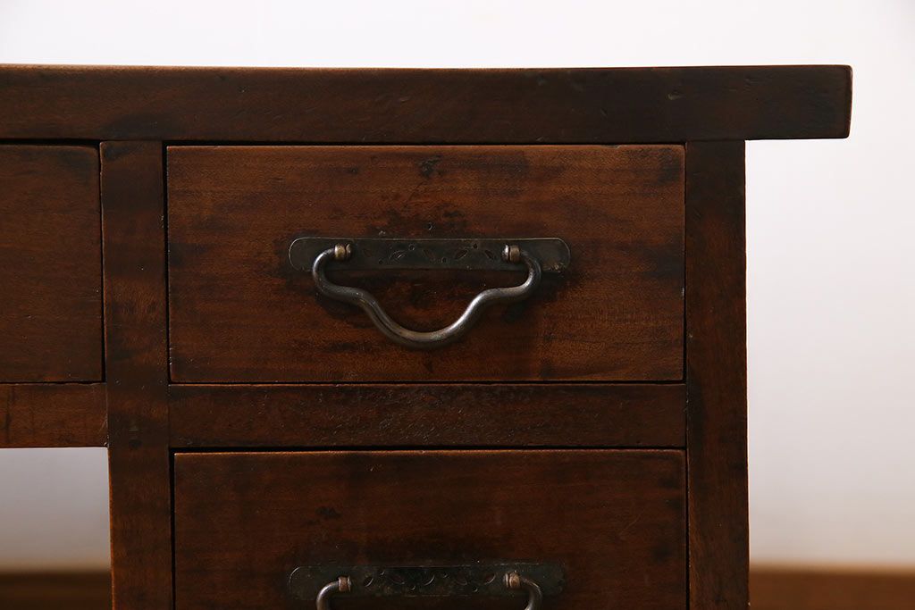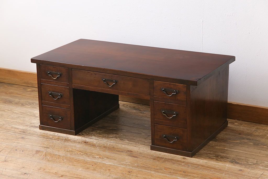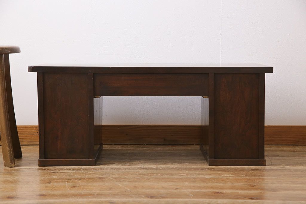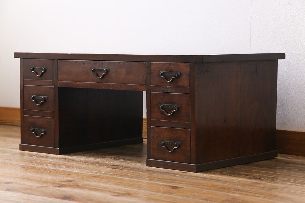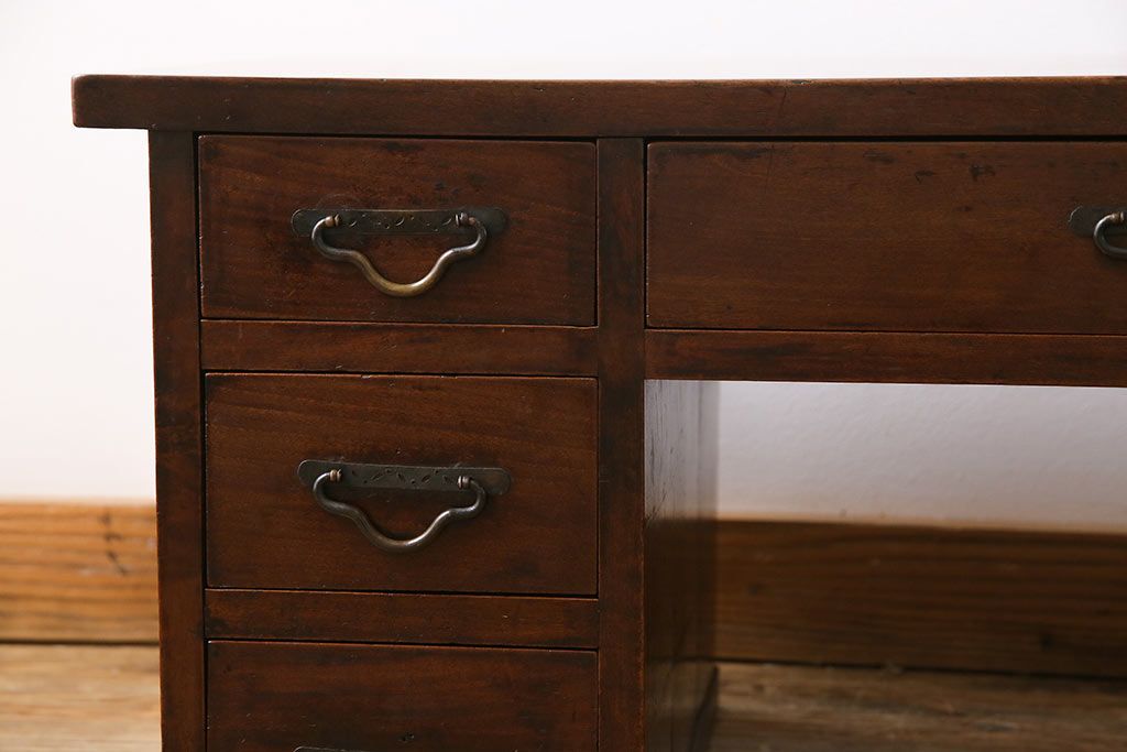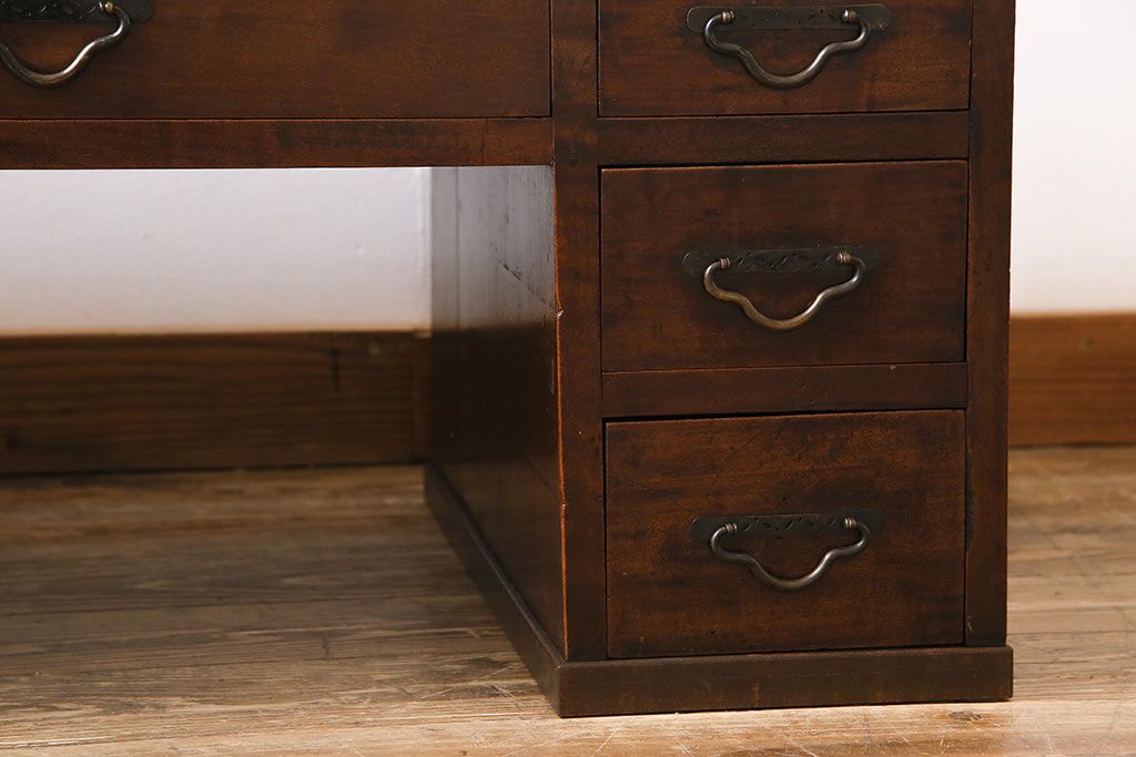 アンティーク家具 和製アンティーク カバ材 柔らかな木肌が上品な両袖文机(作業台、両袖机)