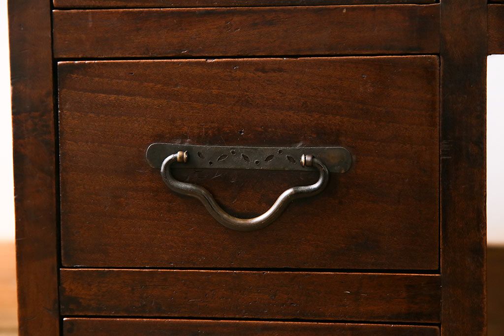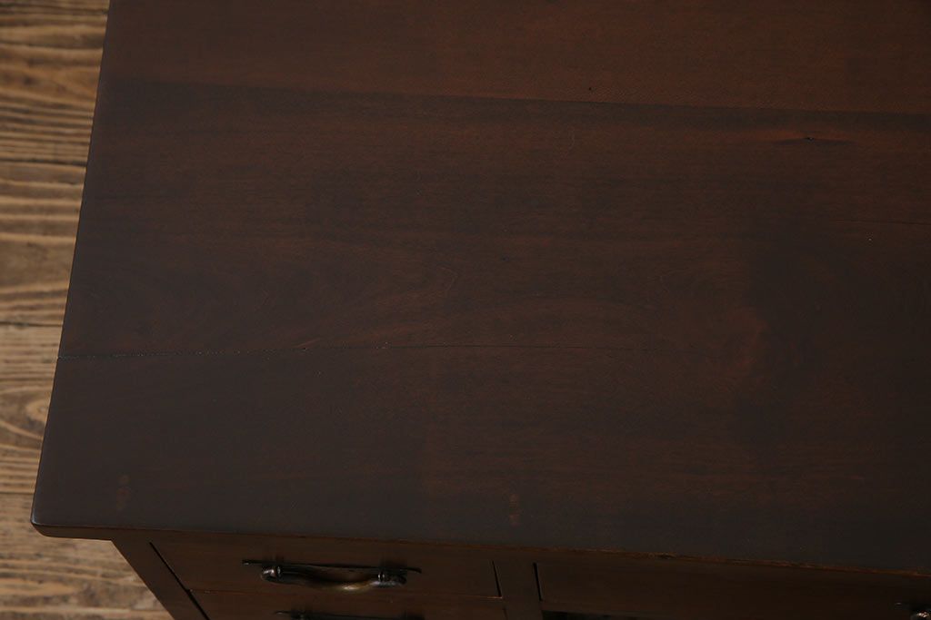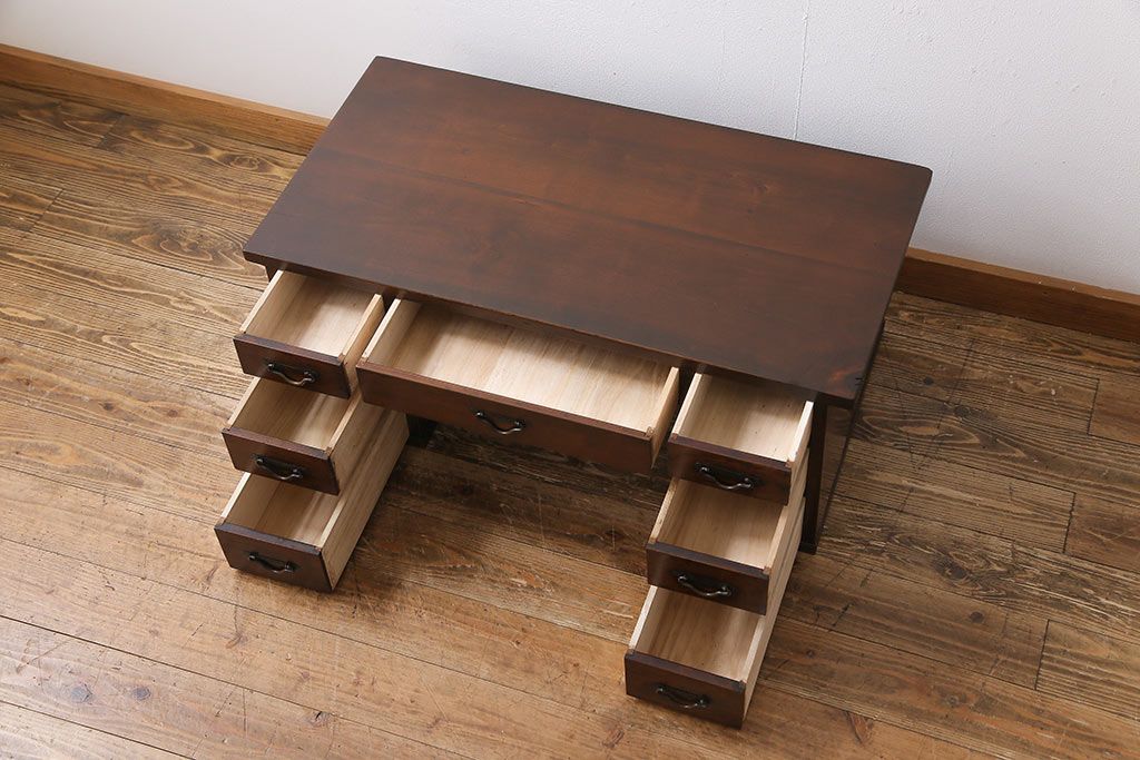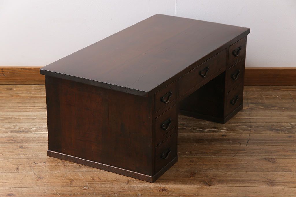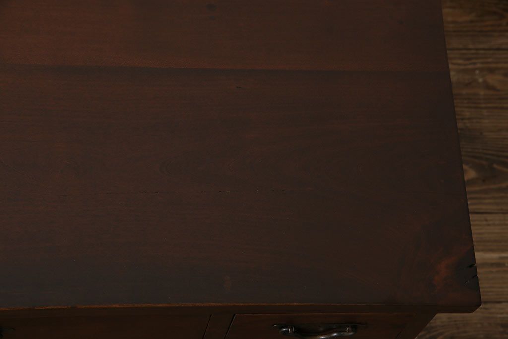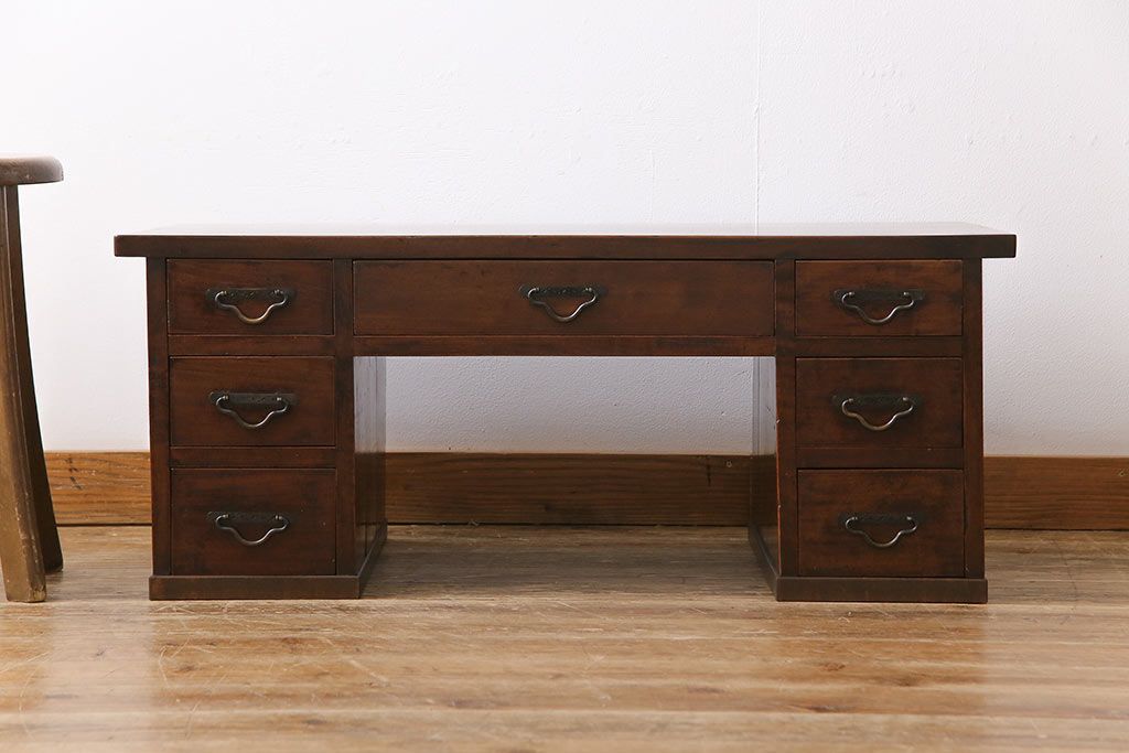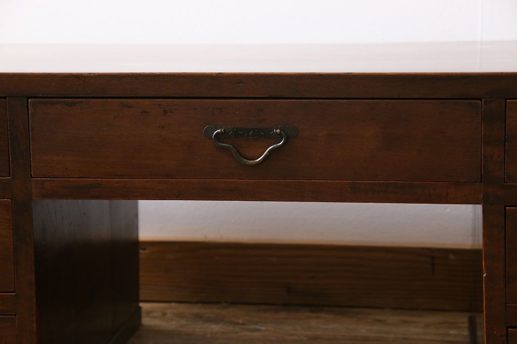 アンティーク家具 和製アンティーク カバ材 柔らかな木肌が上品な両袖文机(作業台、両袖机)