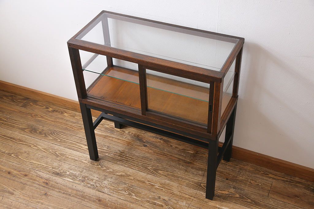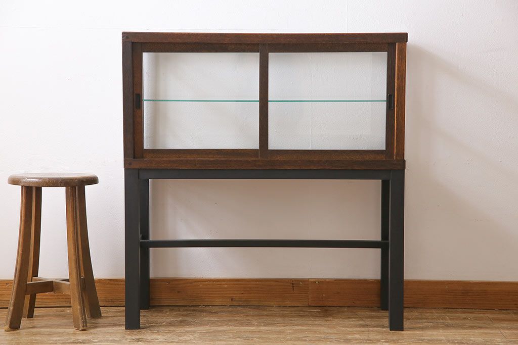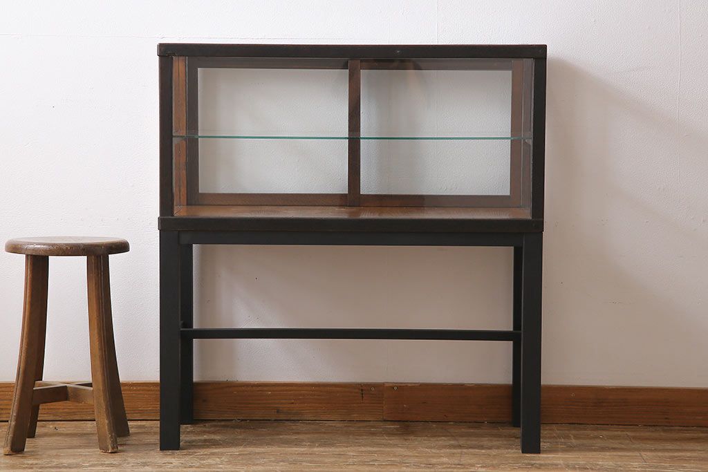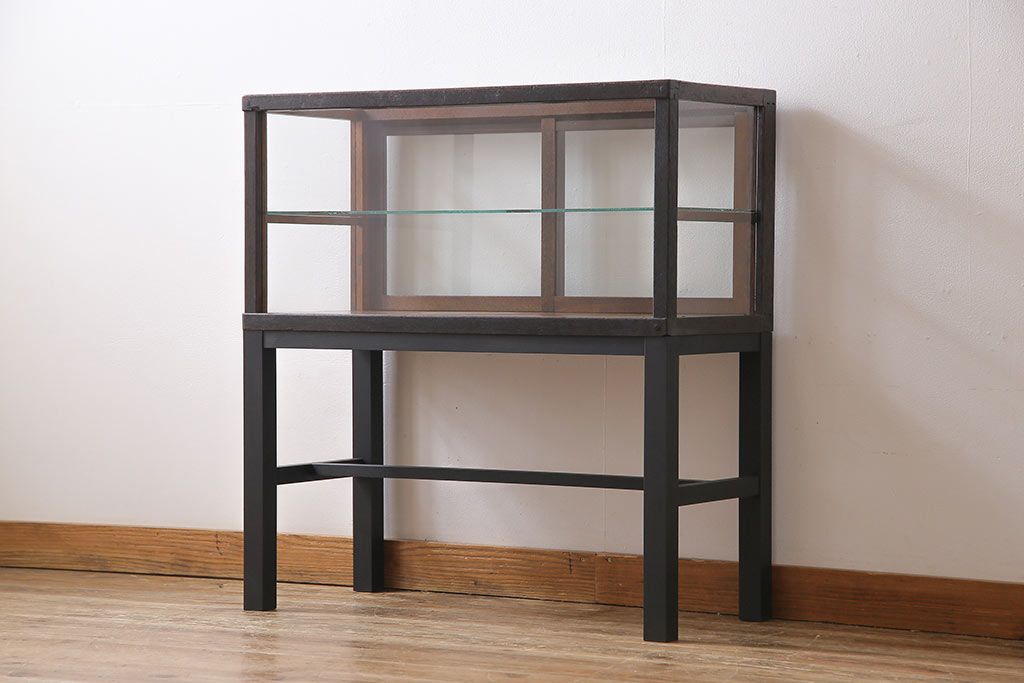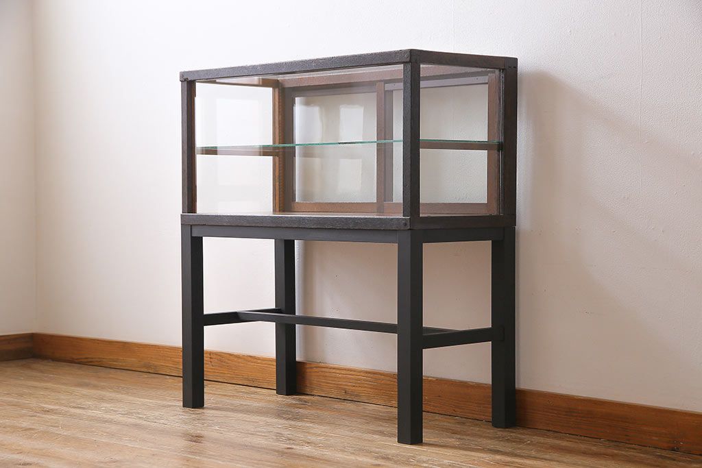 ラフジュ工房> 店舗什器 > レトロ家具 昭和レトロ リメイク すっきりとした佇まいの脚付ガラスケース(ショーケース、陳列棚)(2)