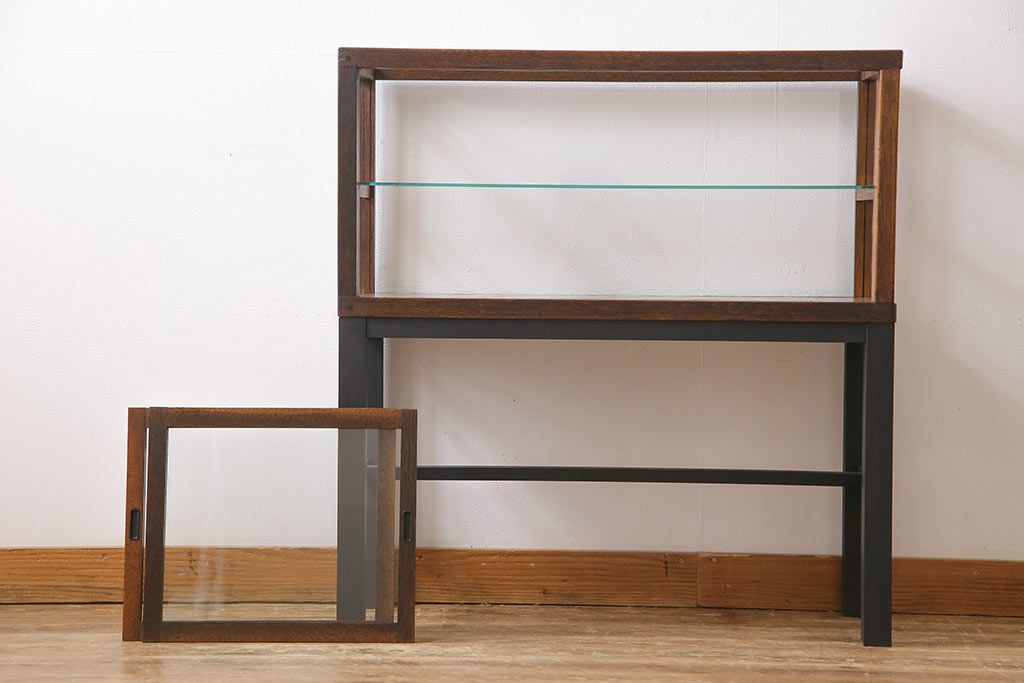 レトロ家具 昭和レトロ リメイク すっきりとした佇まいの脚付ガラスケース(ショーケース、陳列棚)(2)